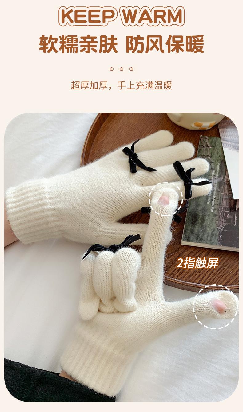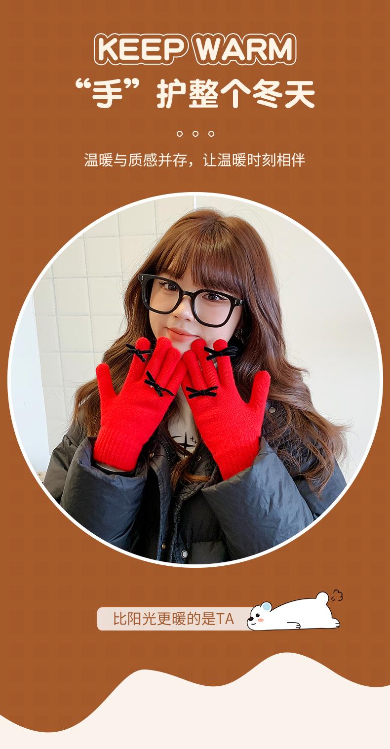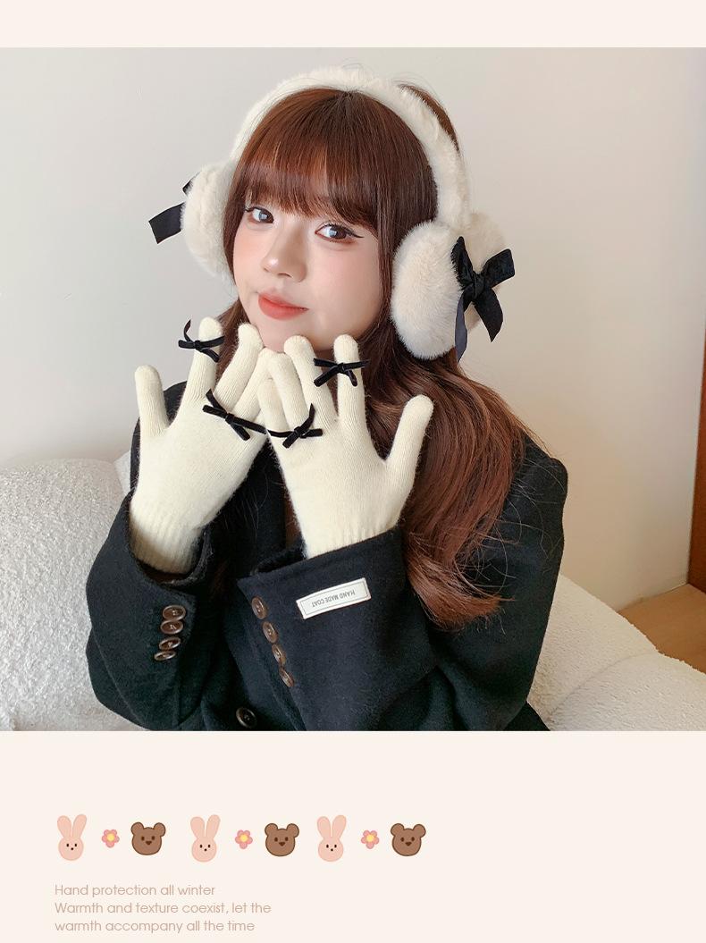 Guantes con Lazo para Mujer en Otoño e Invierno, Dulces y Lindos, Cálidos y a Prueba de Frío, Sin Dedos, Pantalla Táctil, Guantes de Lana Tejidos de Dedos Completos
