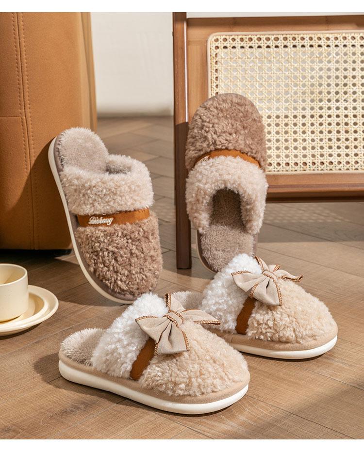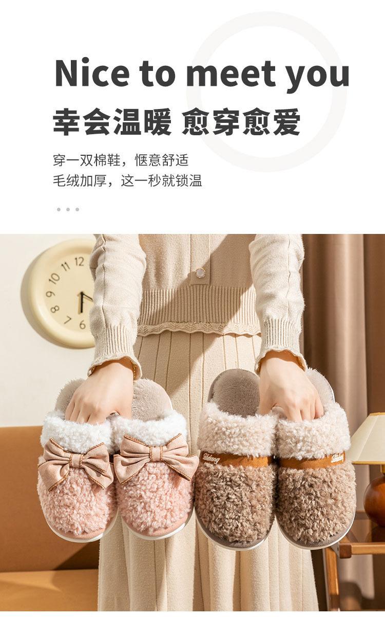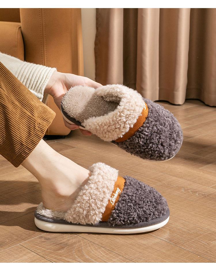 Pantuflas de Algodón de Otoño e Invierno para Mujer, Lindas para Parejas para Uso en Casa, Pantuflas Peludas de Tela Cálida de Suela Gruesa Suave para Hombre al Por Mayor