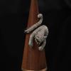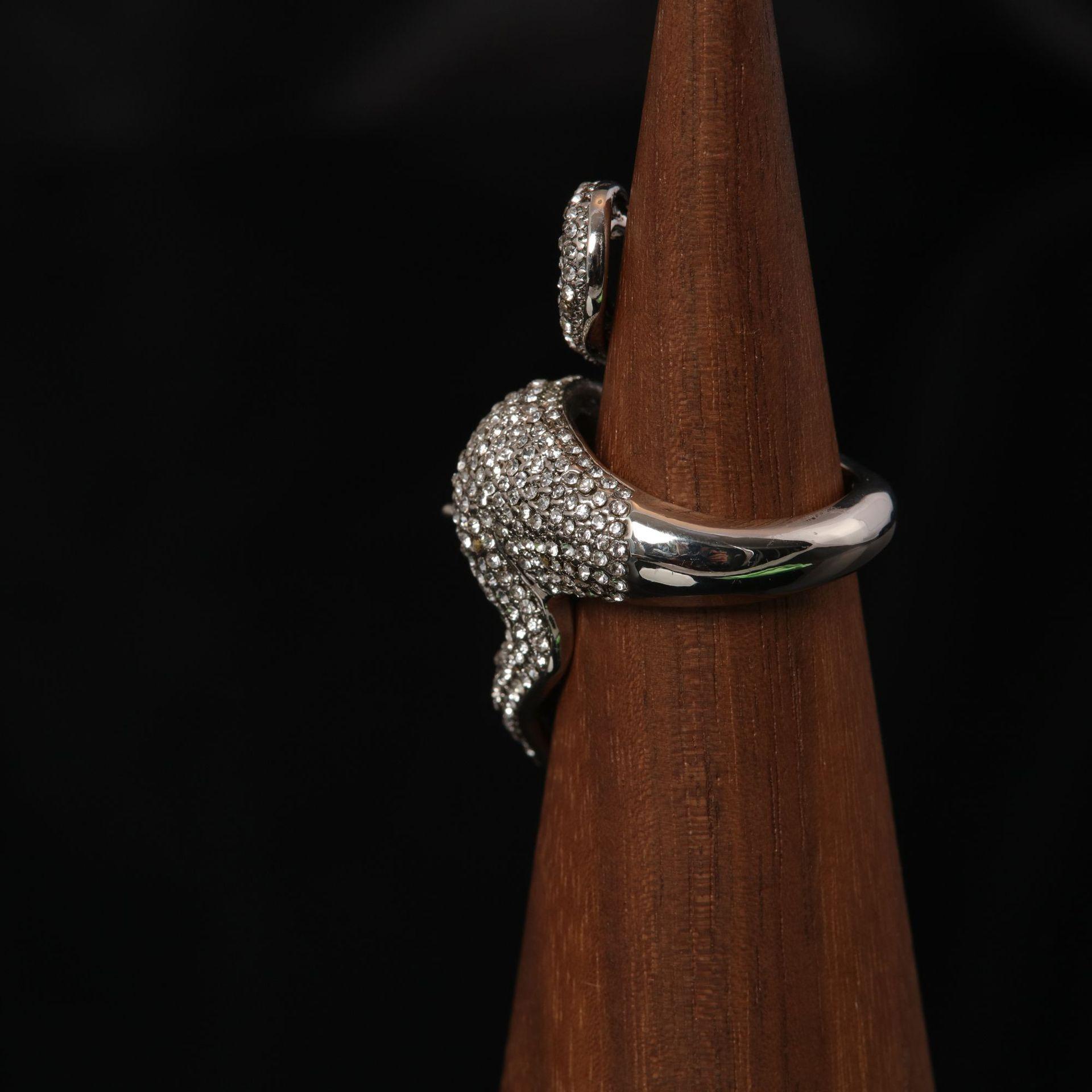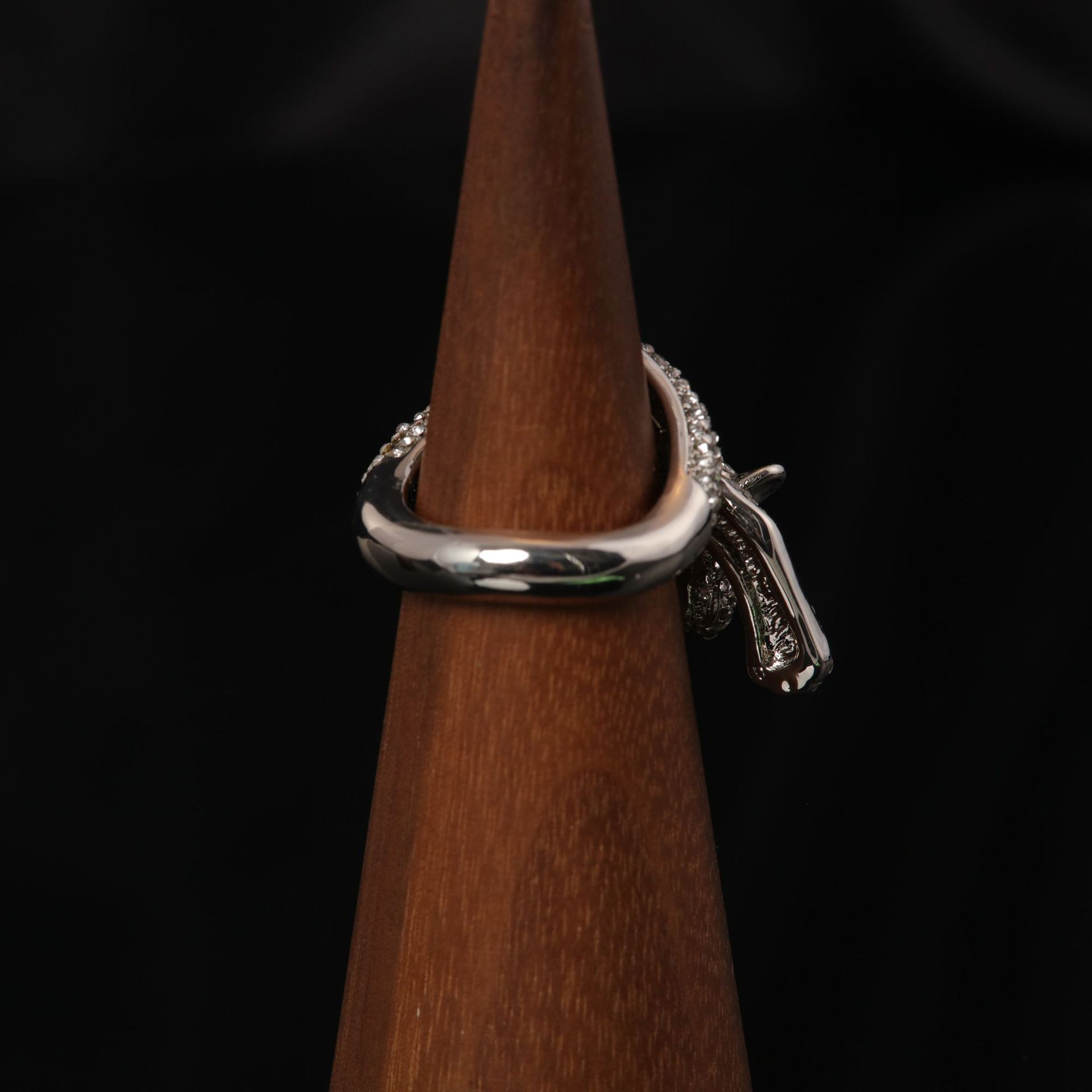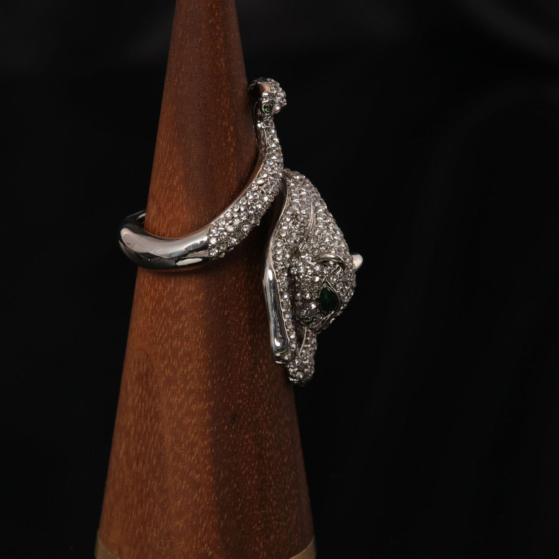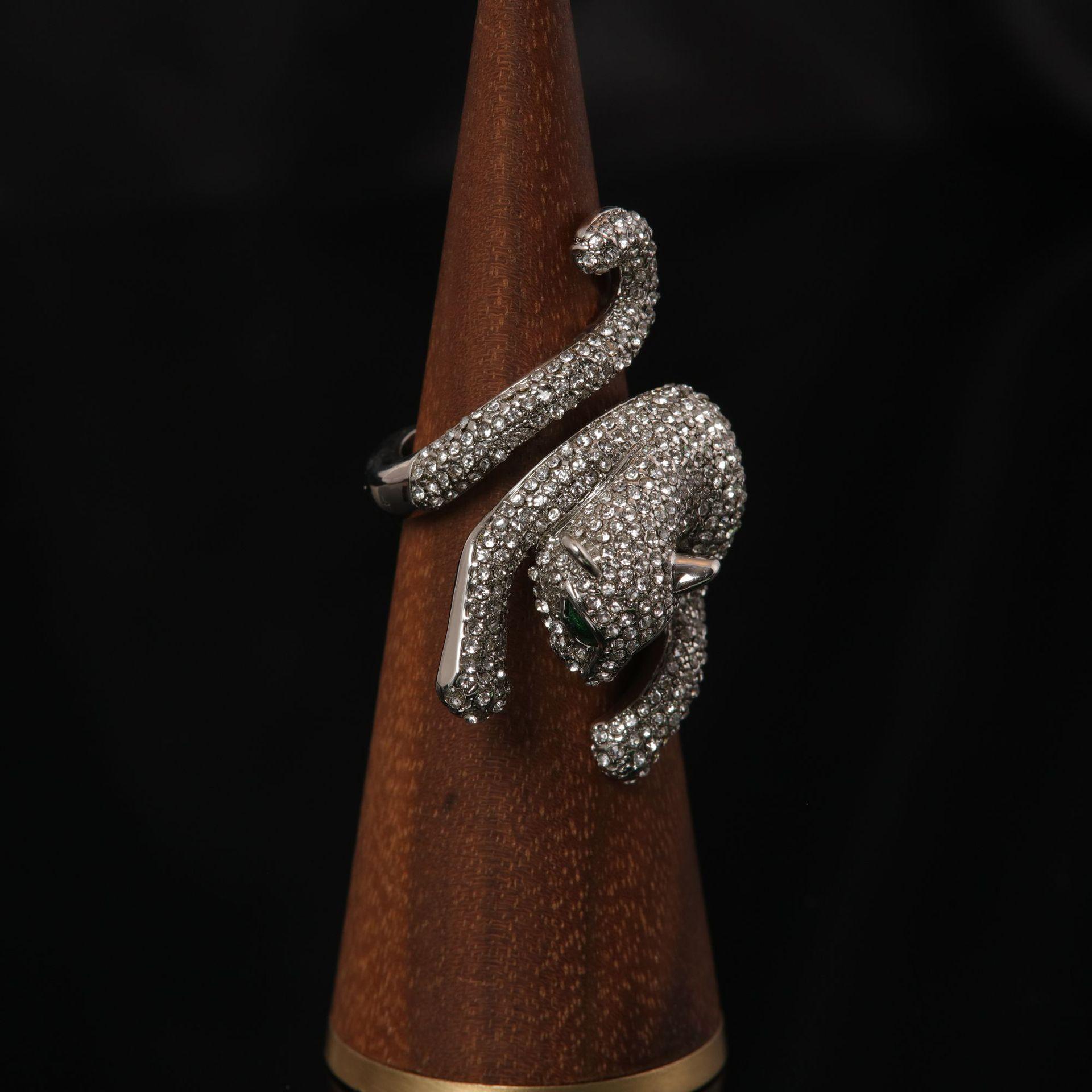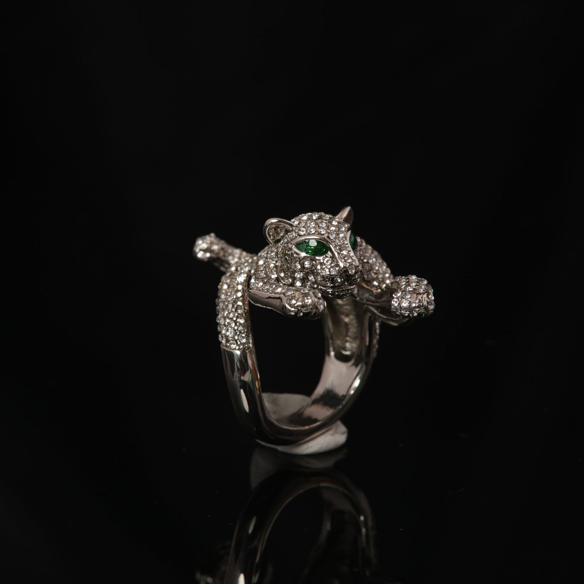 Anillo de guepardo de primera calidad europeo y americano con borde de ojo de esmeralda de oro blanco antiguo occidental medio antiguo