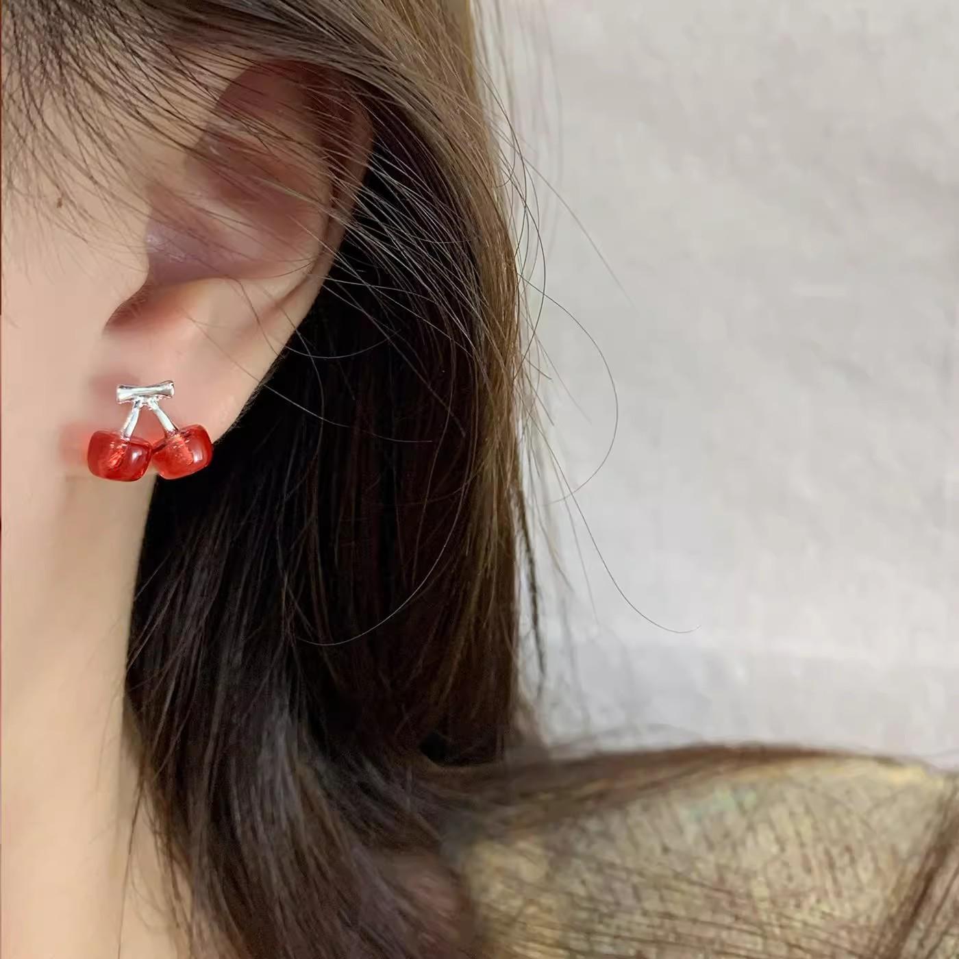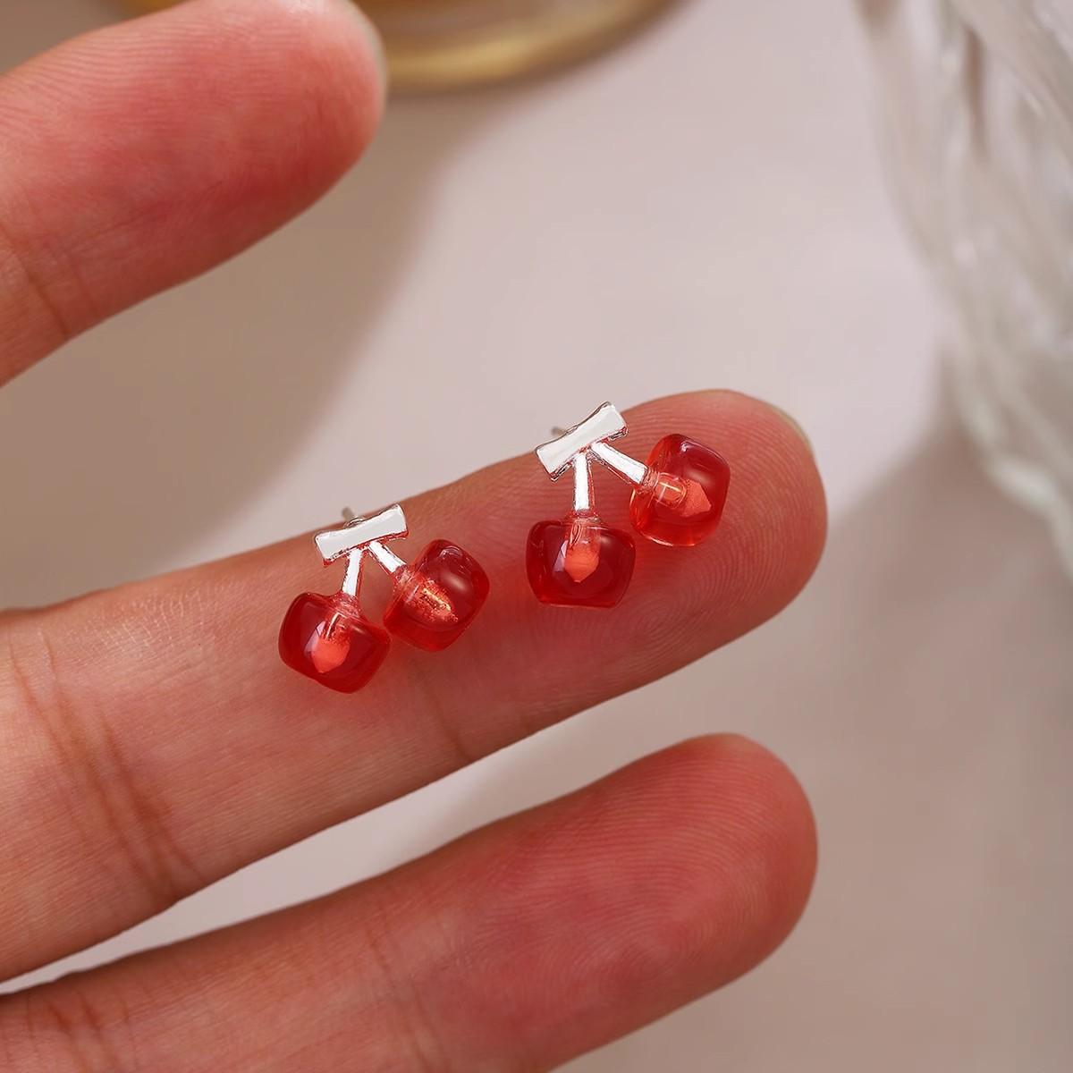 Compra Pendientes de resina con forma de cereza en forma de aguja plateada para tobillo, color rojo, ligeros y elegantes, para mujer. al por mayor en Joom.pro
