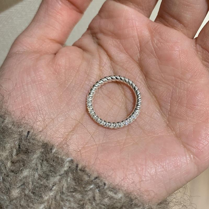 Anillo de Diamantes Twist Plata de Lujo Ligero Sensación de Alta Gama Anillo Super Flash Apilable Diseño Simple Elegante Moda Anillo de Dedo