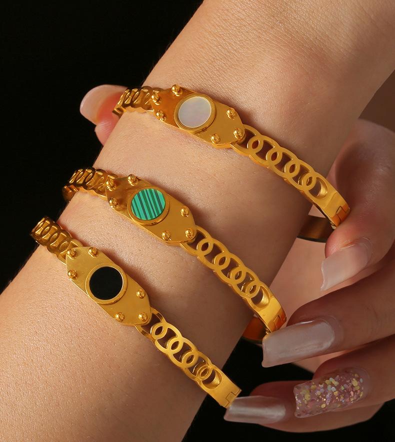 Z315-Golden Fritillaria Bracelet, Z315-Gold Black Acrylic Bracelet, Z315-Golden Malachite Bracelet