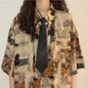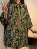 Corbata de rayas café estilo retro color de contraste verde mano vintage vintage casual combinable camisa marrón moda
