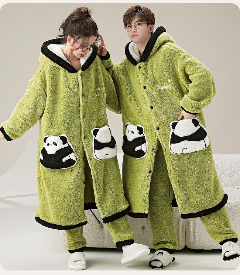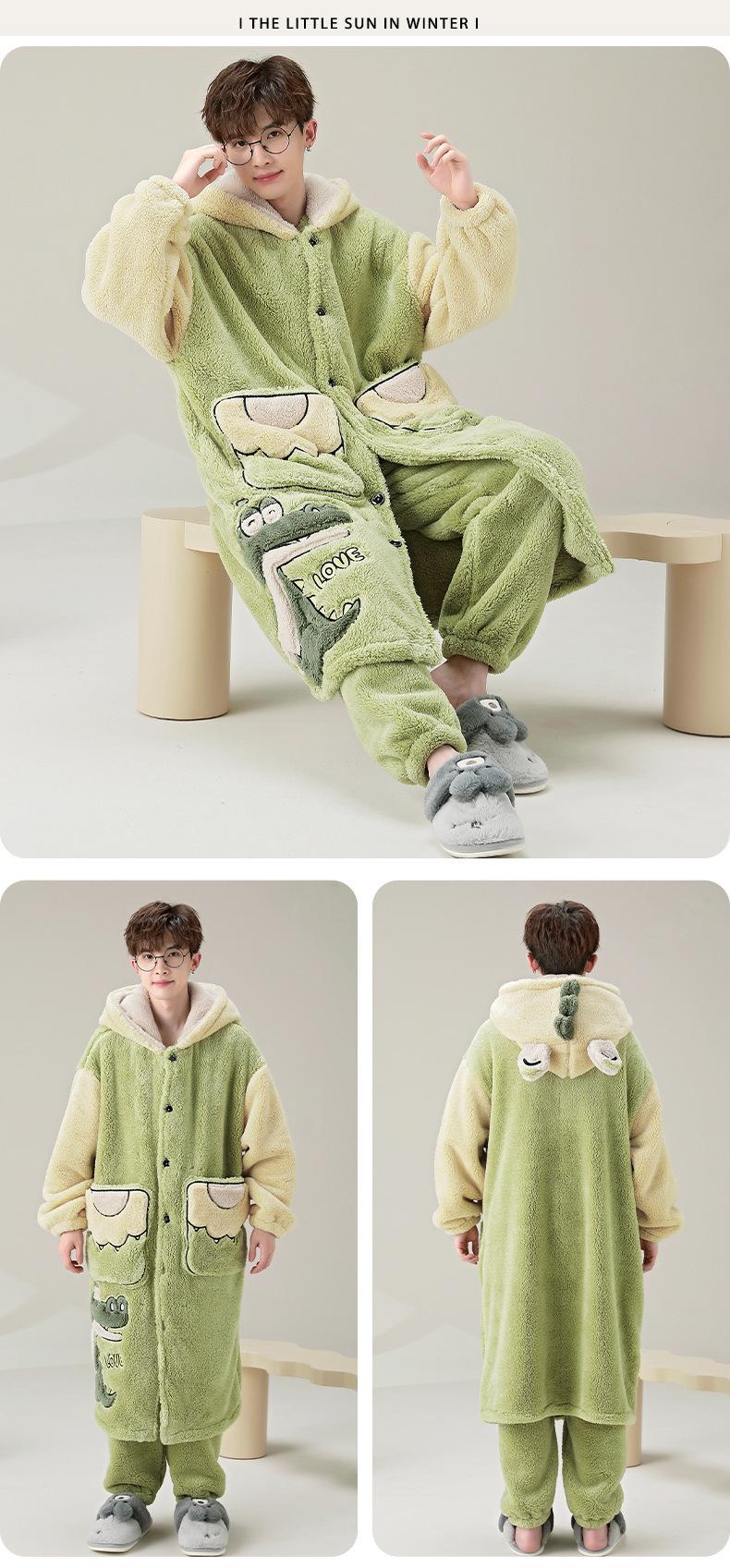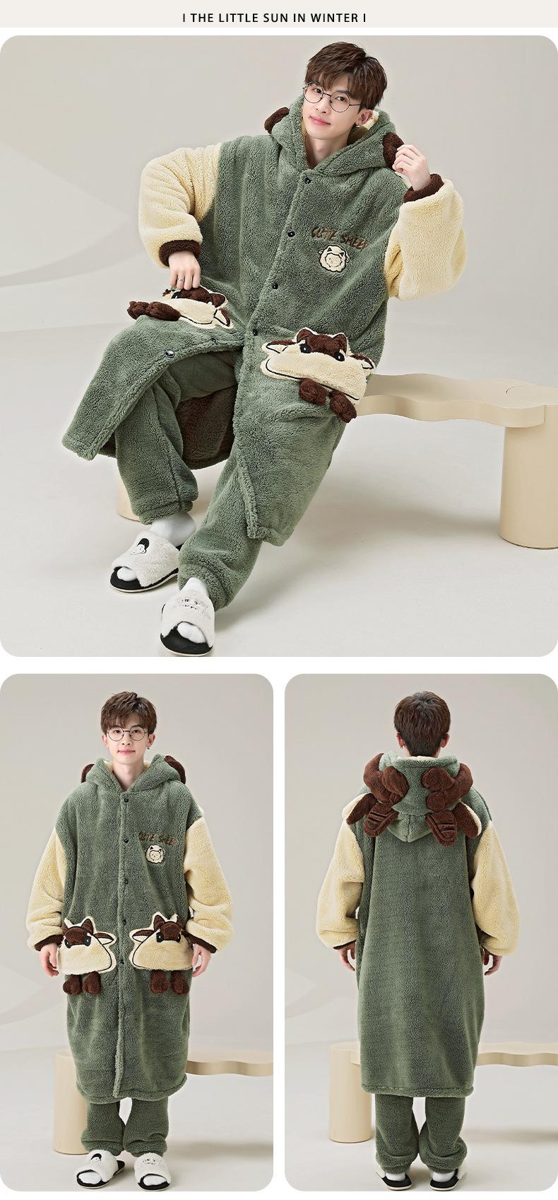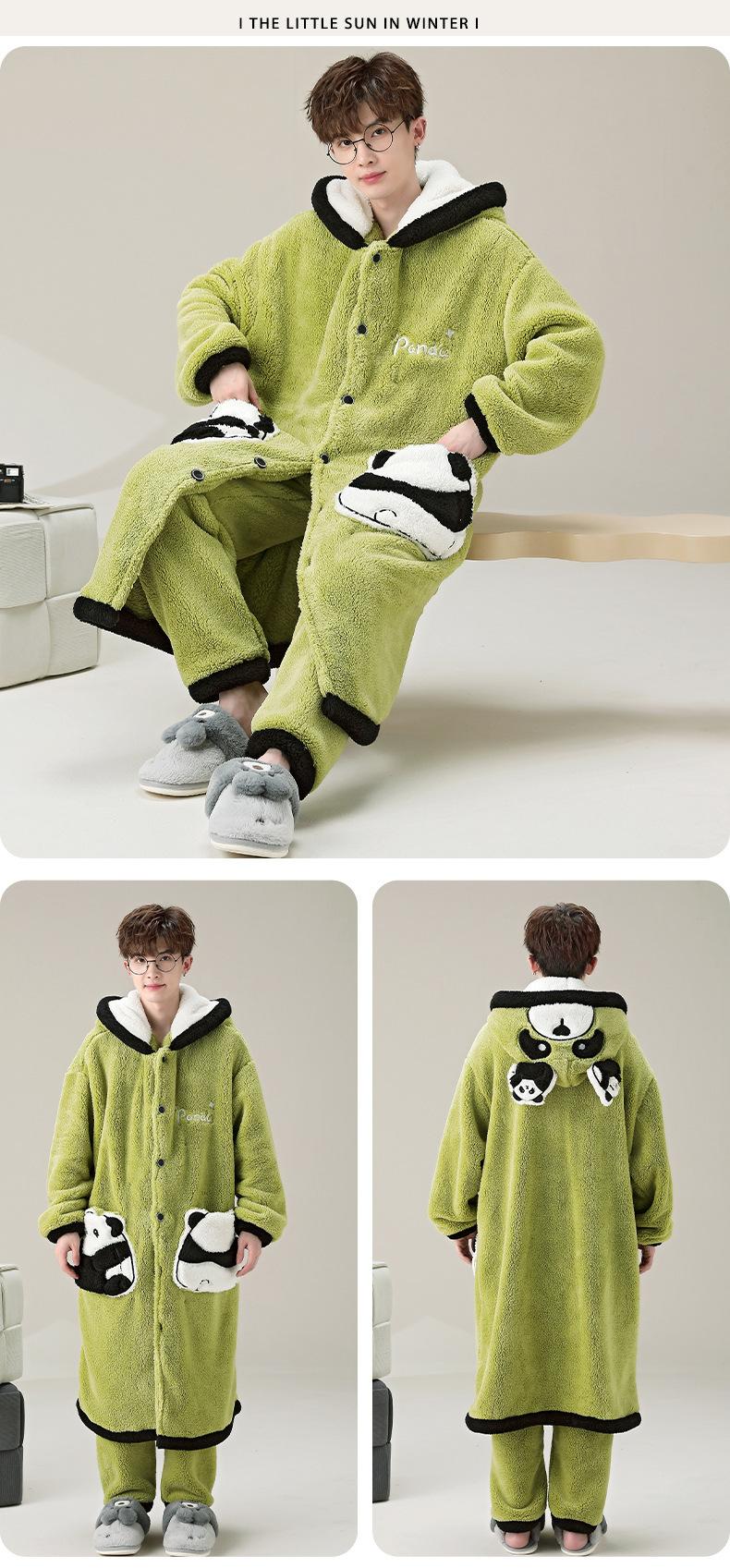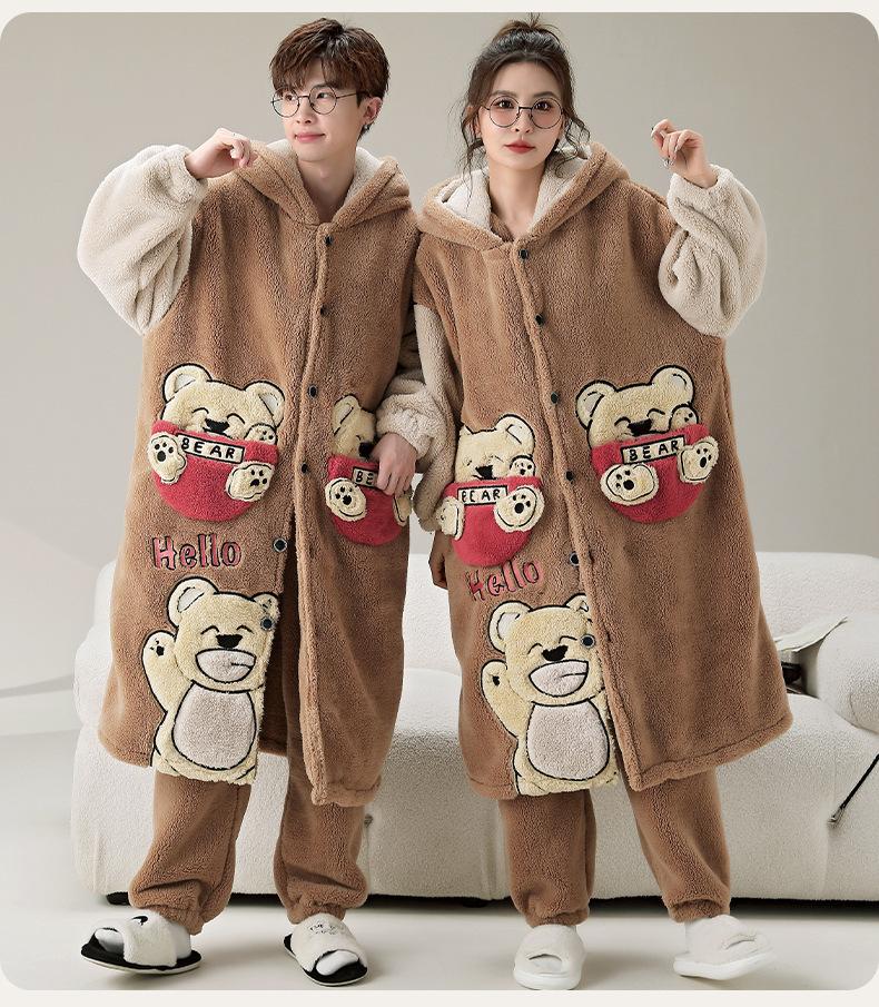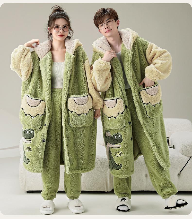 Pijamas de Pareja de Terciopelo Coral Talla Grande Camisón Largo Grueso con Forro Polar Conjunto de Otoño para Mujer Ropa de Casa de Dos Piezas Venta al por Mayor