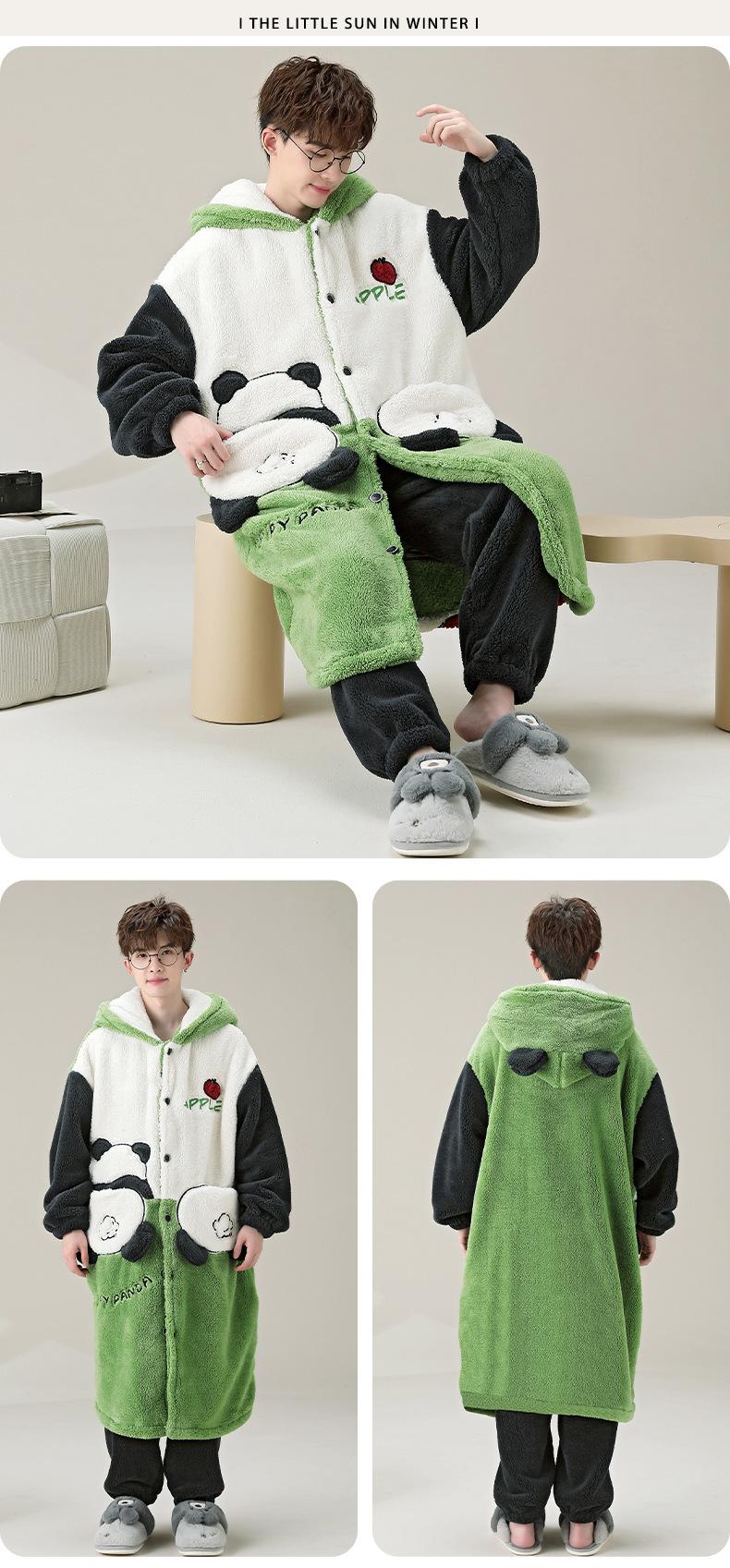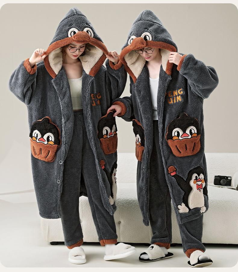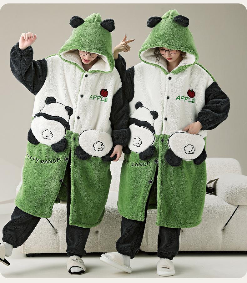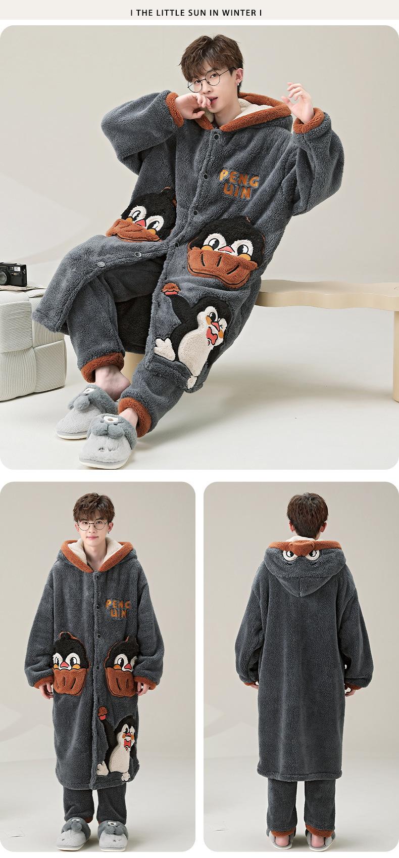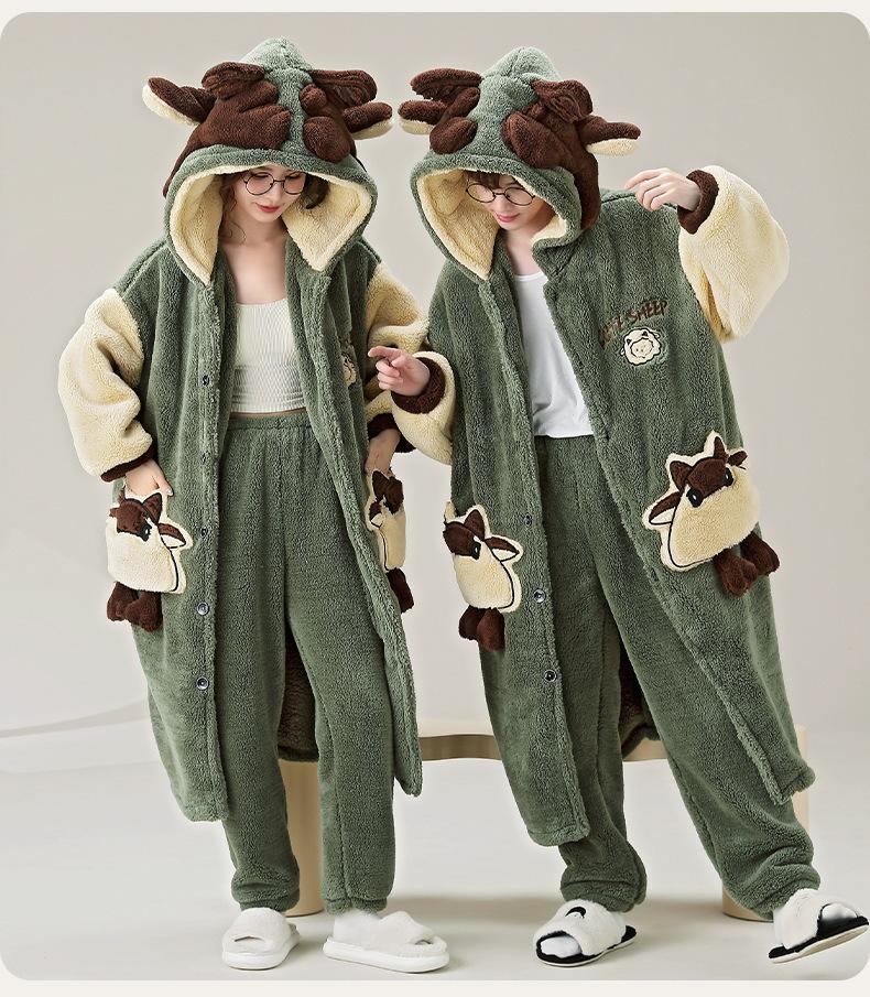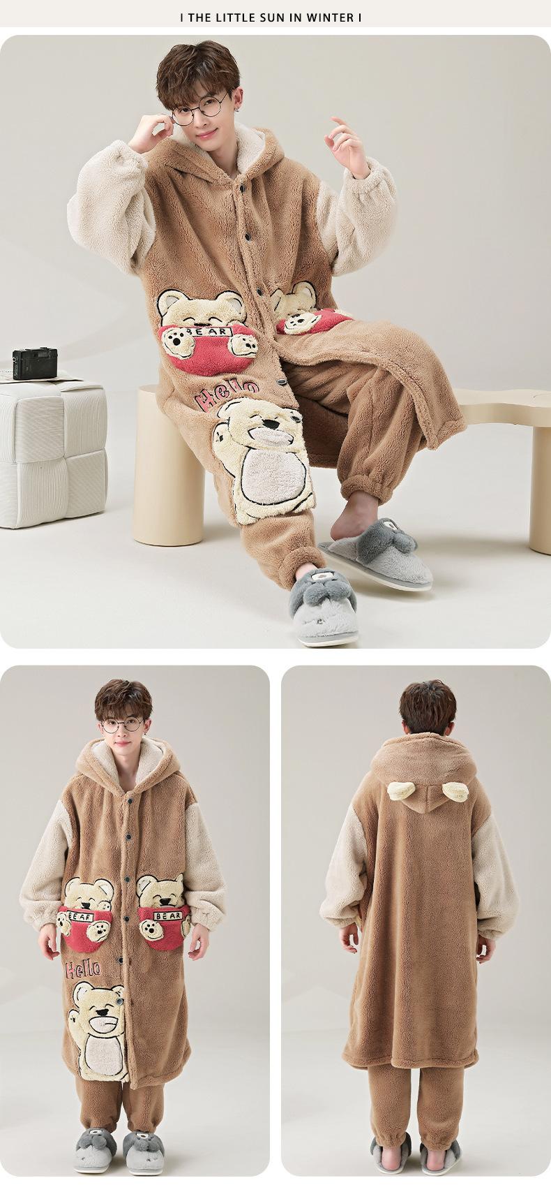 Pijamas de Pareja de Terciopelo Coral Talla Grande Camisón Largo Grueso con Forro Polar Conjunto de Otoño para Mujer Ropa de Casa de Dos Piezas Venta al por Mayor