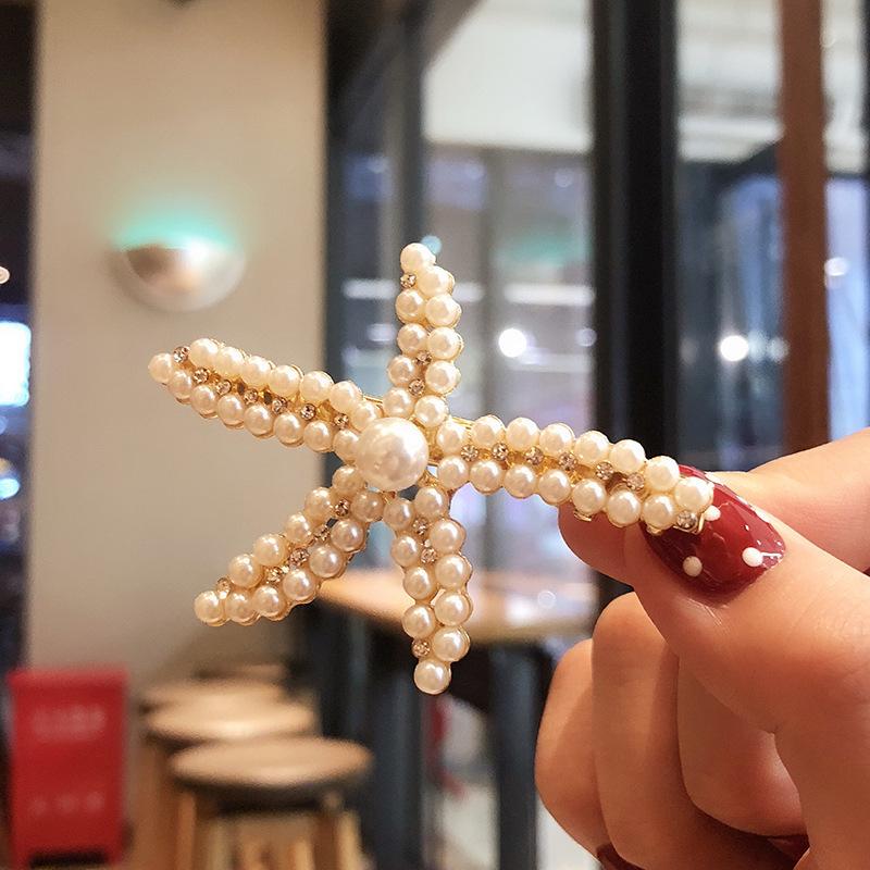 Pinza para el cabello de estrella de mar de perlas estilo coreano Joyería de diamantes completos Accesorios para el cabello populares en Internet para mujer Clip para flequillo Pinza para el cabello de hada Mori Tocado Clip