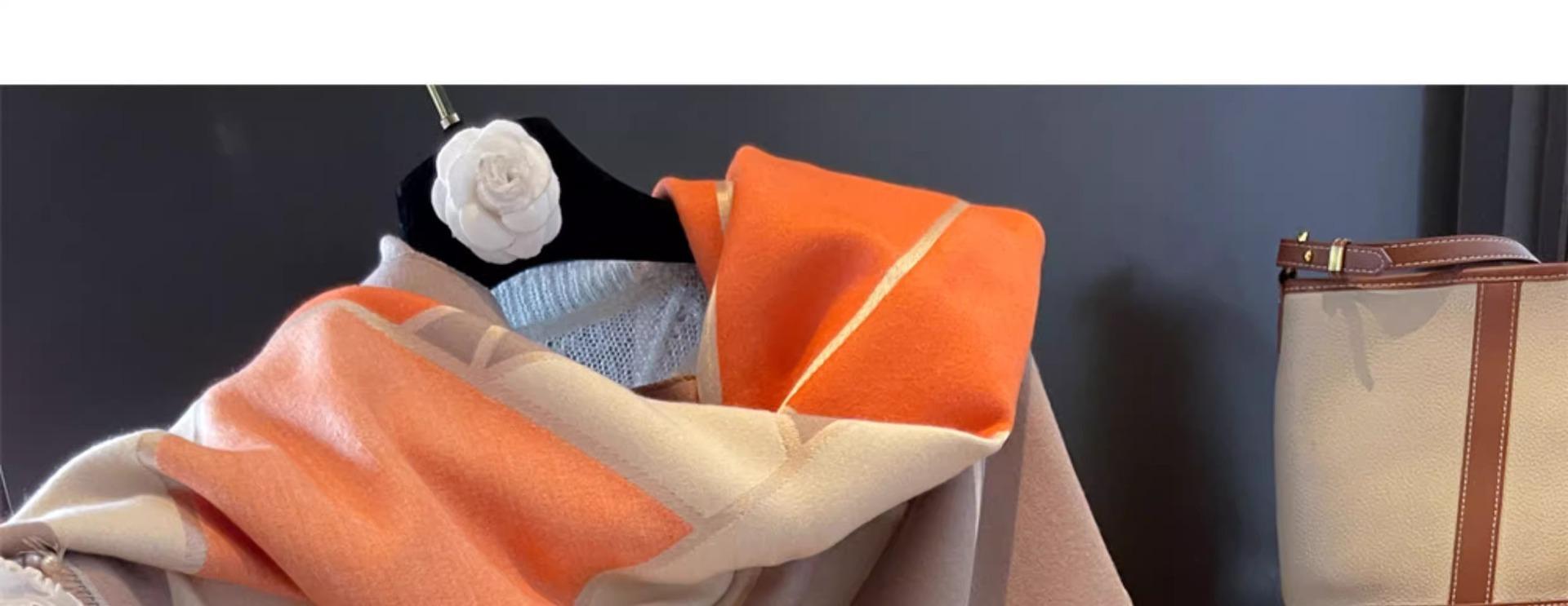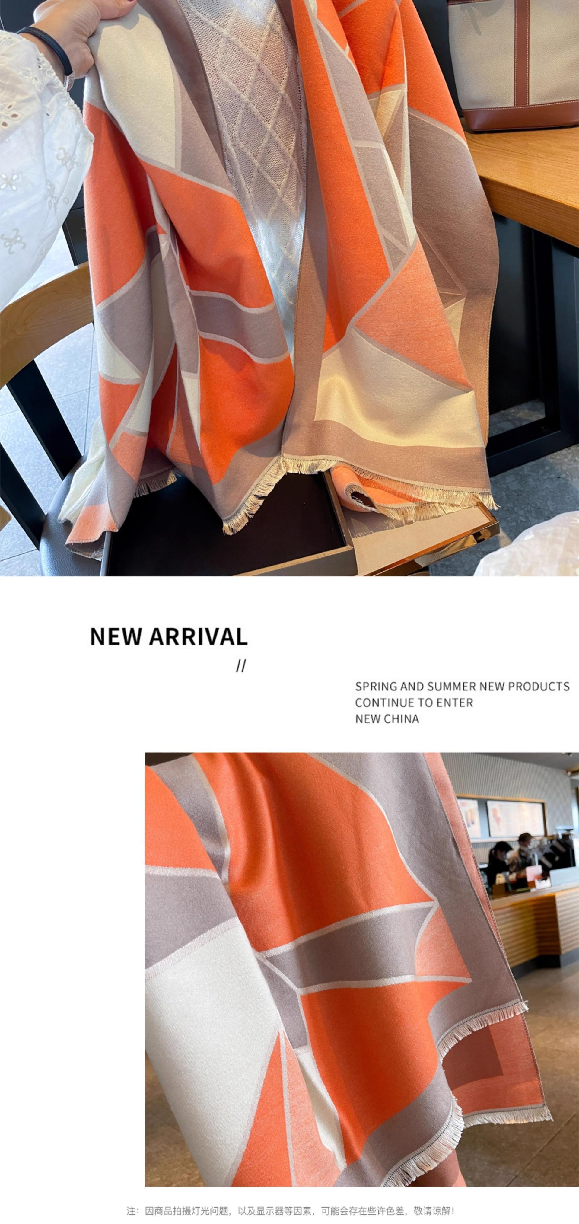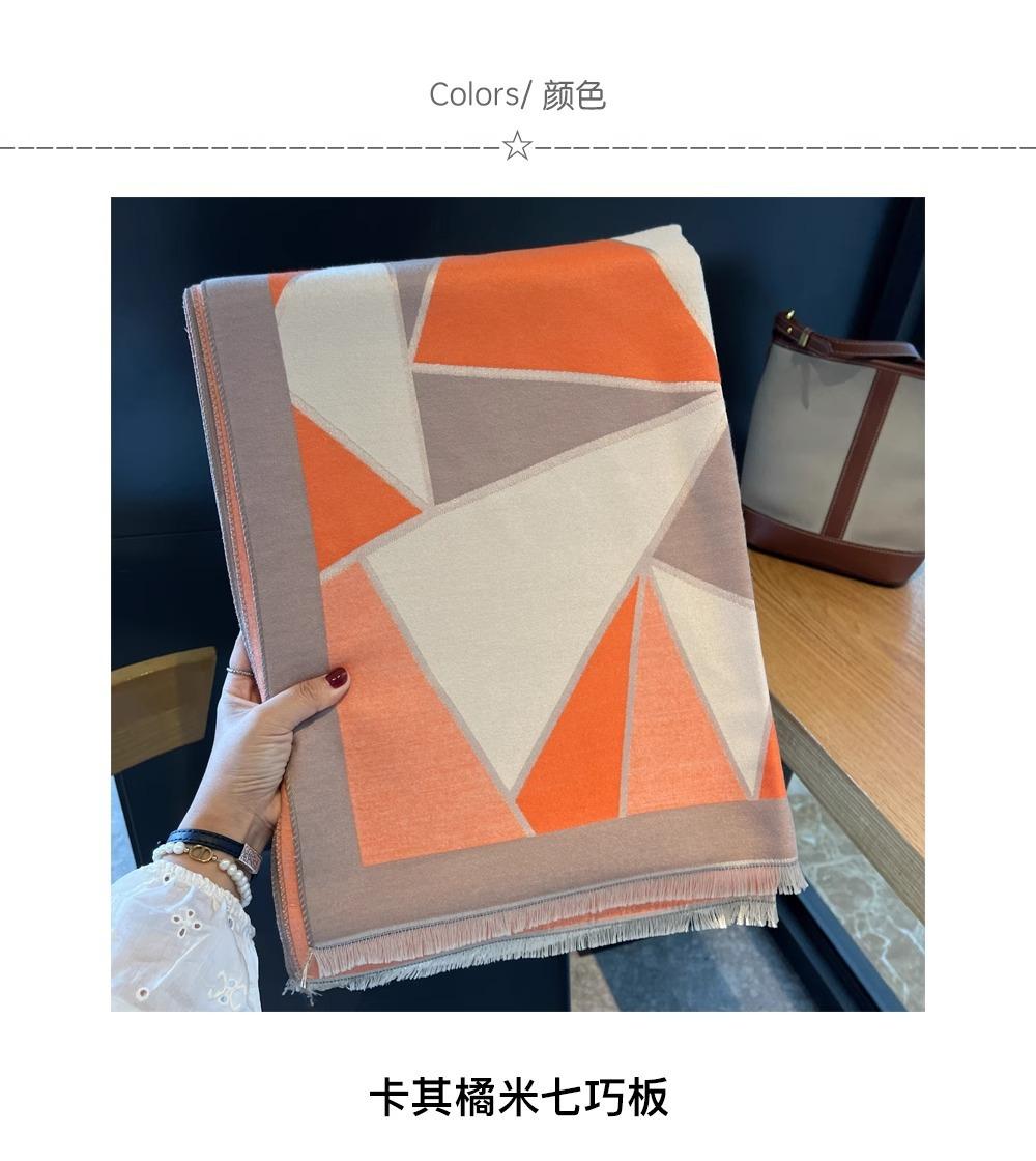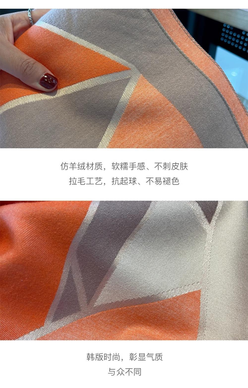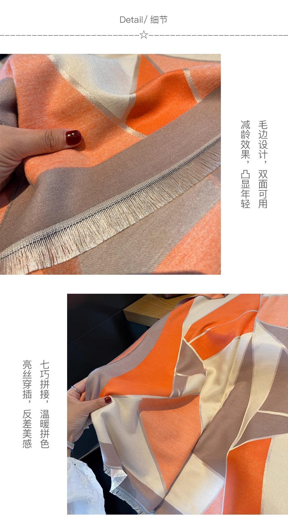 Bufanda de Cachemira de Doble Uso Naranja Arroz Estilo Coreano Combinable Bloque de Color Geométrico con Ribete de Piel para Invierno Cálida para el Cuello Chal Largo para Mujer