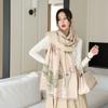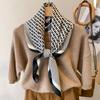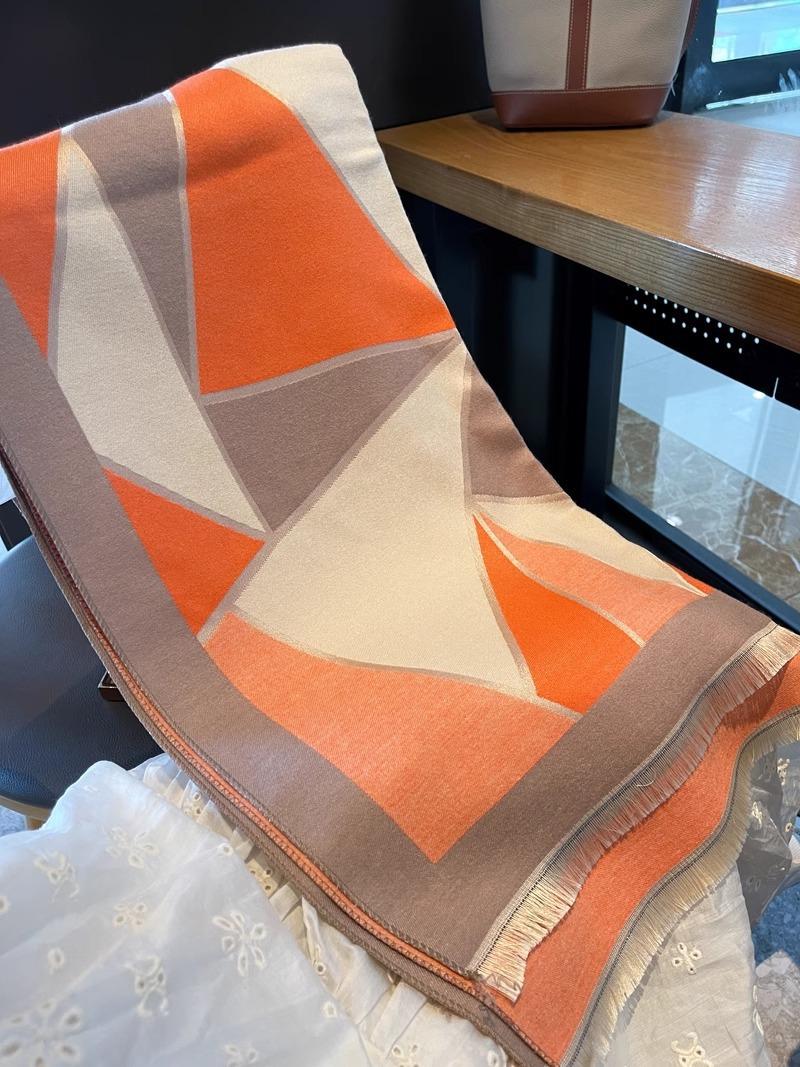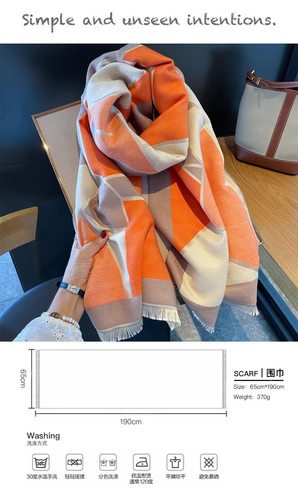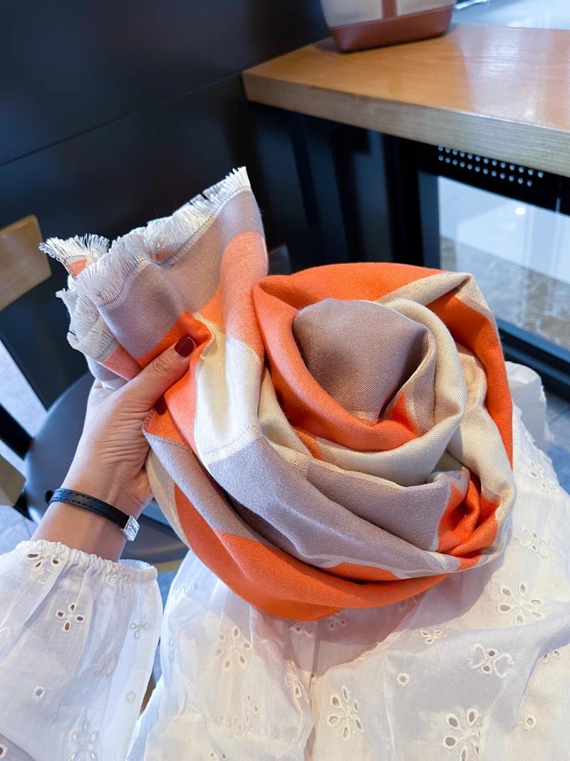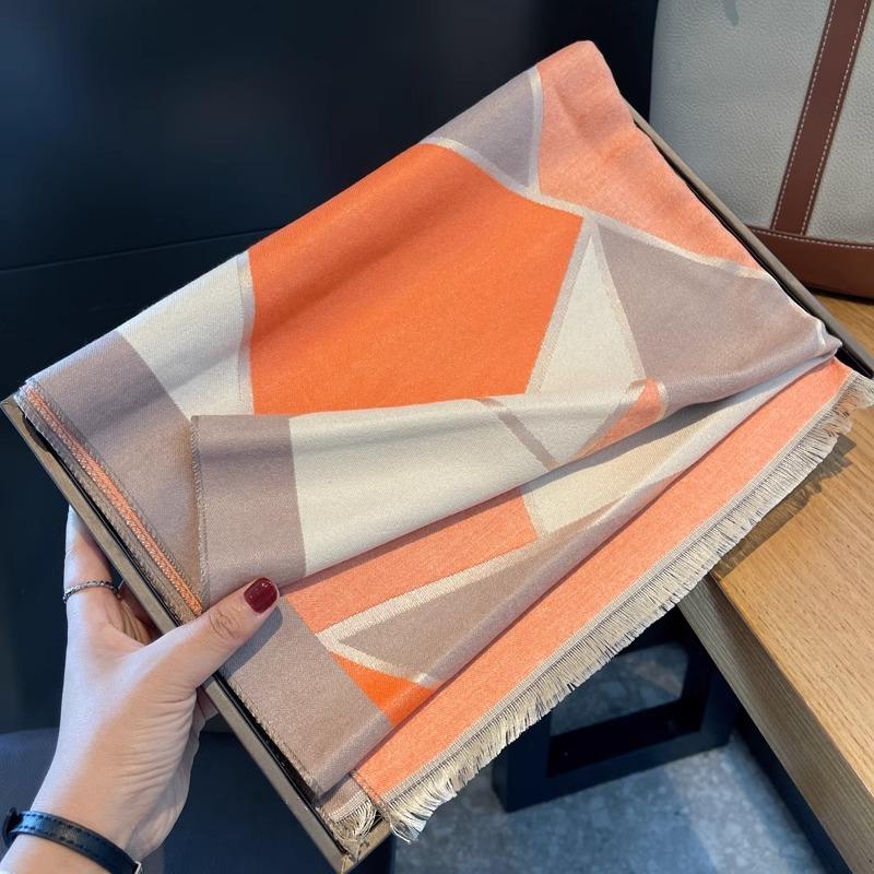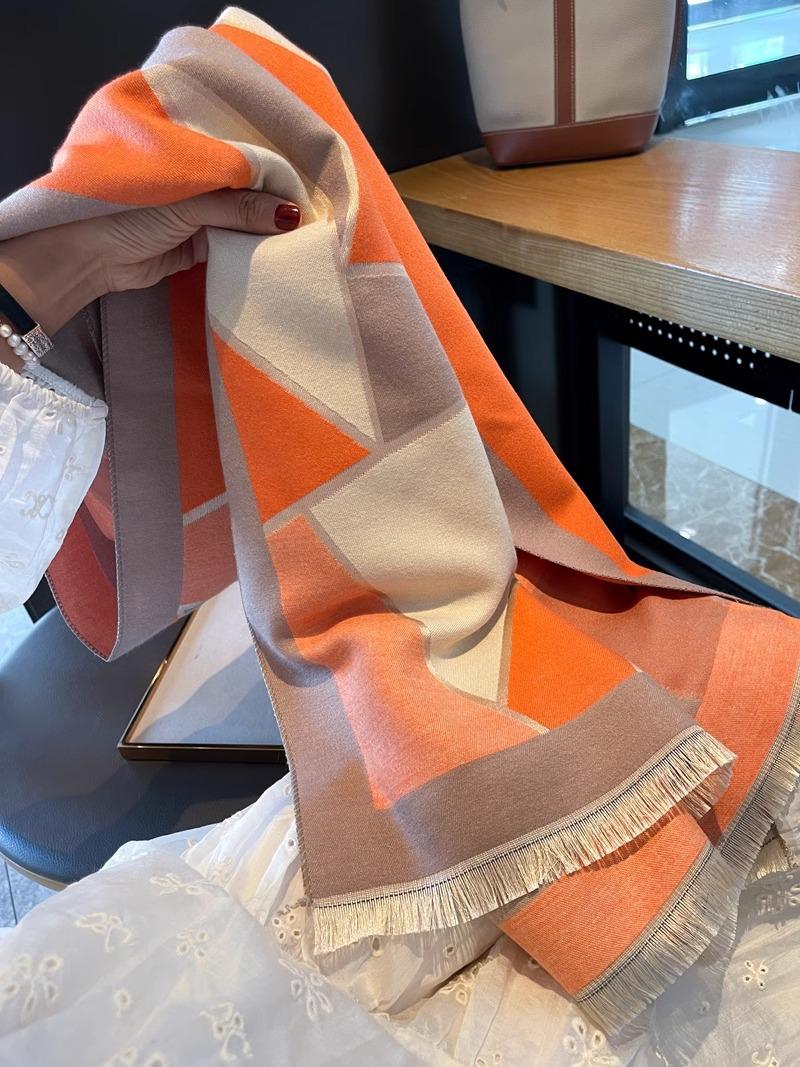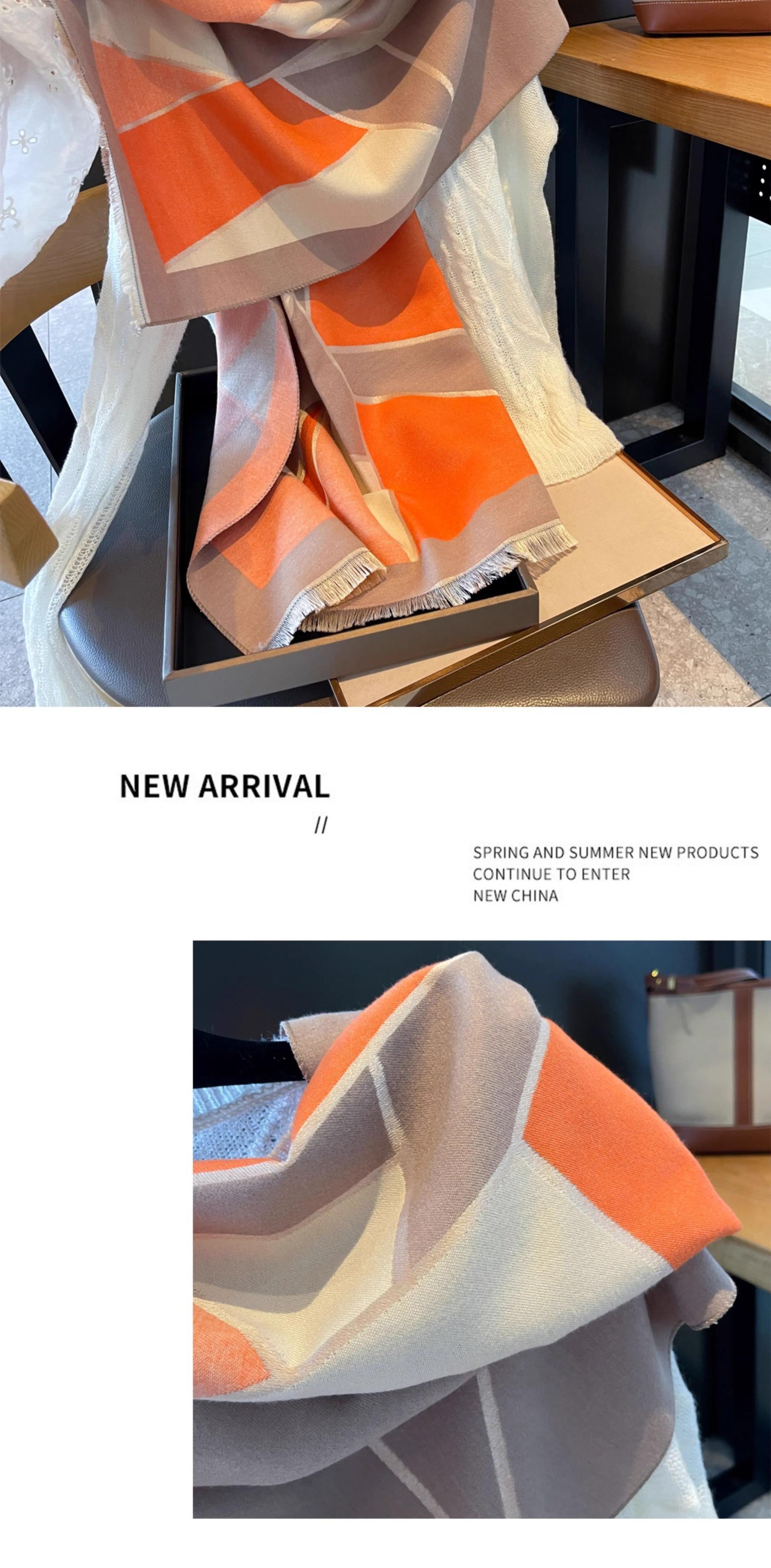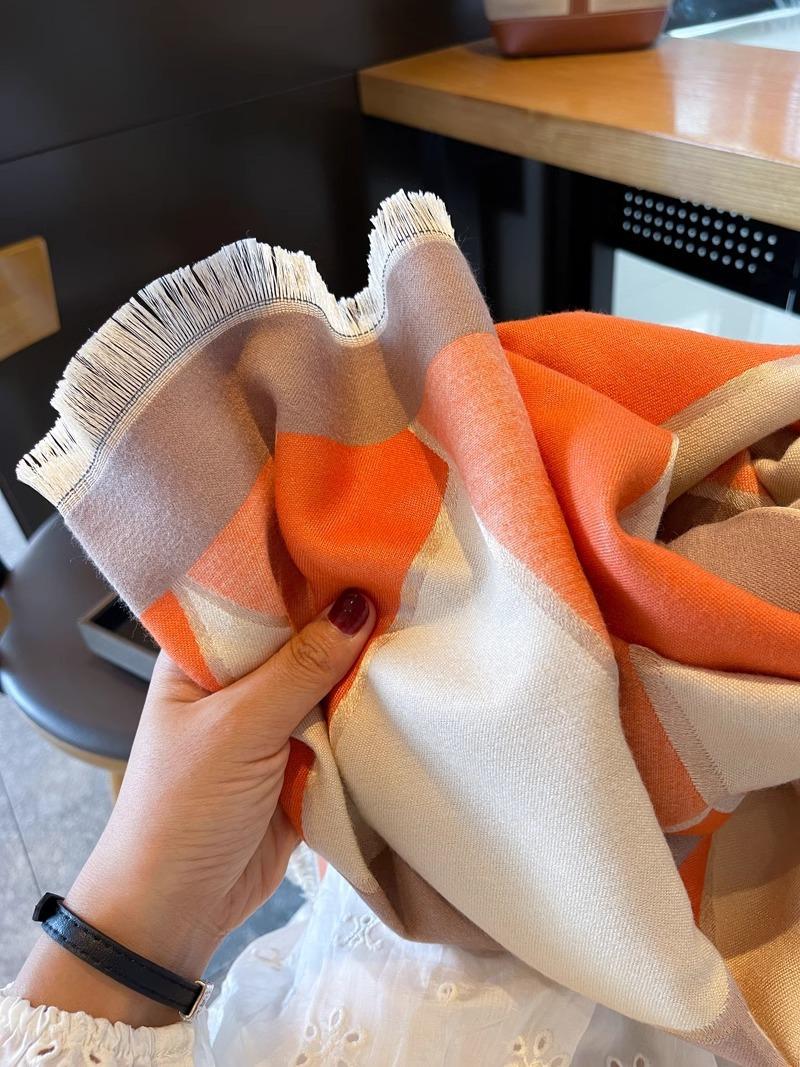 Bufanda de Cachemira de Doble Uso Naranja Arroz Estilo Coreano Combinable Bloque de Color Geométrico con Ribete de Piel para Invierno Cálida para el Cuello Chal Largo para Mujer
