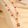 Collar de acero inoxidable con colgante de cereza pastoral para mujer, collar de acero de titanio, collar de cereza pequeña fresca