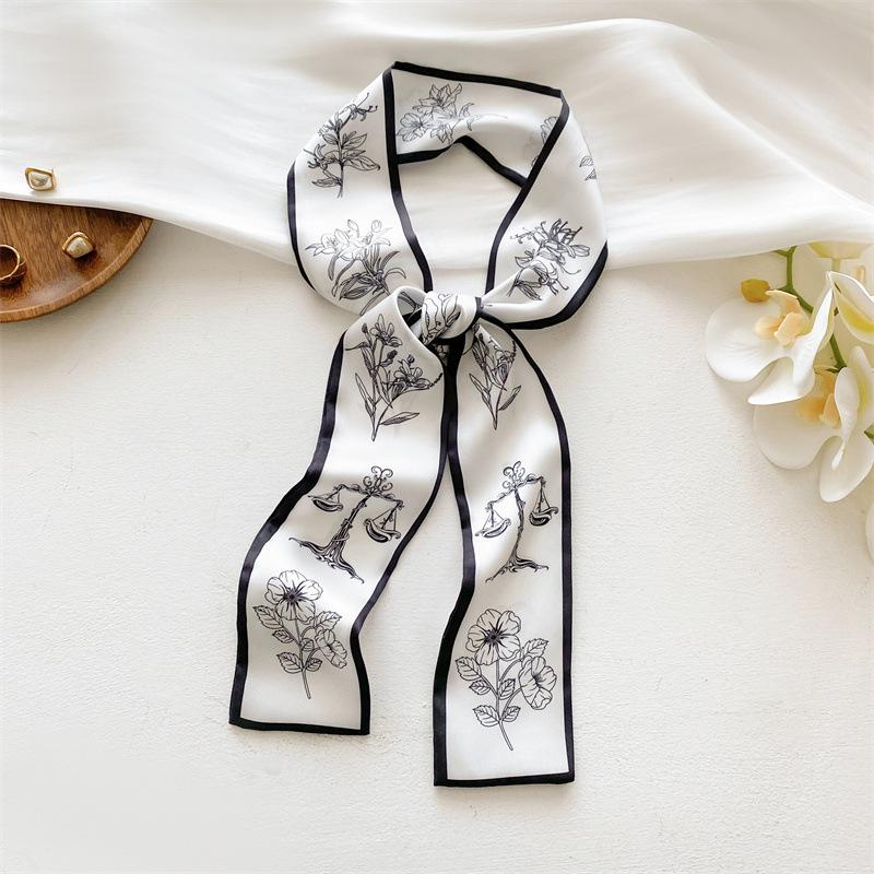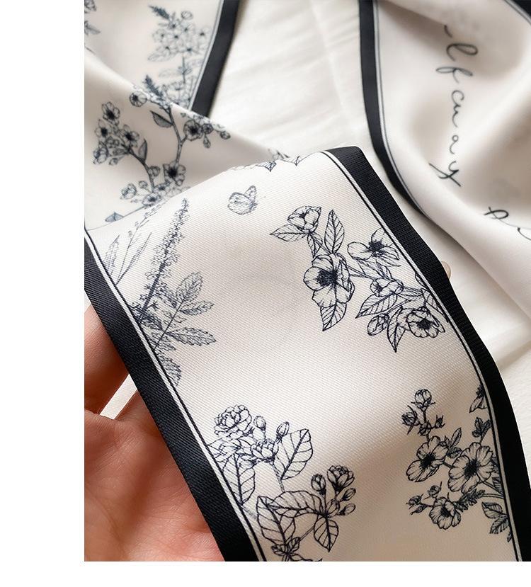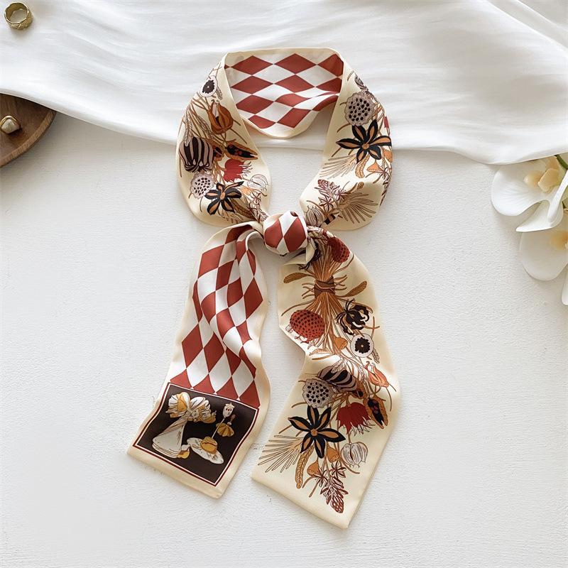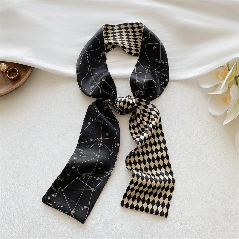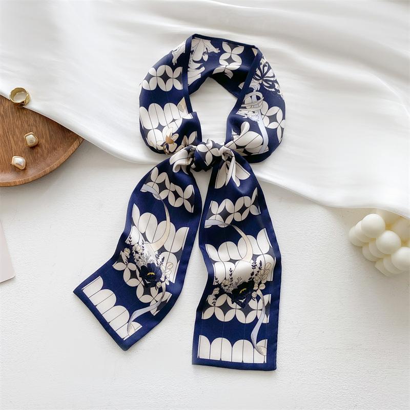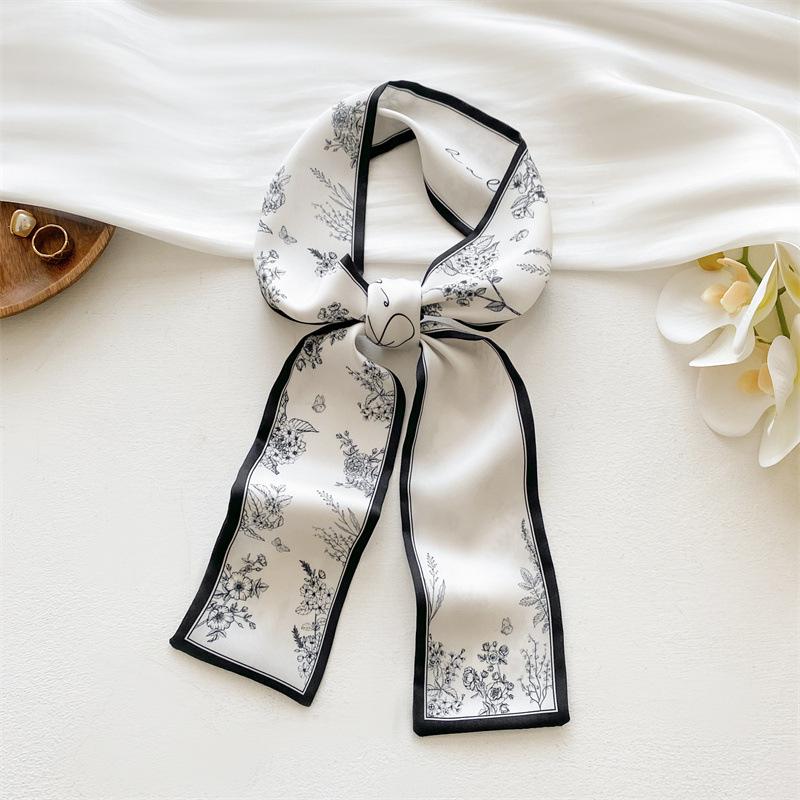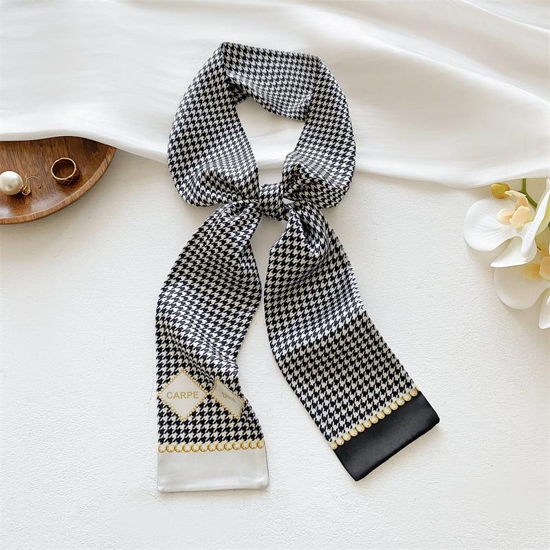 Bufanda de seda elegante verde combinable para primavera y verano, pequeña y larga, para mujer, para atar el pelo, para bolso, con cinta decorativa y para camisa.