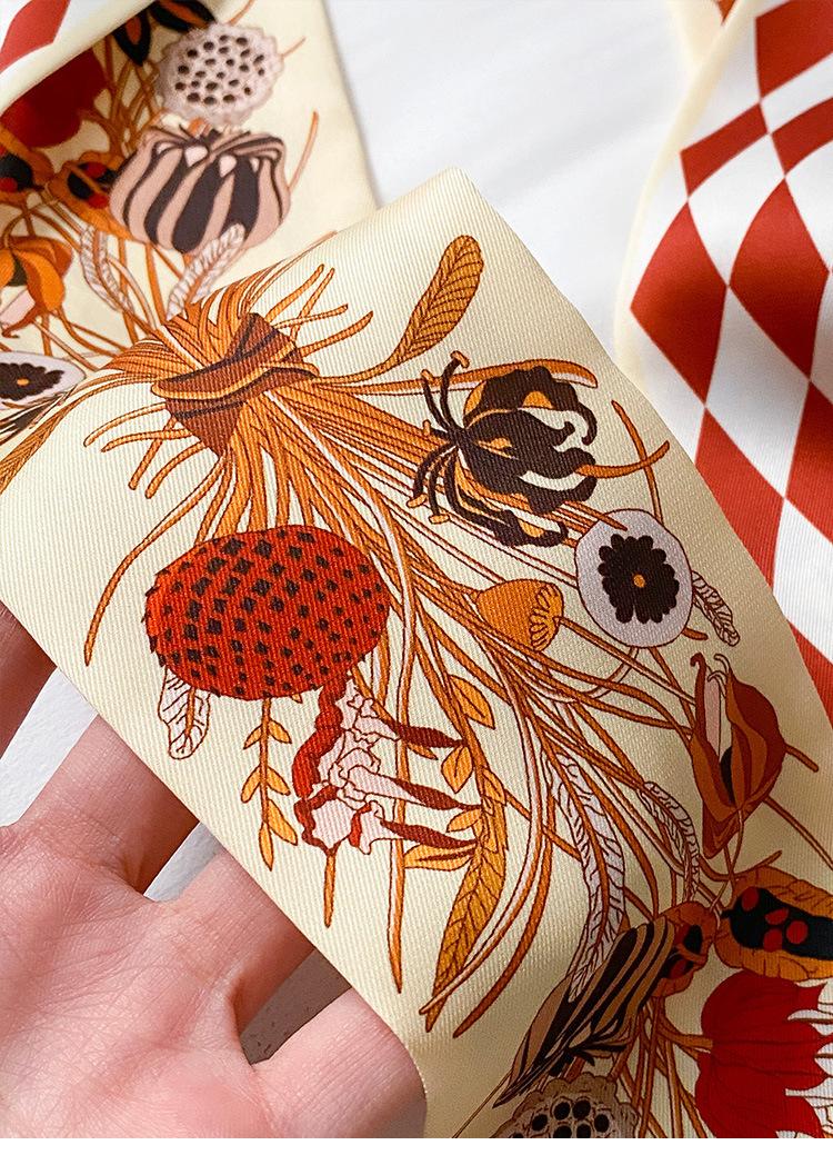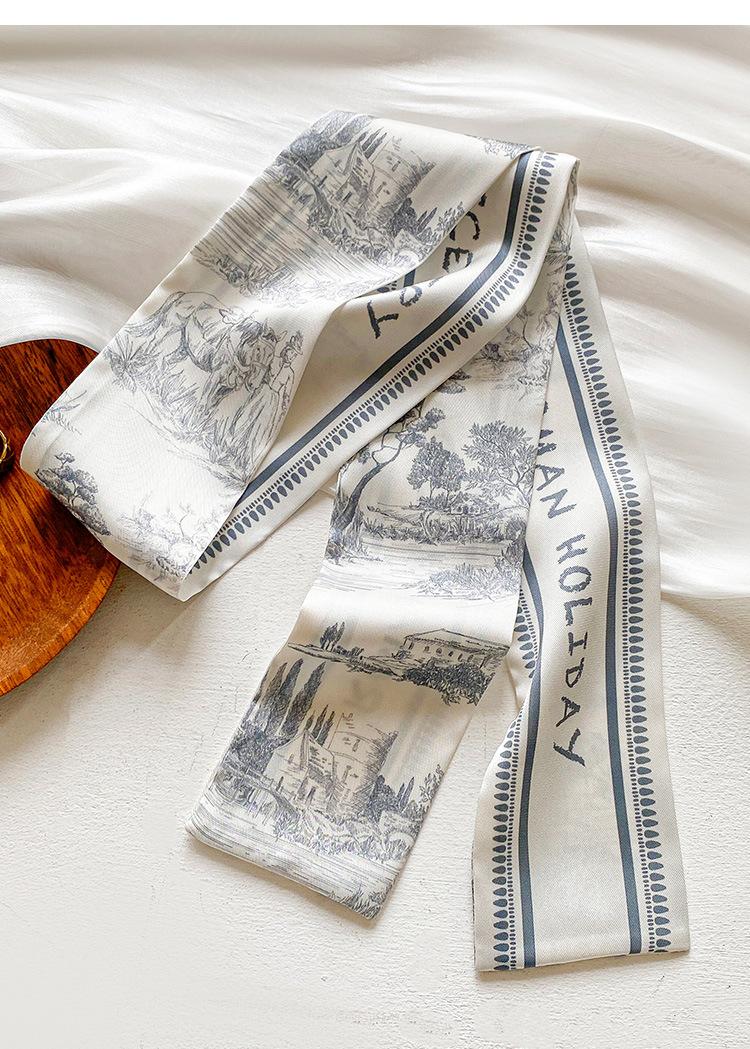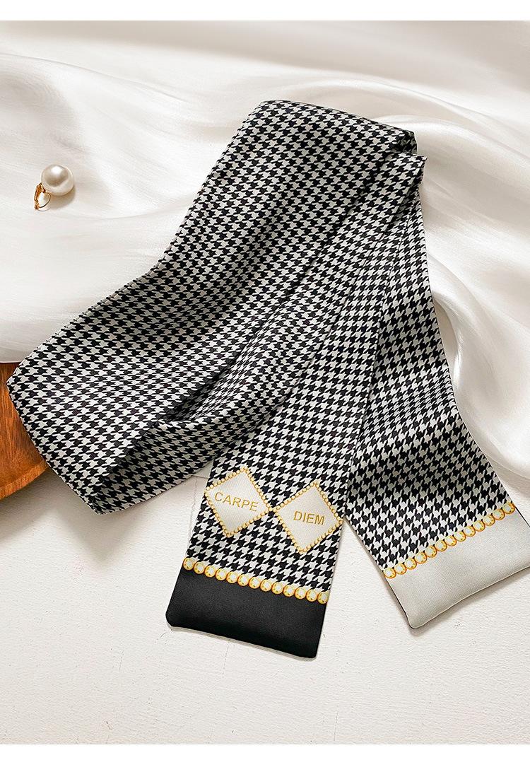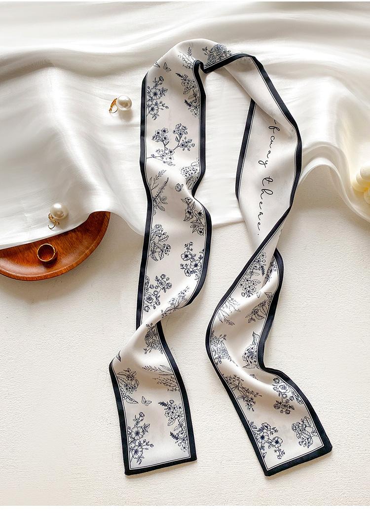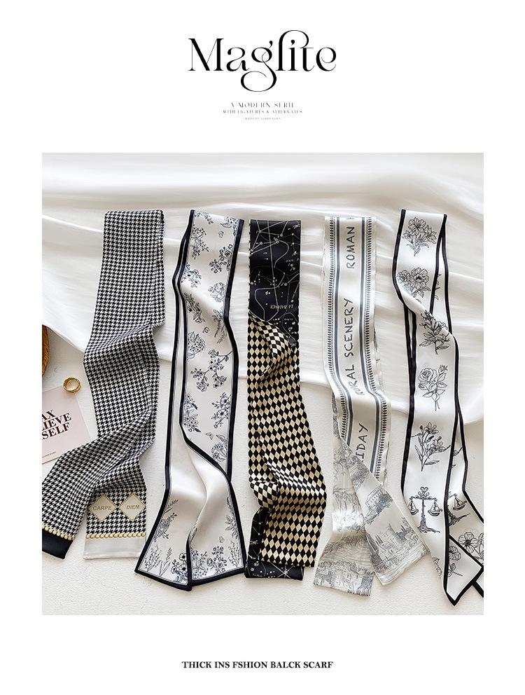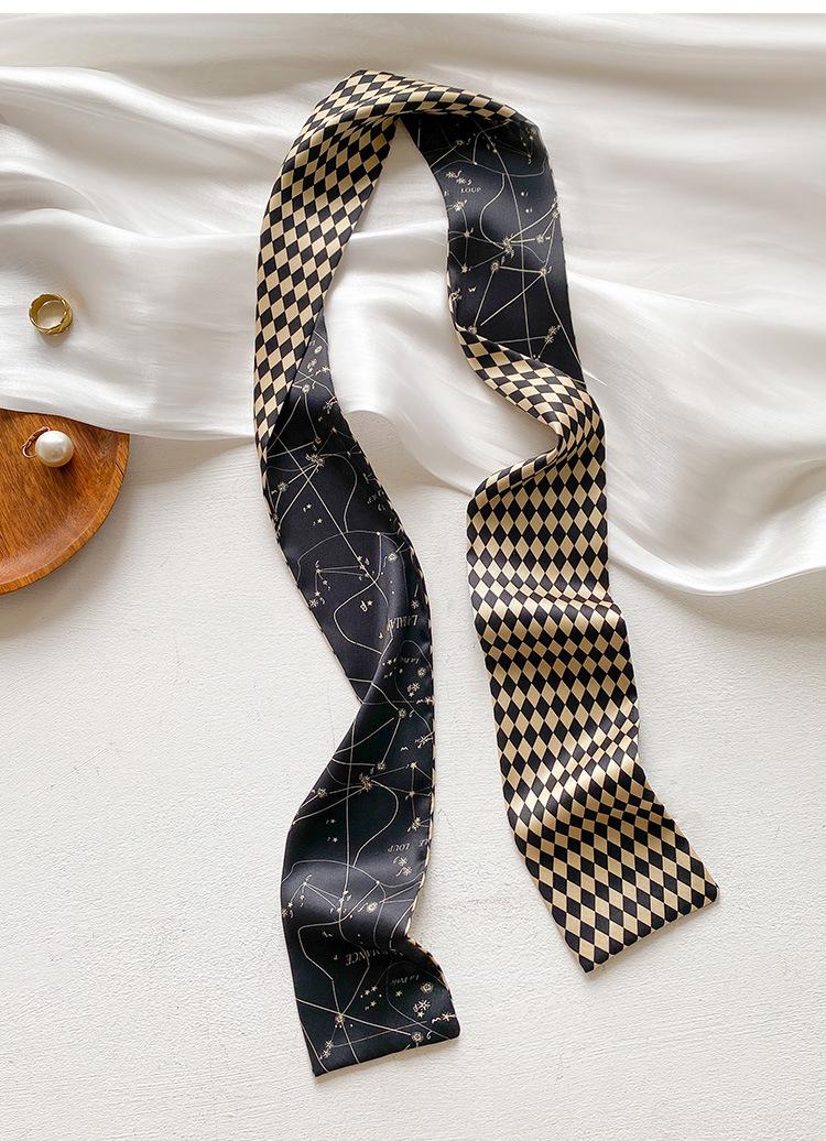 Bufanda de seda elegante verde combinable para primavera y verano, pequeña y larga, para mujer, para atar el pelo, para bolso, con cinta decorativa y para camisa.