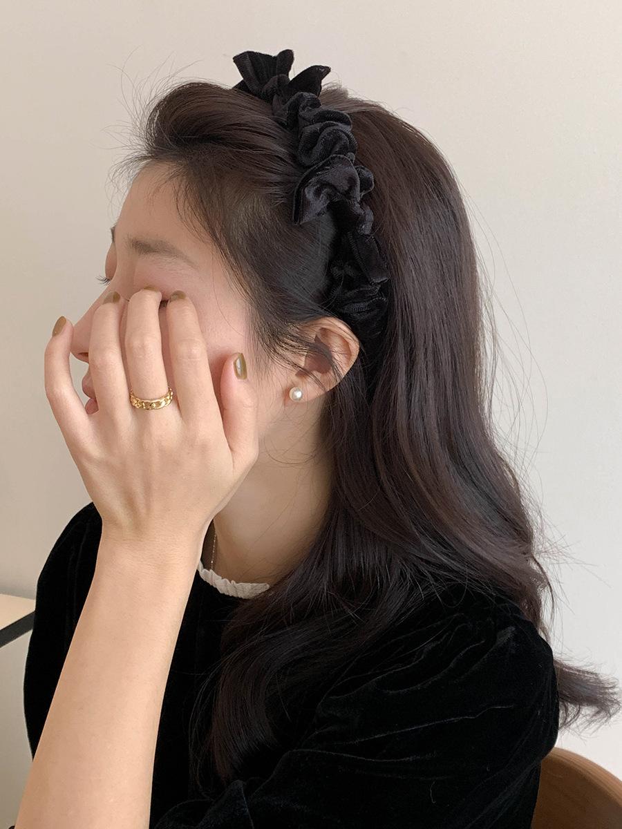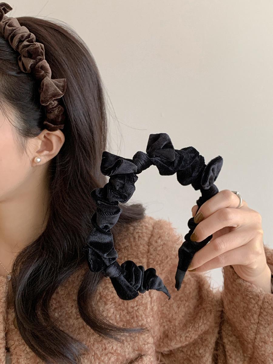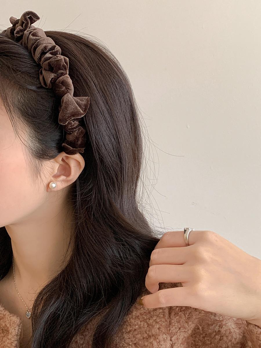 4711-1-brown velvet pleated bow headband, 4711-2-black velvet pleated bow headband
