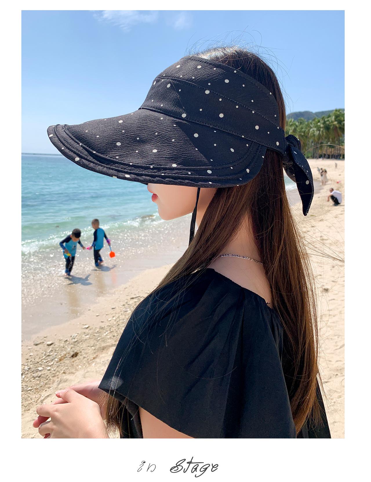 Sombrero para mujer, primavera y verano, estilo retro, con ondas y lunares, estilo coreano, simple, plegable y combinable.