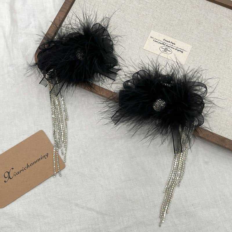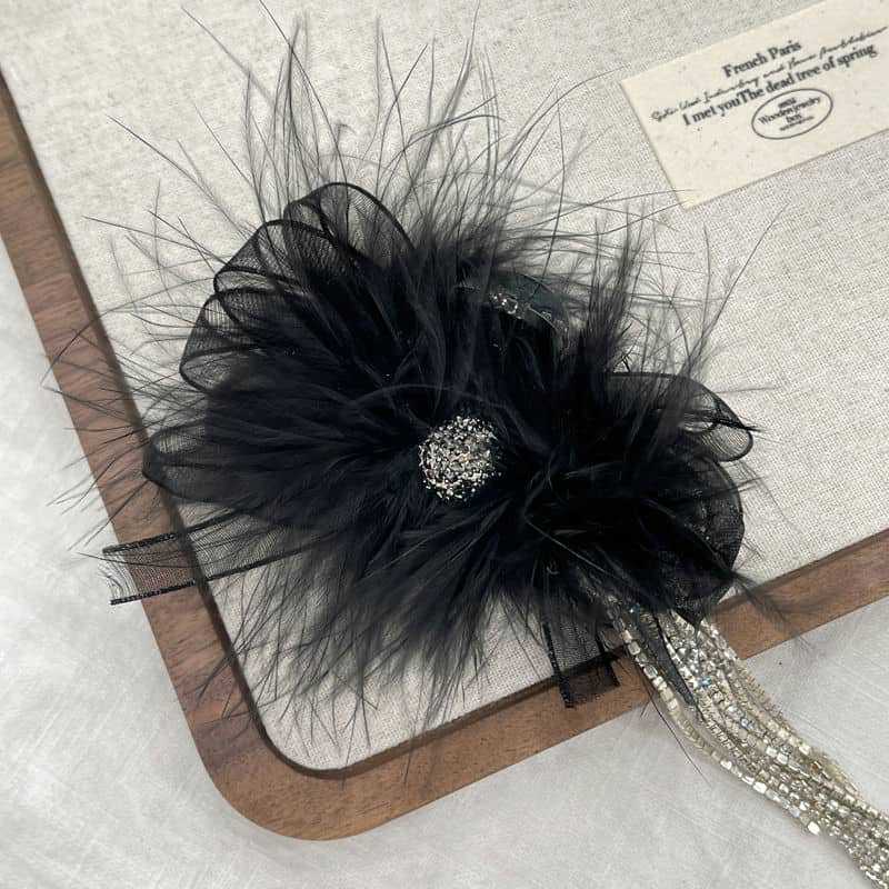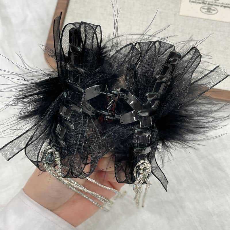 Horquilla de pelo con lazo de cinta de alta calidad y borlas de plumas para mujer, 2023, nueva pinza para el pelo con forma de tiburón para la parte posterior de la cabeza.
