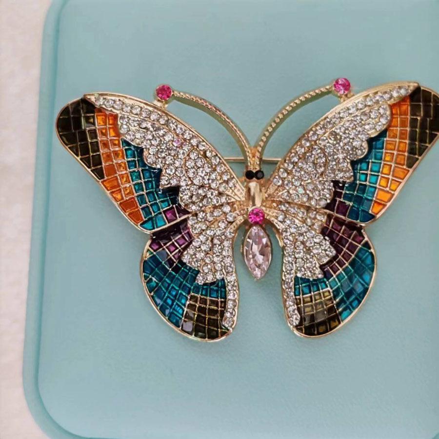 Broche de Mariposa Exquisito Colorido de Moda, Corsage Vintage de Lujo Ligero, Pin para Abrigo de Mariposa Elegante y Único de Alta Gama