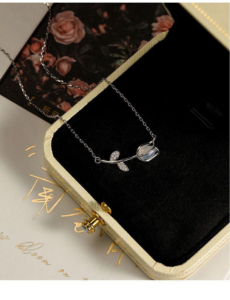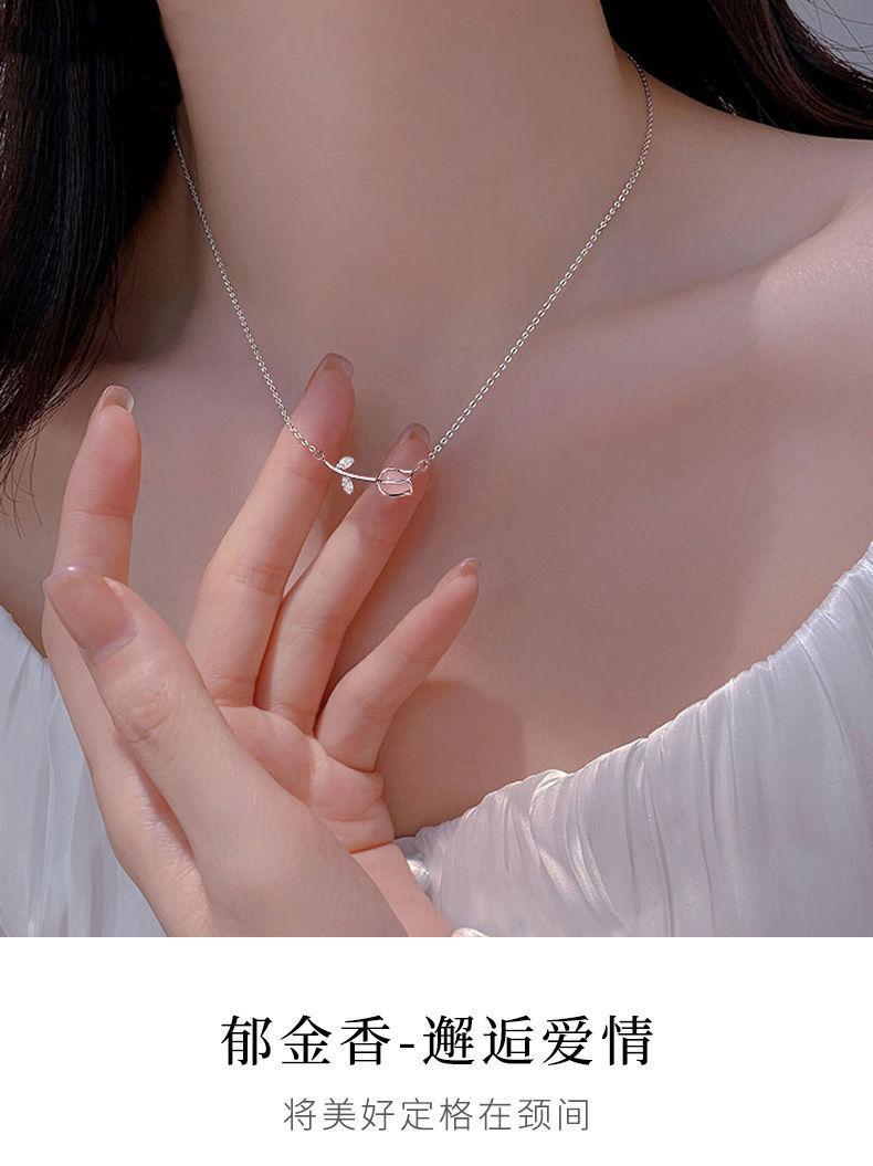 Collar de tulipán para estudiantes, nuevo, ligero, de lujo, nicho plateado, regalo de cumpleaños para novias, venta al por mayor
