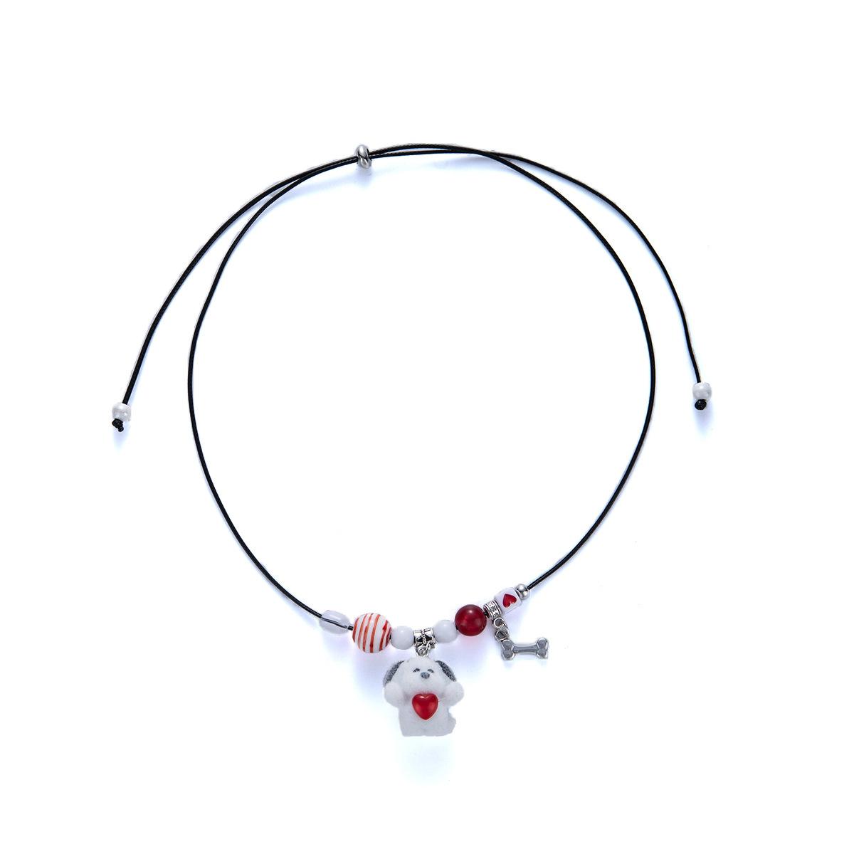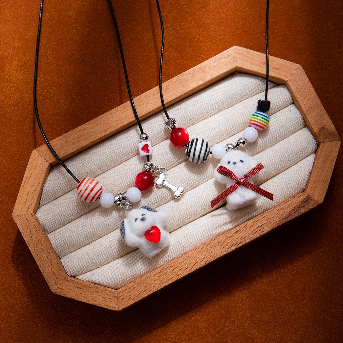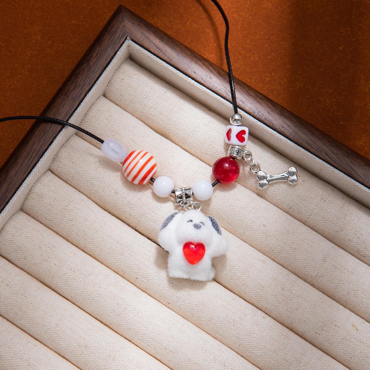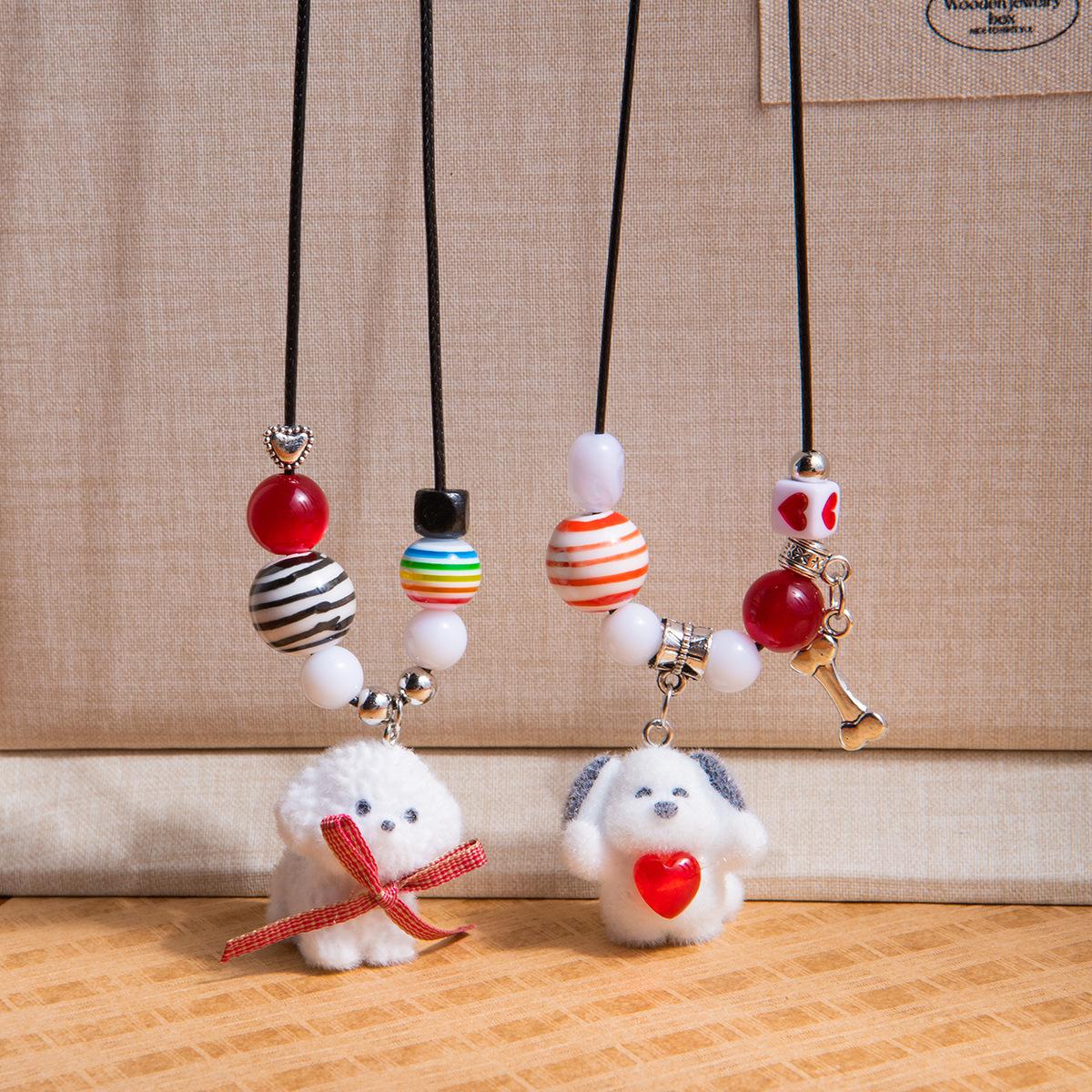 Nuevo collar chino creativo con diseño de perro blanco para mujer, de nicho, ligero, de lujo, exquisito, de alta calidad, a la moda, con cadena de lana que combina con todo.