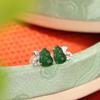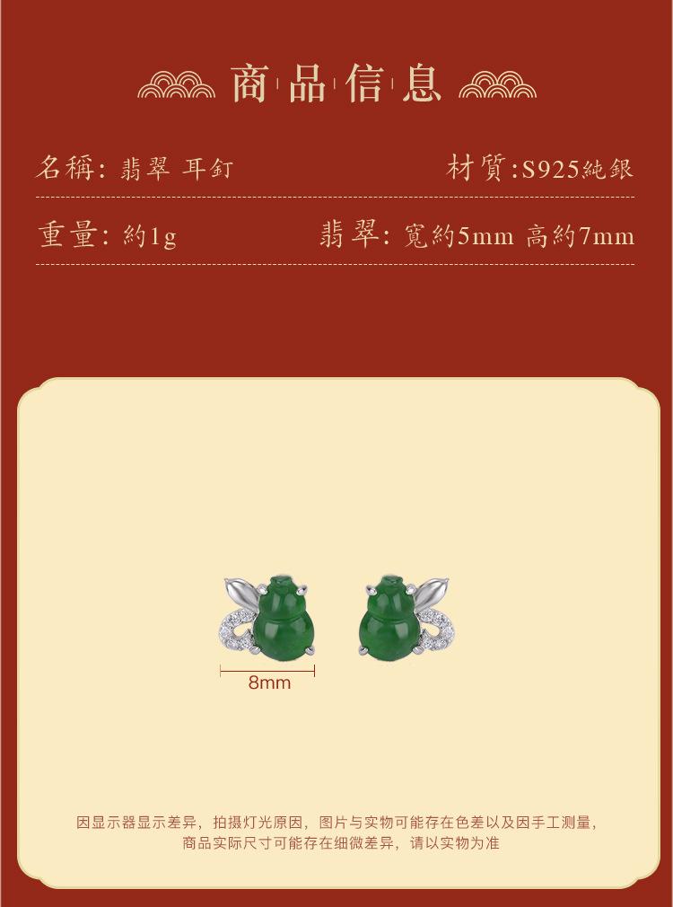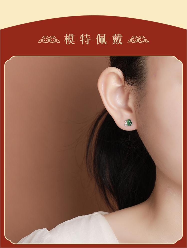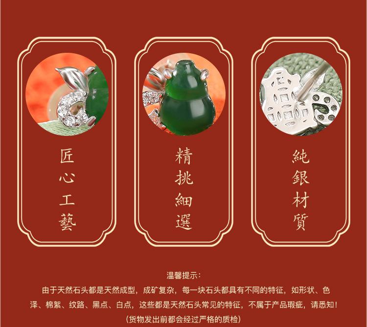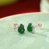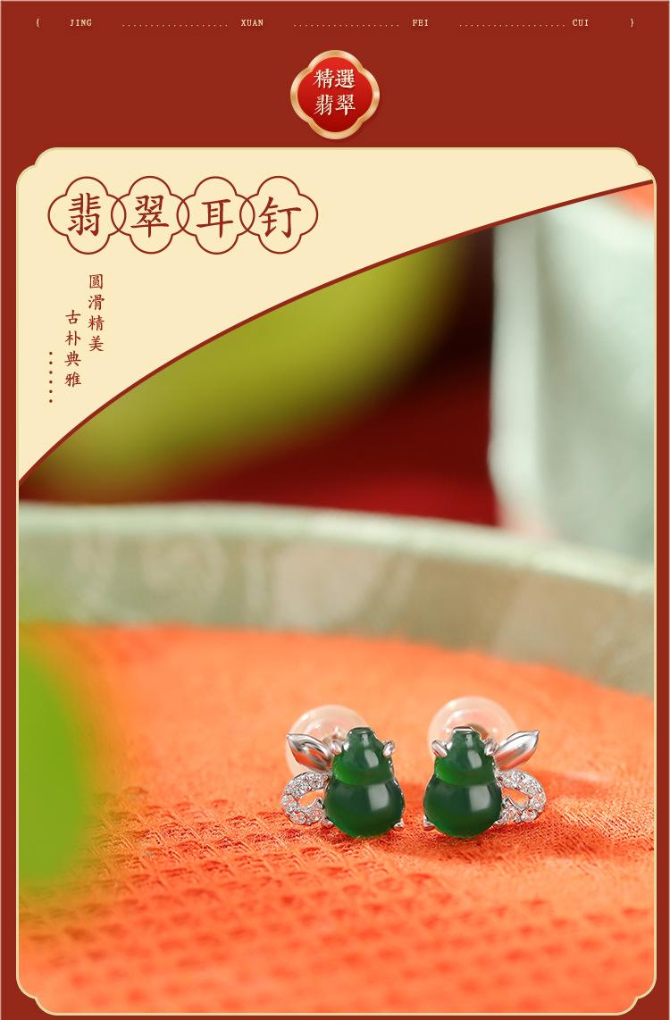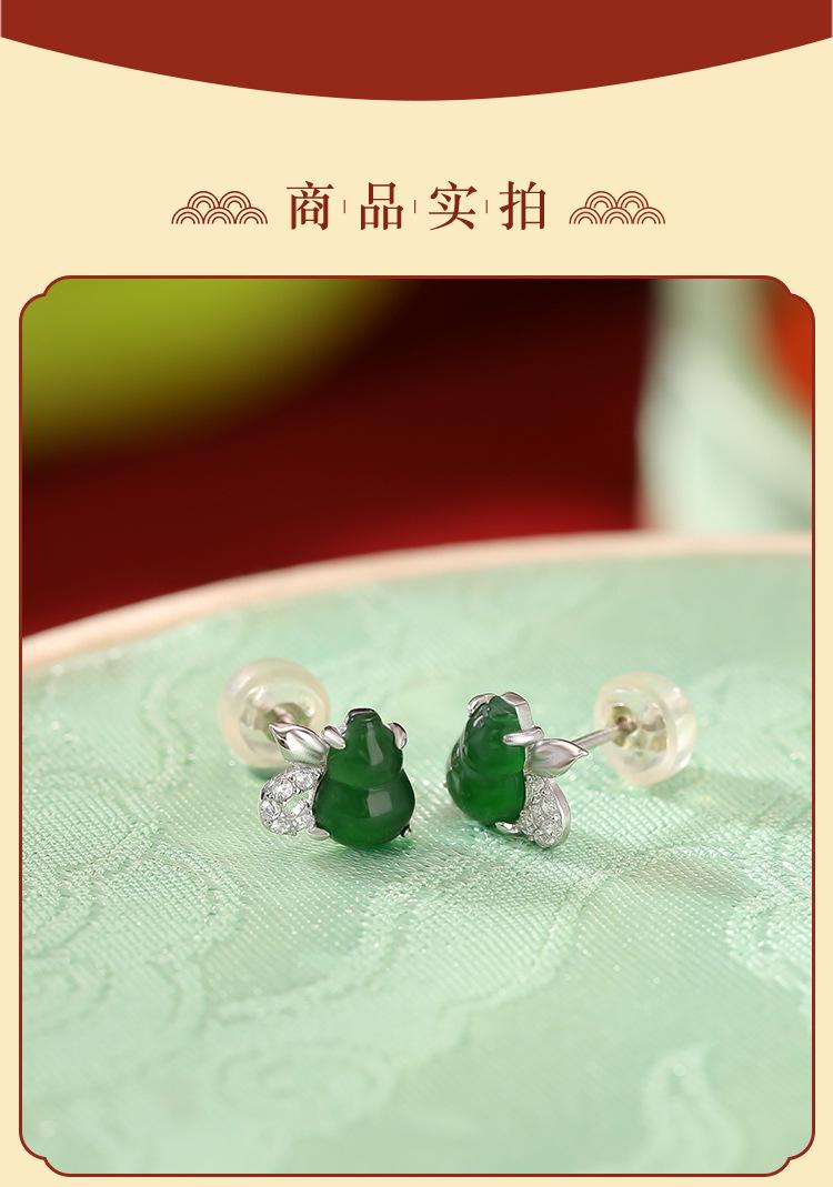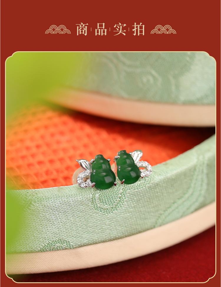 Pendientes Yuebao de plata de ley S925 con diseño retro de calabaza Fulu y jade, de estilo nacional, elegantes y blancos a juego.