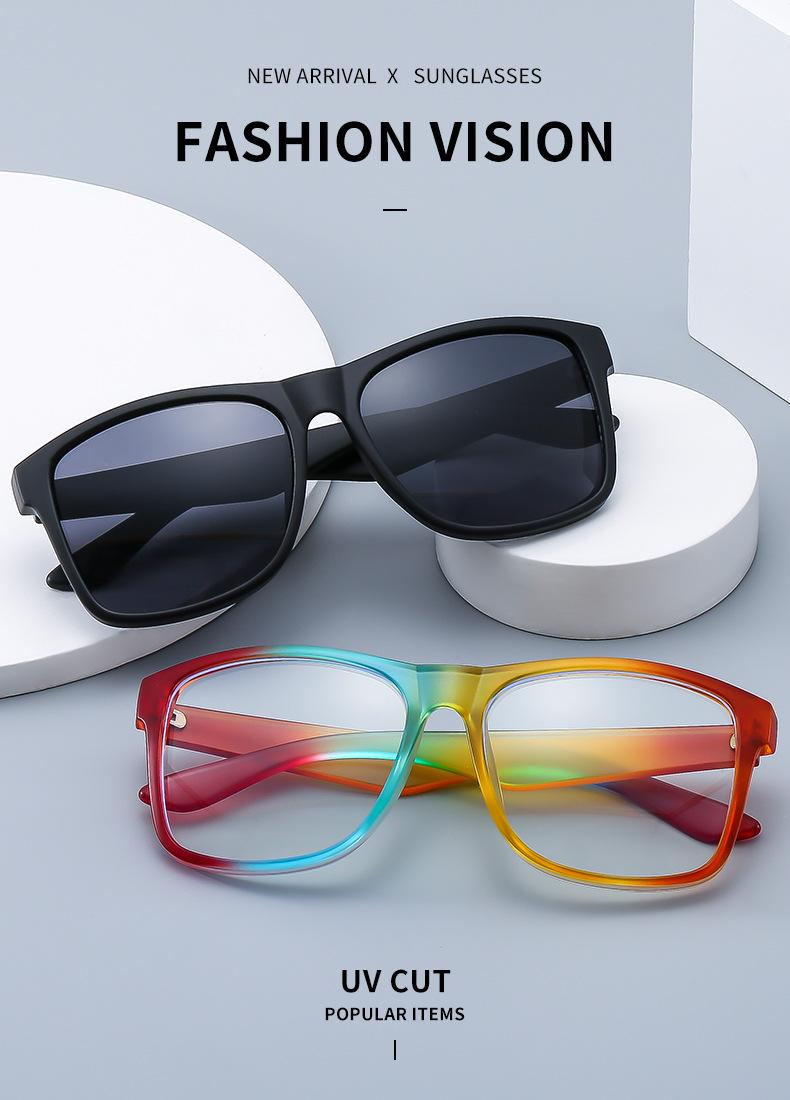 2023 nuevo marco grande europeo y americano Moda luz anti-azul arcoíris gafas lisas marco de gafas artefacto de belleza liso