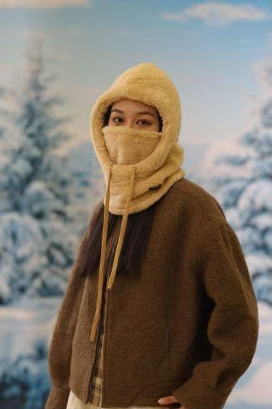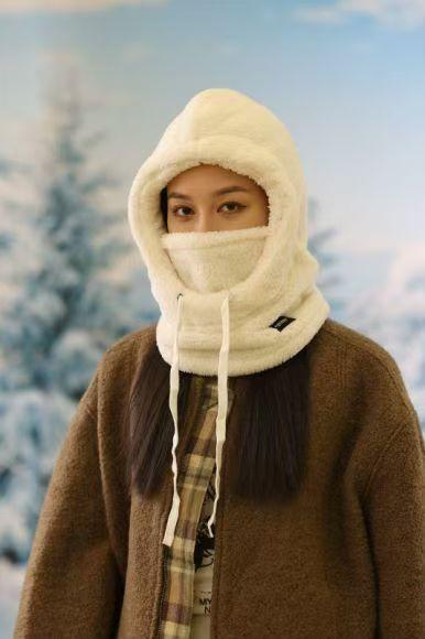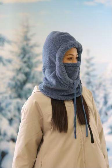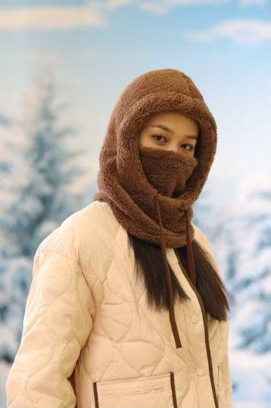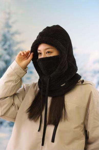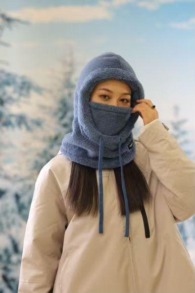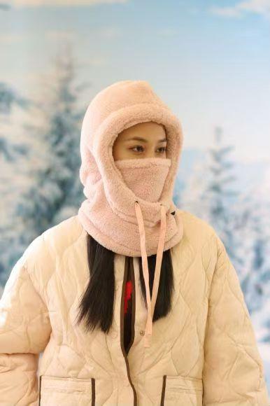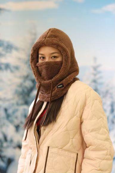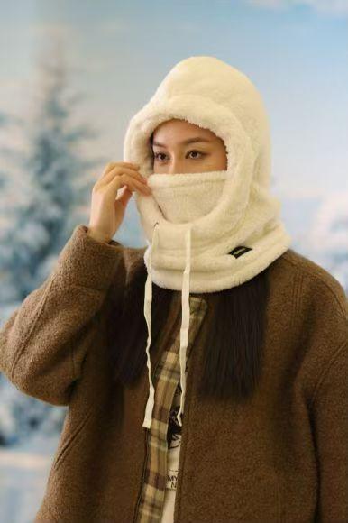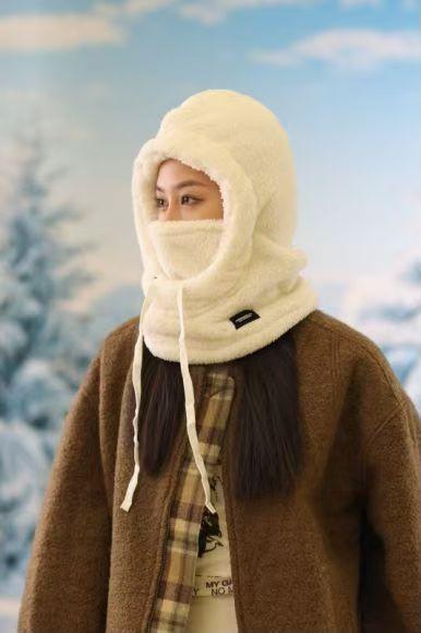 Sombrero Felpa Cálido Protección para las Orejas Cuello Integrado Sombrero de Mujer Invierno Engrosado Esquí Ciclismo Máscara Gorro a Prueba de Viento Moderno