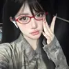 Marco de té negro liso retro ovalado azul y verde de segunda dimensión, artefacto fotográfico de cara pequeña, espejo plano, marco de miopía para niñas