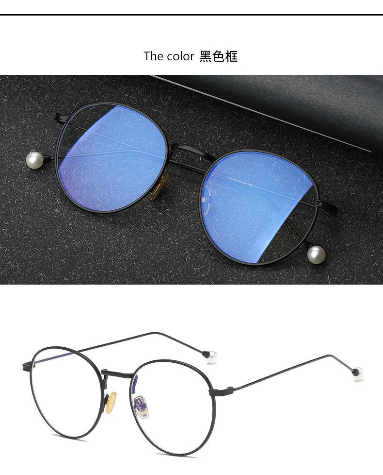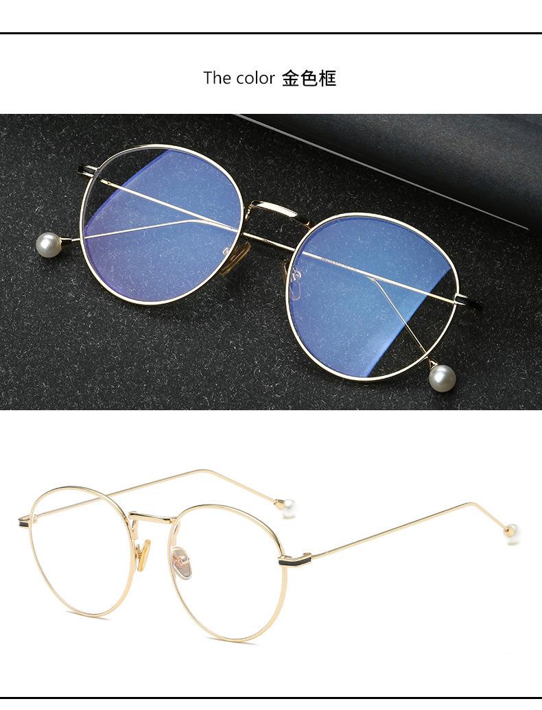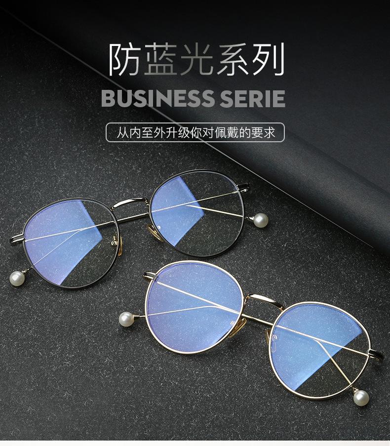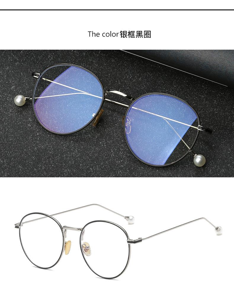 Moda transfronteriza anti-luz azul espejo para computadora luz plana antirradiación gafas lisas damas perla montura redonda gafas 8709