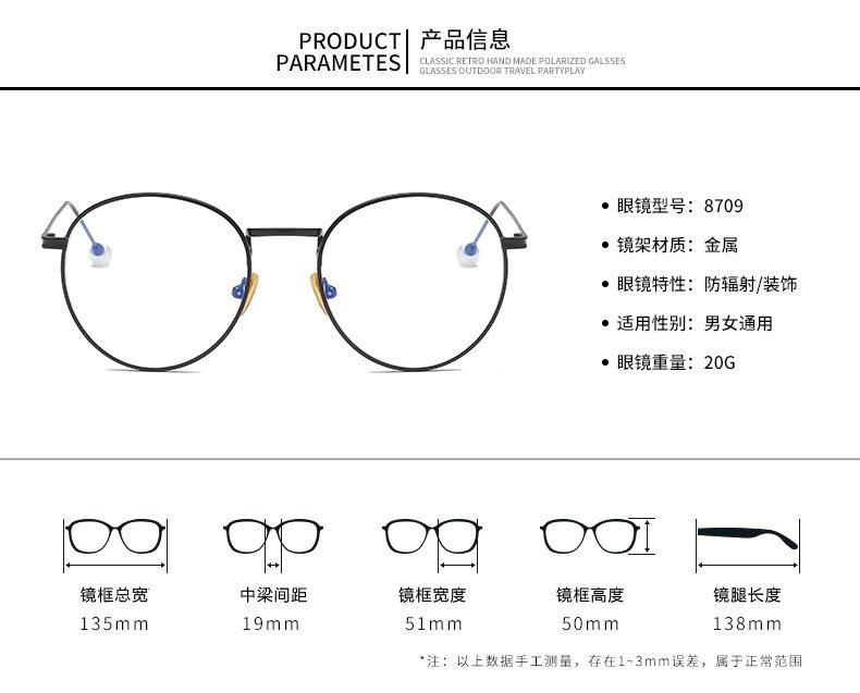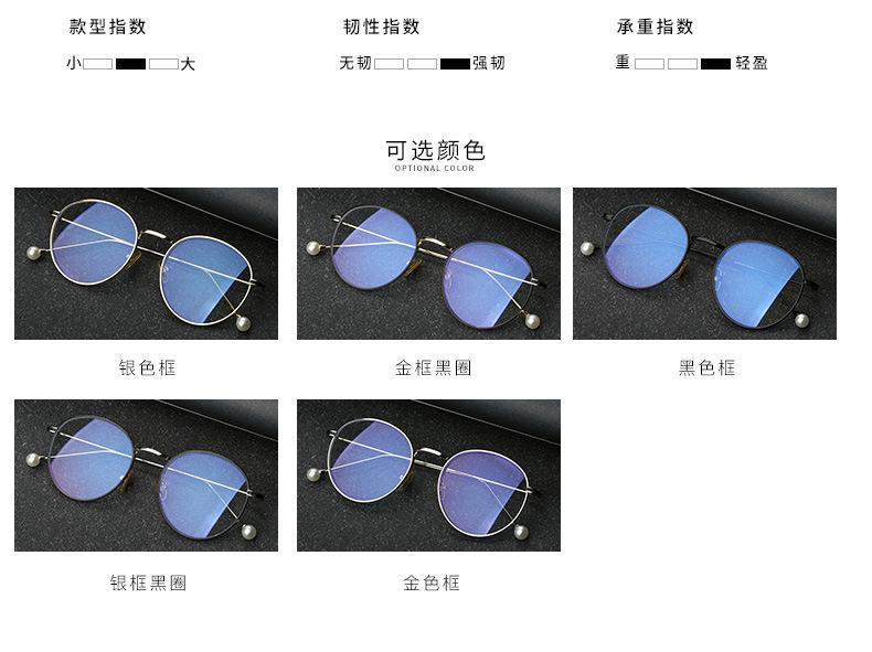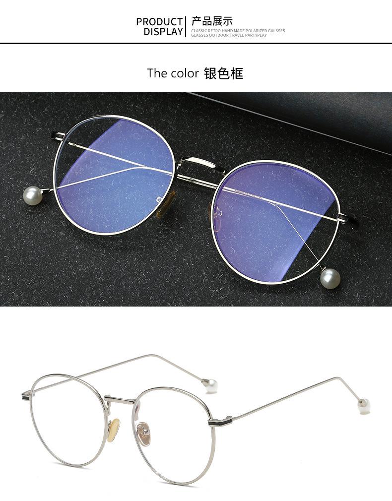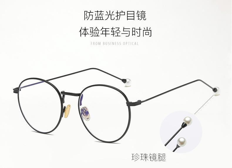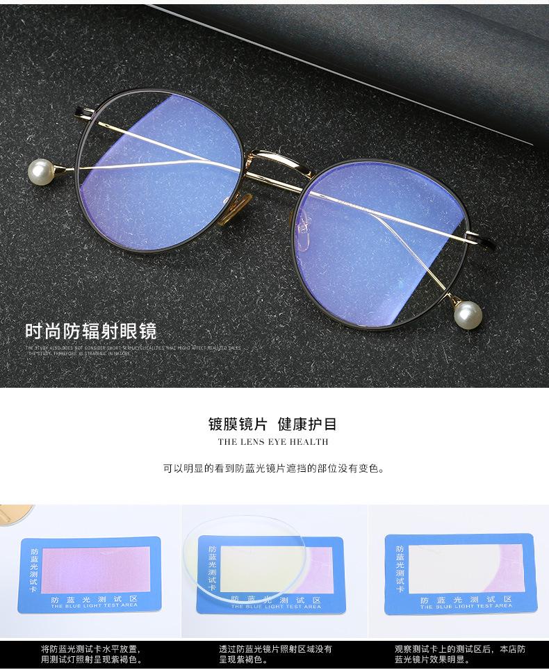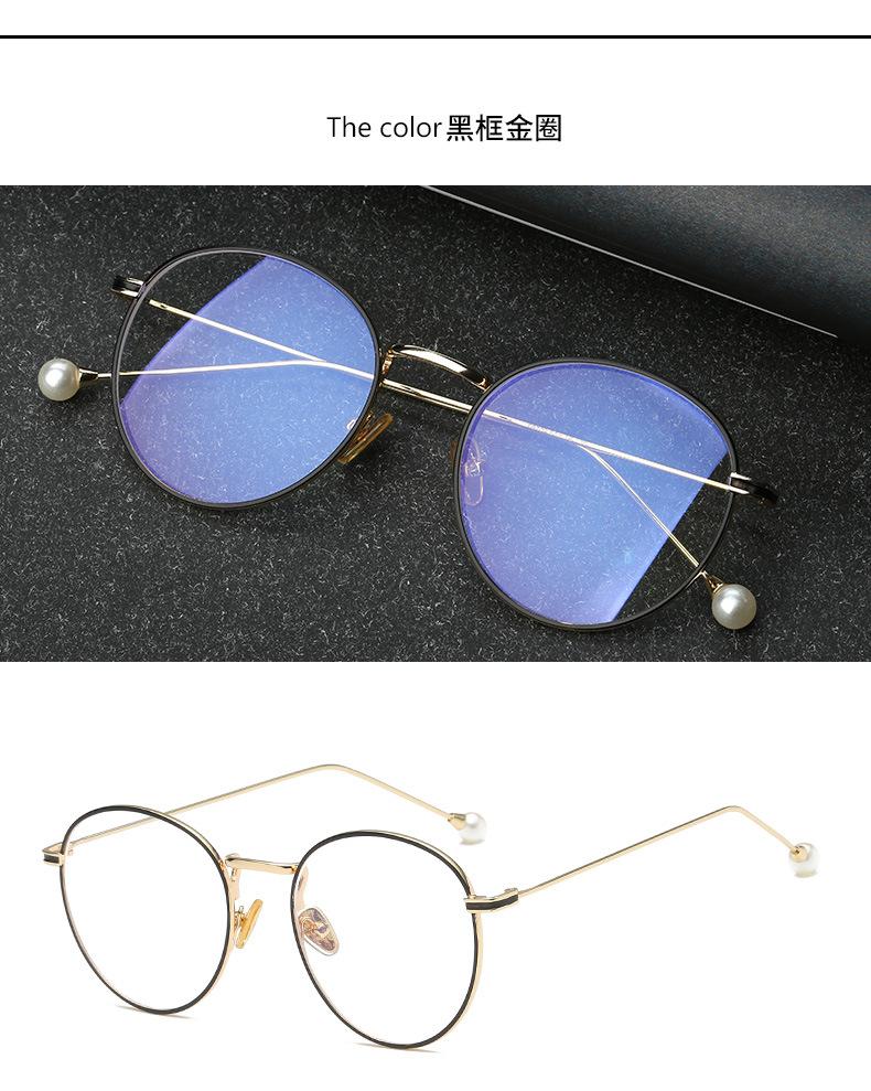 Moda transfronteriza anti-luz azul espejo para computadora luz plana antirradiación gafas lisas damas perla montura redonda gafas 8709