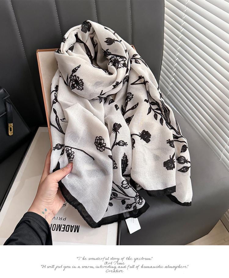 Bufanda Estampada para Mujer Simple y Elegante de Nuevo Estilo Estilo Coreano Lujo Ligero Moda de Primavera y Otoño Chal Exterior