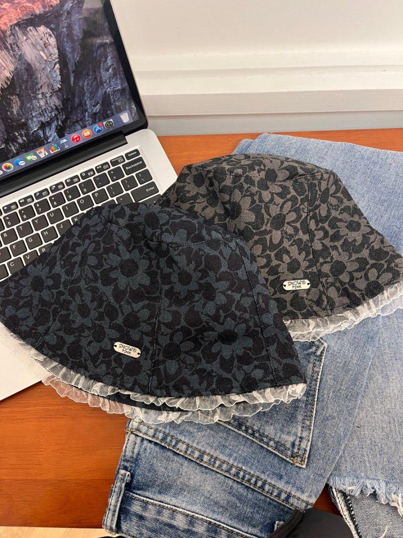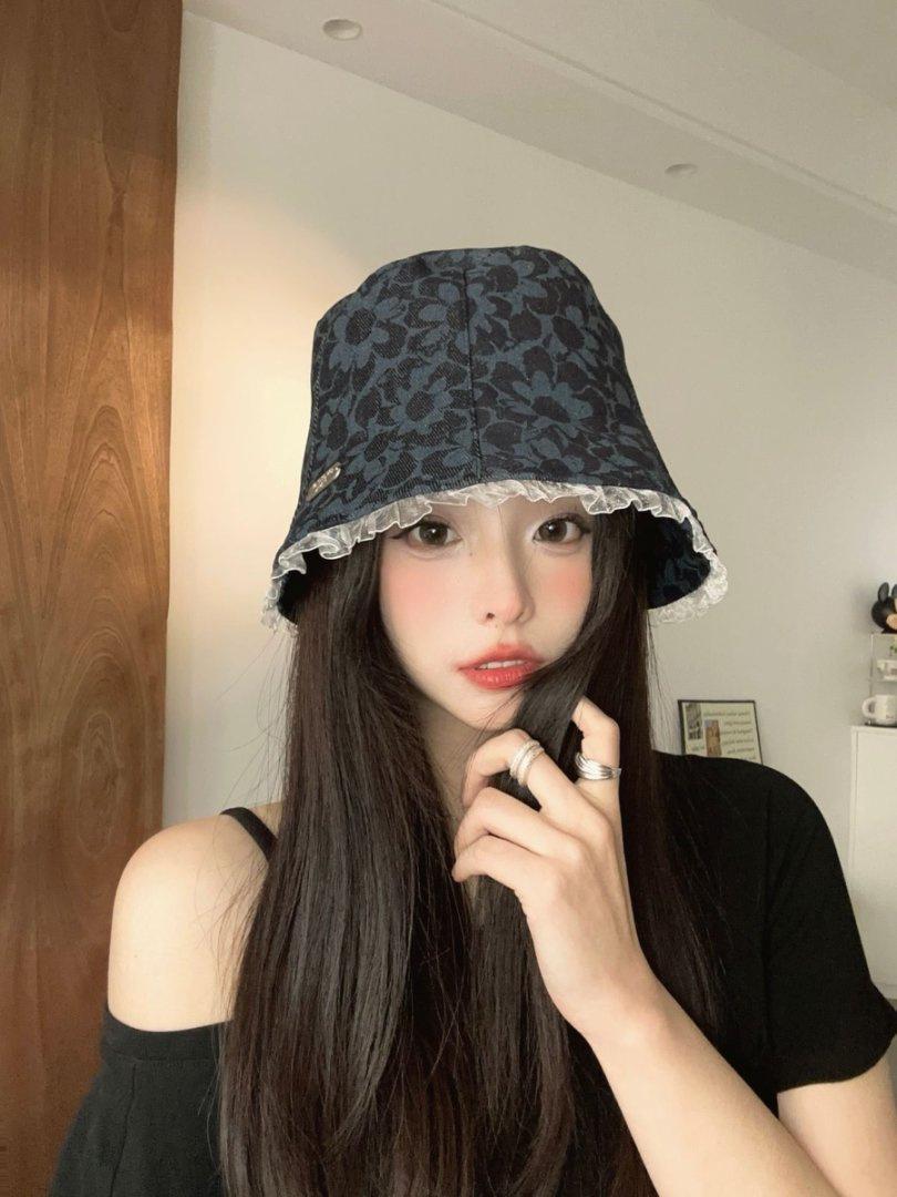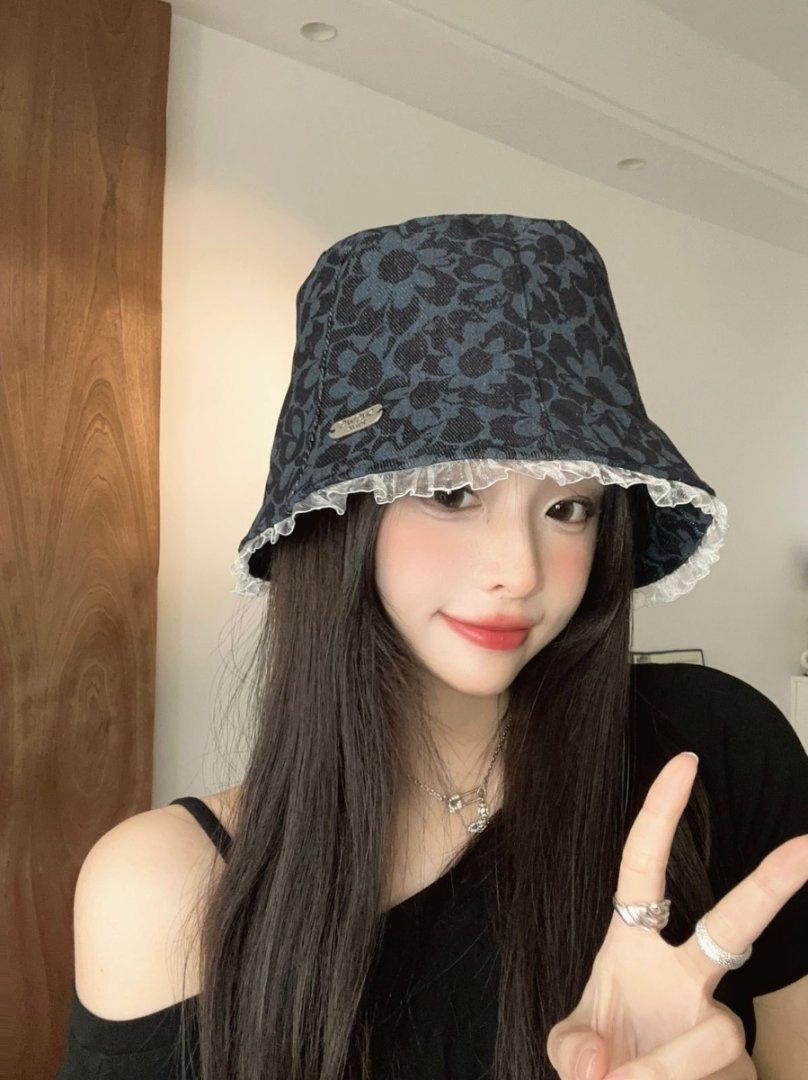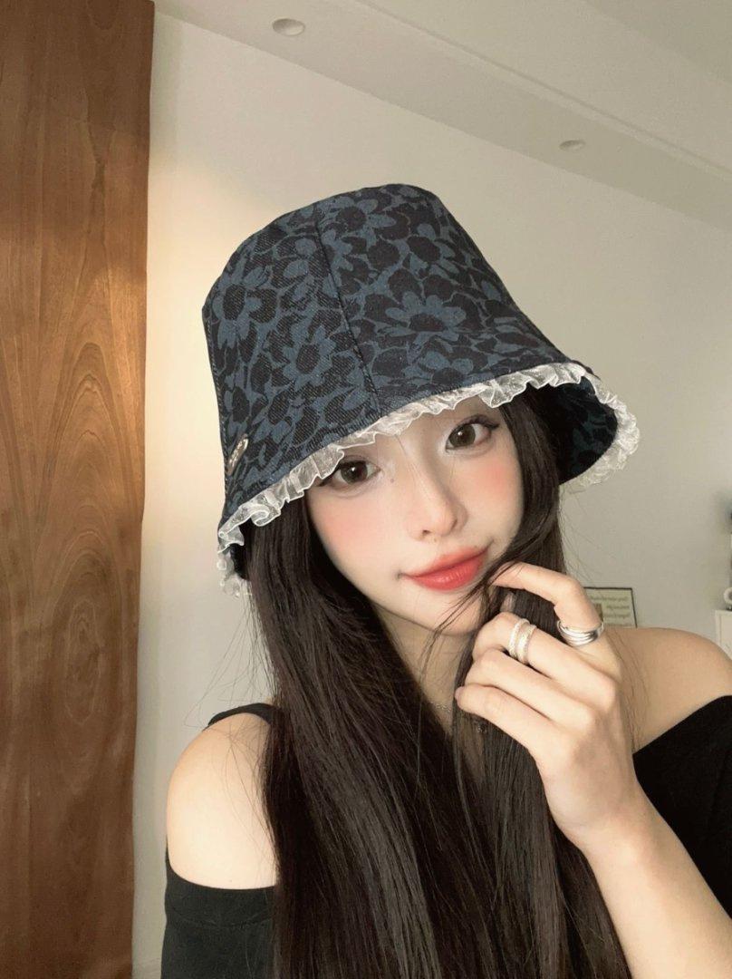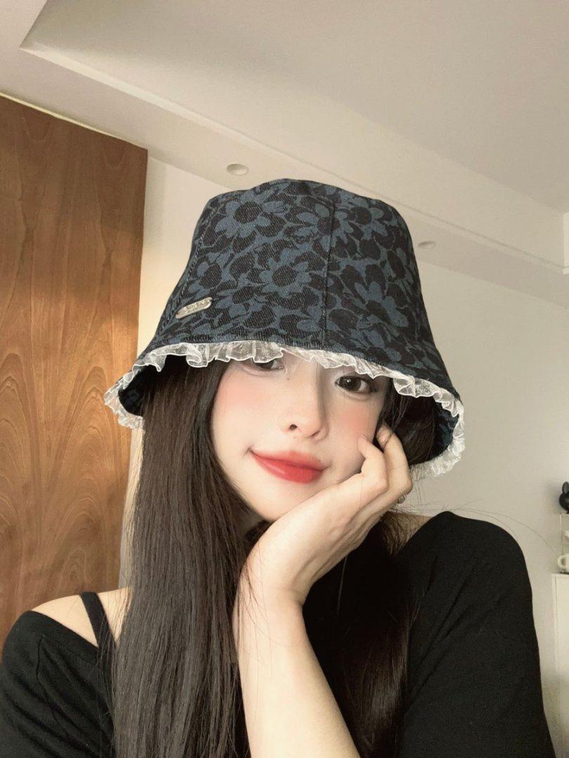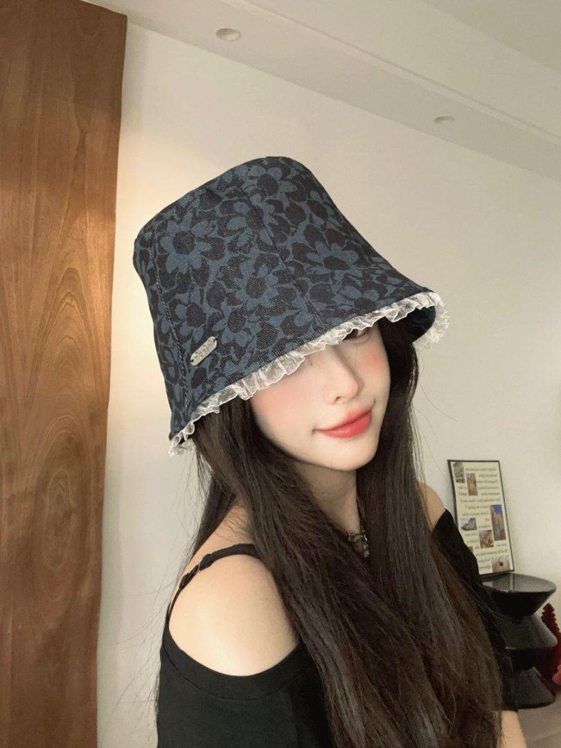 Dyj lace bucket hat-black blue, Dyj lace bucket hat-black coffee color