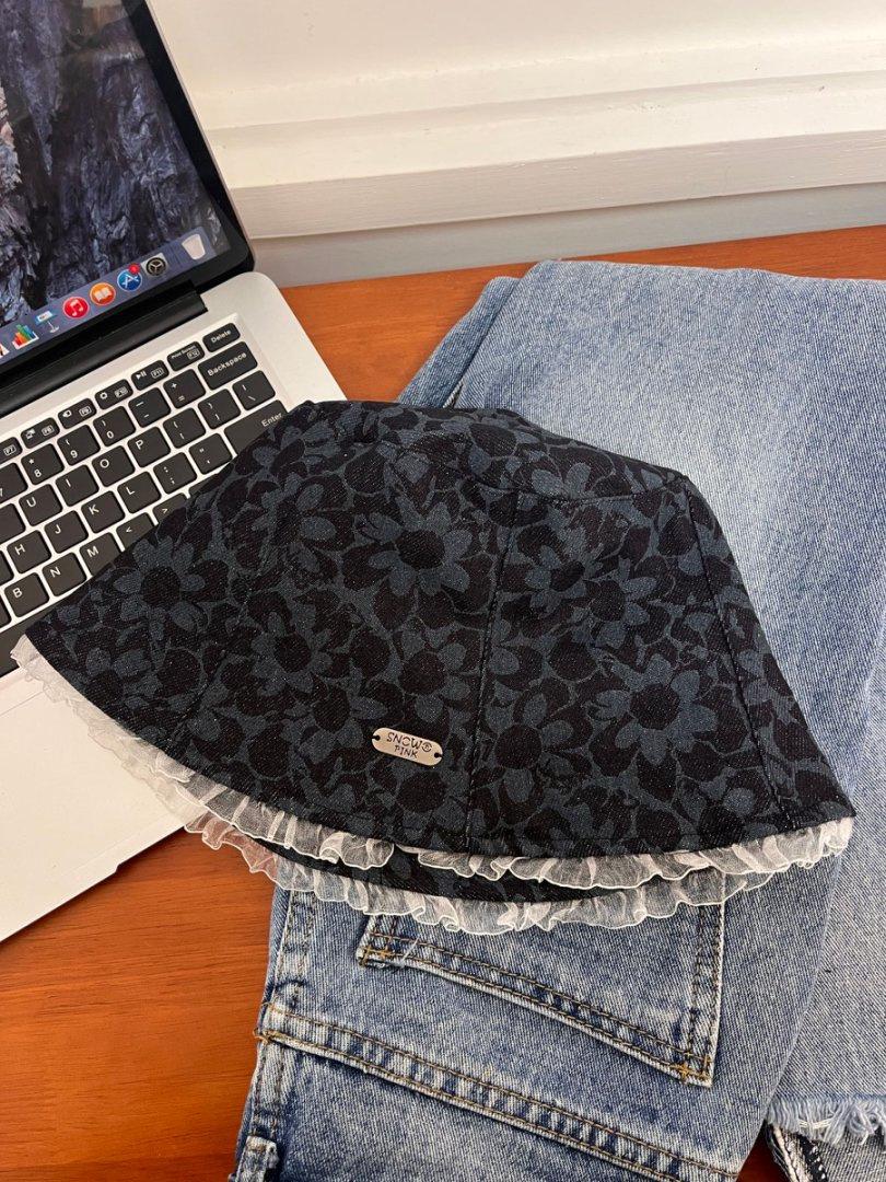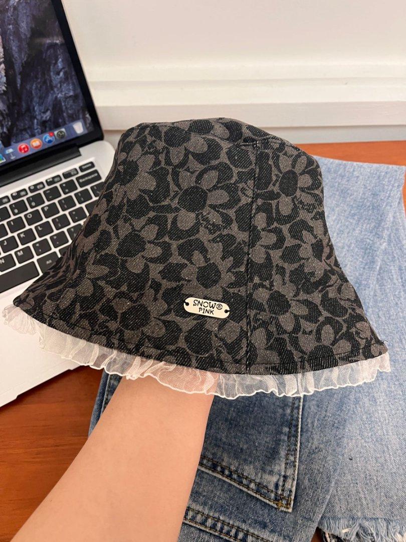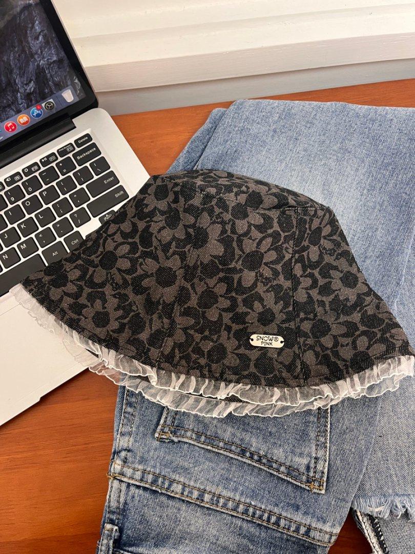 Venta al por mayor Corea del Sur 2025 primavera temprana nuevo estampado de encaje sombrero de pescador de mezclilla sombrero pequeño para el sol