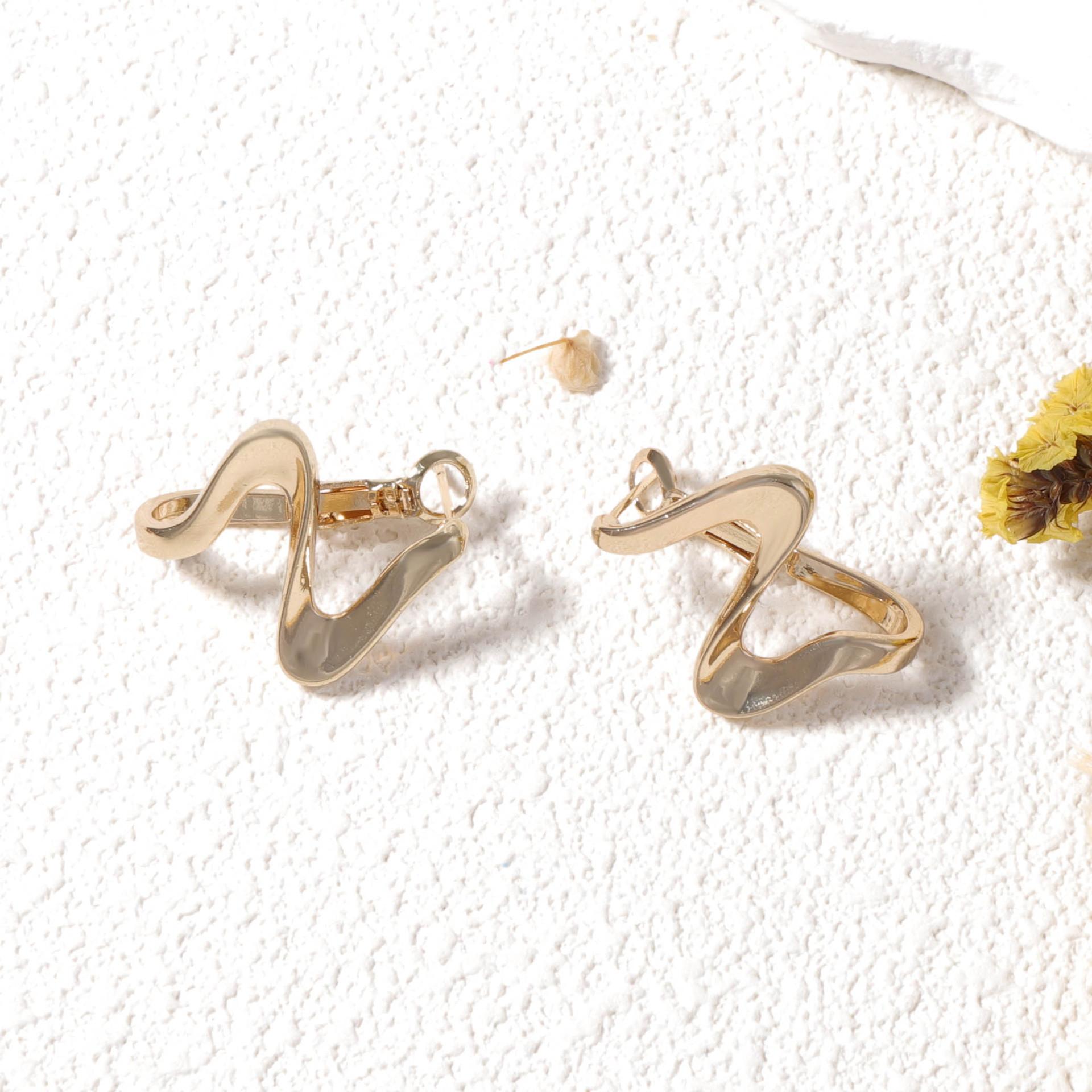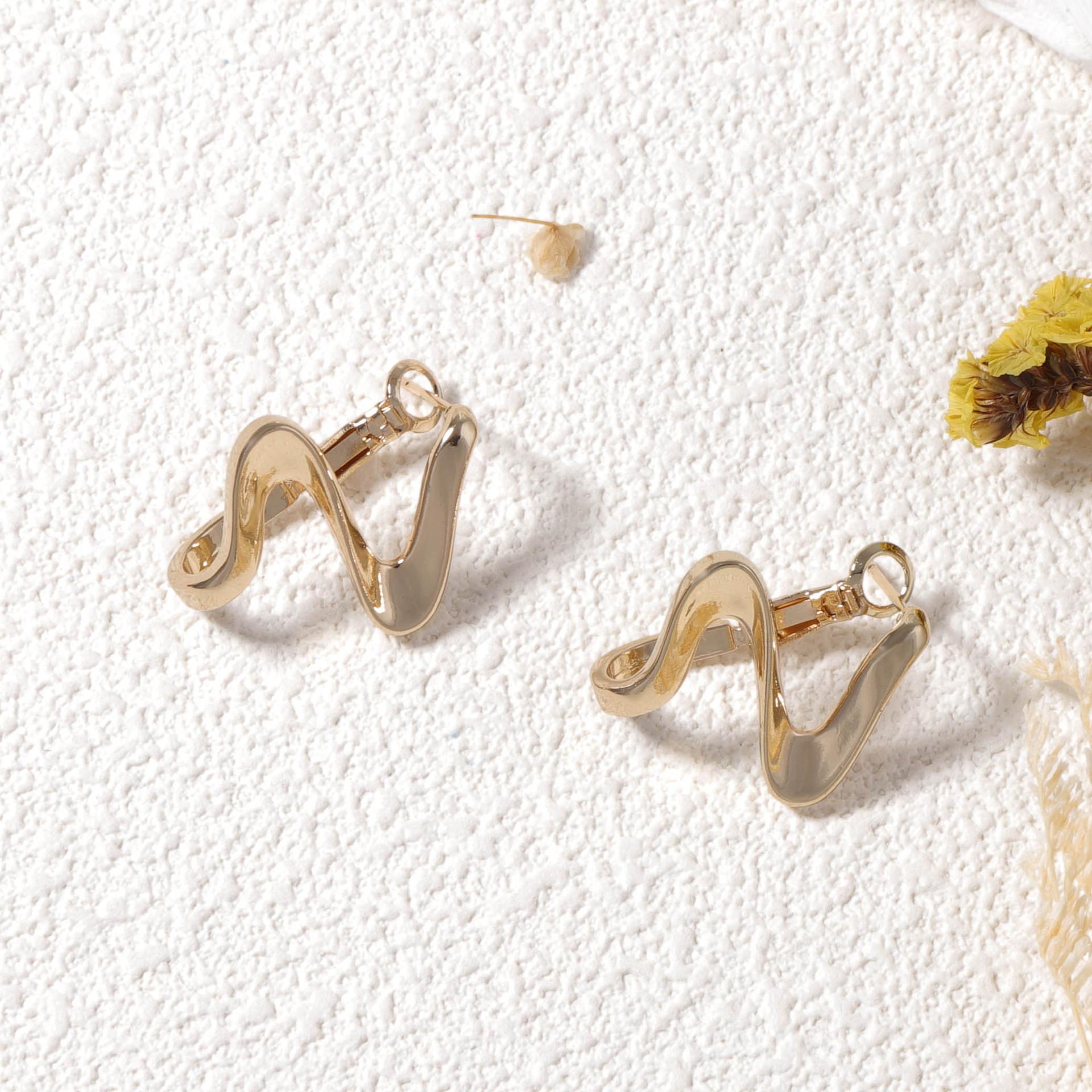 Pendientes de onda dorada de alta calidad con diseño creativo de nicho femenino, de moda europea y americana transfronteriza, con sentido del viento frío.