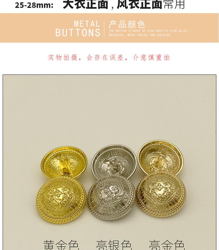 Botón dorado grande para ropa, traje, abrigo, botón de metal, moda, suéter, falda, cárdigan, abrigo, botón