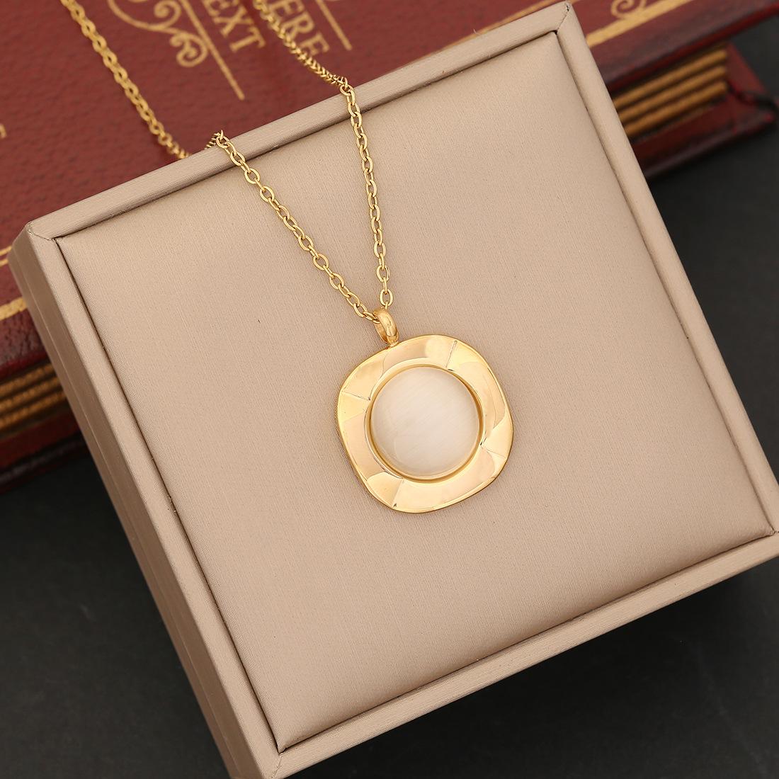 Collar de ópalo de joyería europea y americana, elegante collar de acero inoxidable, venta al por mayor, N029