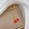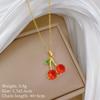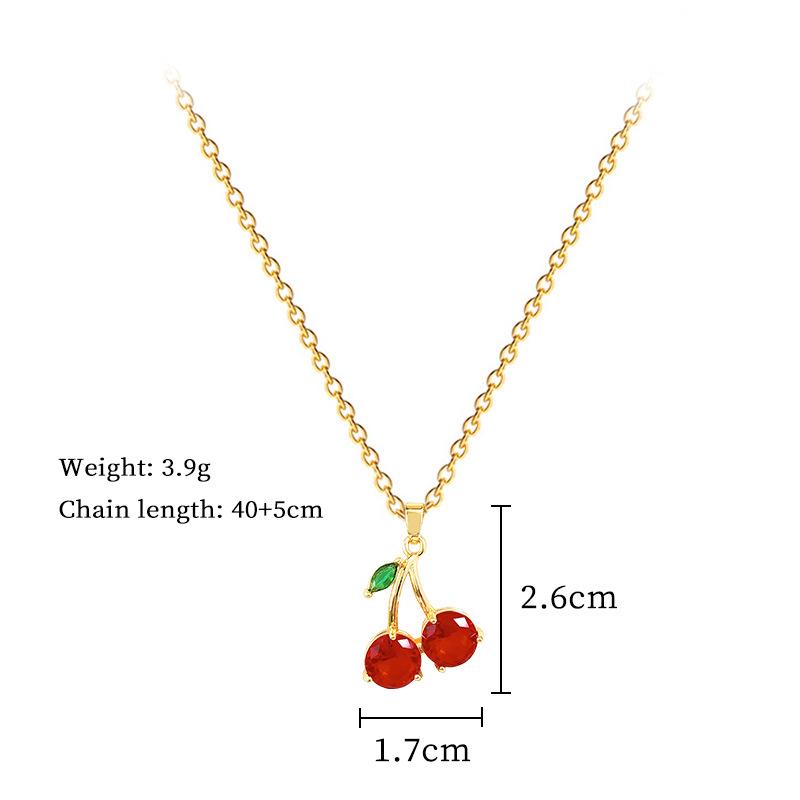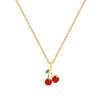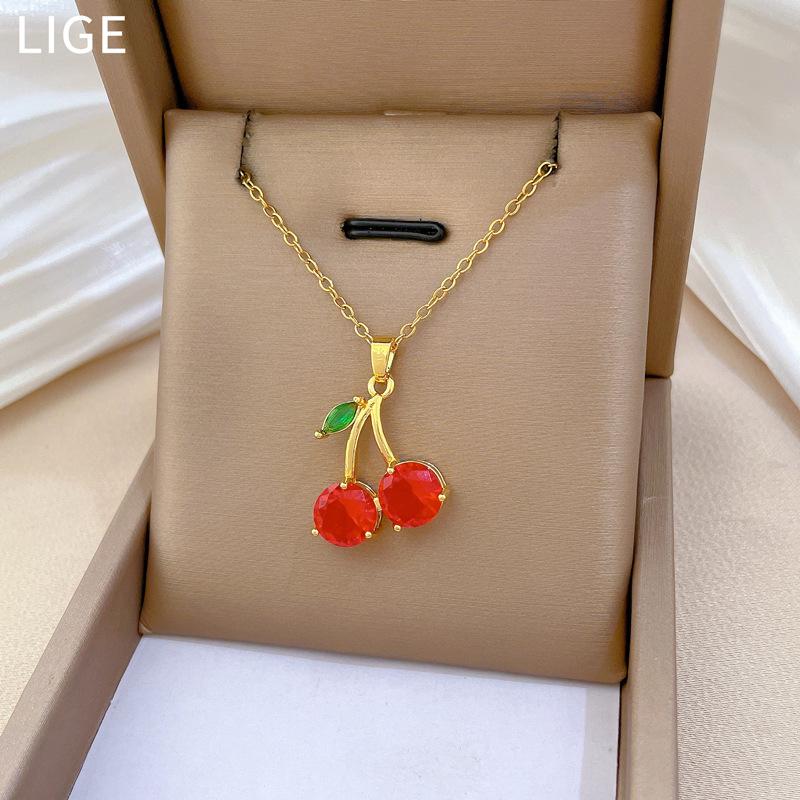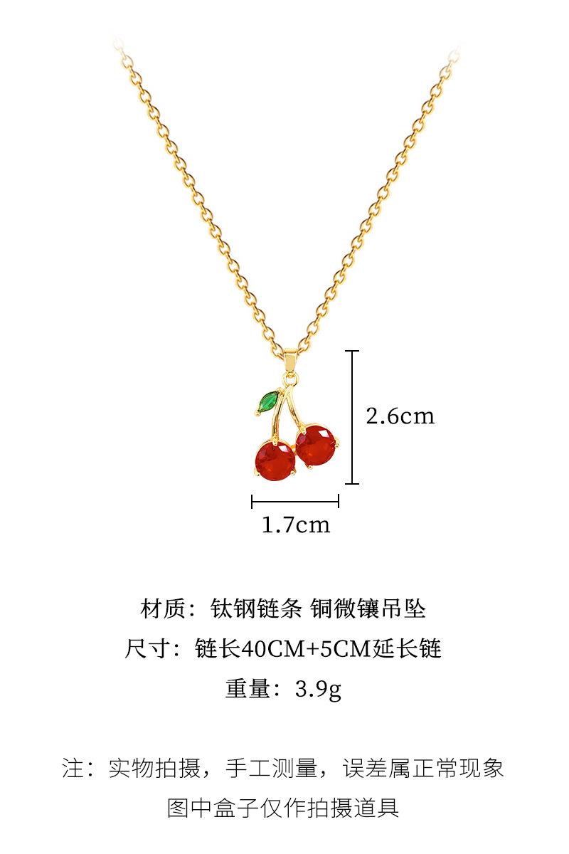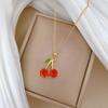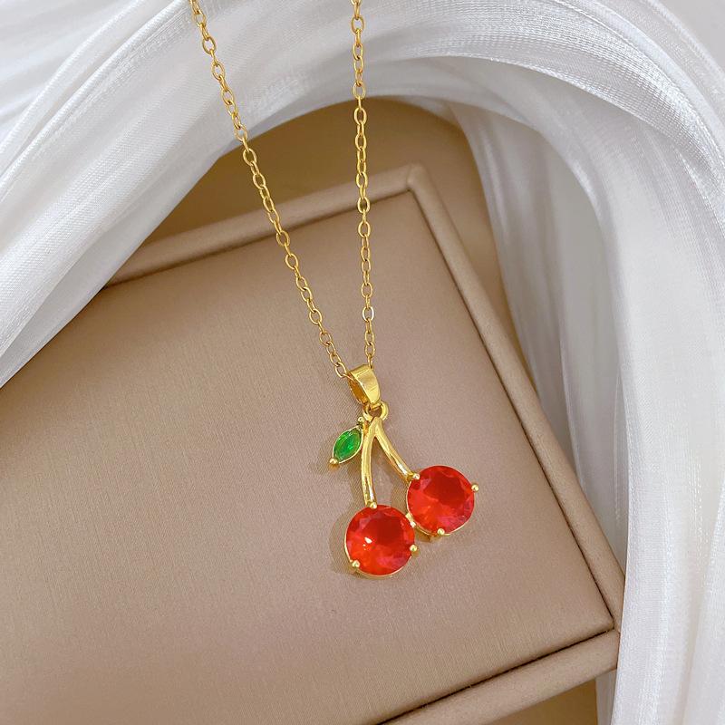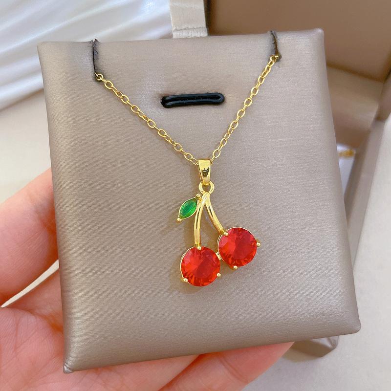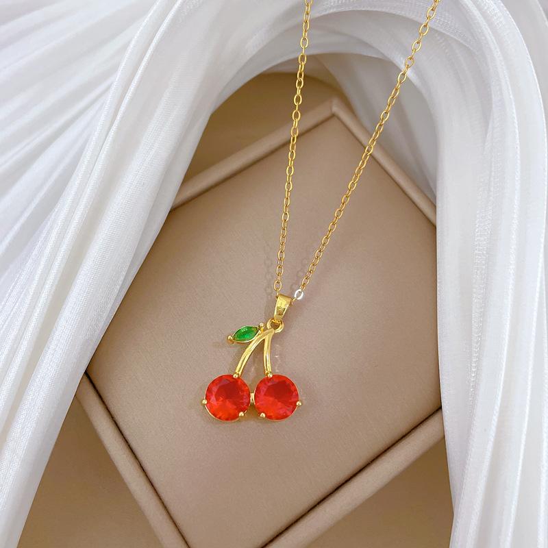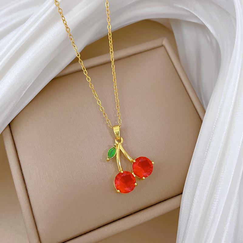 [Acero de titanio] Collar elegante y lujoso con cerezas rojas y diamantes, cadena de clavícula para mujer, de acero de titanio.