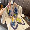 Bufanda de seda de imitación de nuevo estilo 2025, chal de moda retro con estampado de doble propósito, bufanda de seda