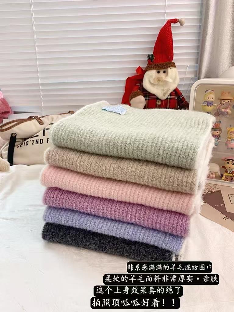 Pedido de Corea del Sur estilo pequeño y fragante ~ otoño e invierno nuevo versión coreana de bufanda de punto mezclada de lana cálida para cuello largo de mujer