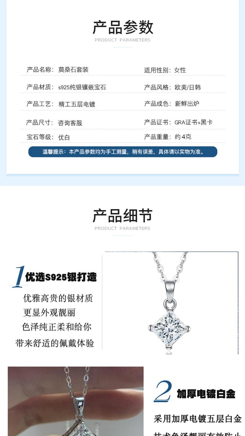 Moissanite necklace 1ct, Moissanite earrings 0.6ct+0.6ct, Moissanite ring (size 5-9) size contact customer service
