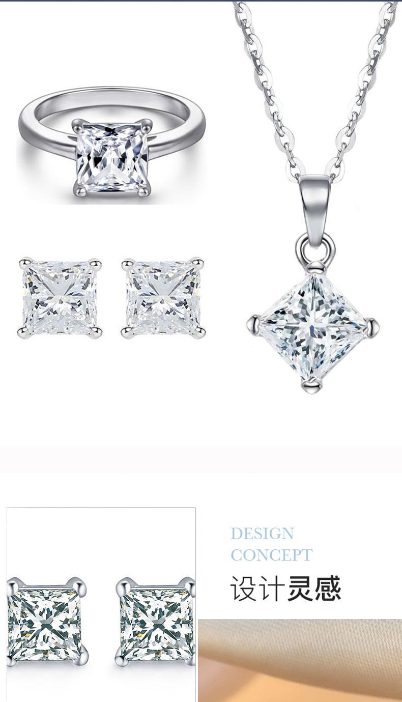 Conjunto de anillo, pendiente y collar de moissanita princesa cuadrada de 1 quilate en plata esterlina S925, color D, comercio exterior transfronterizo