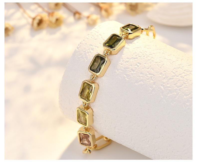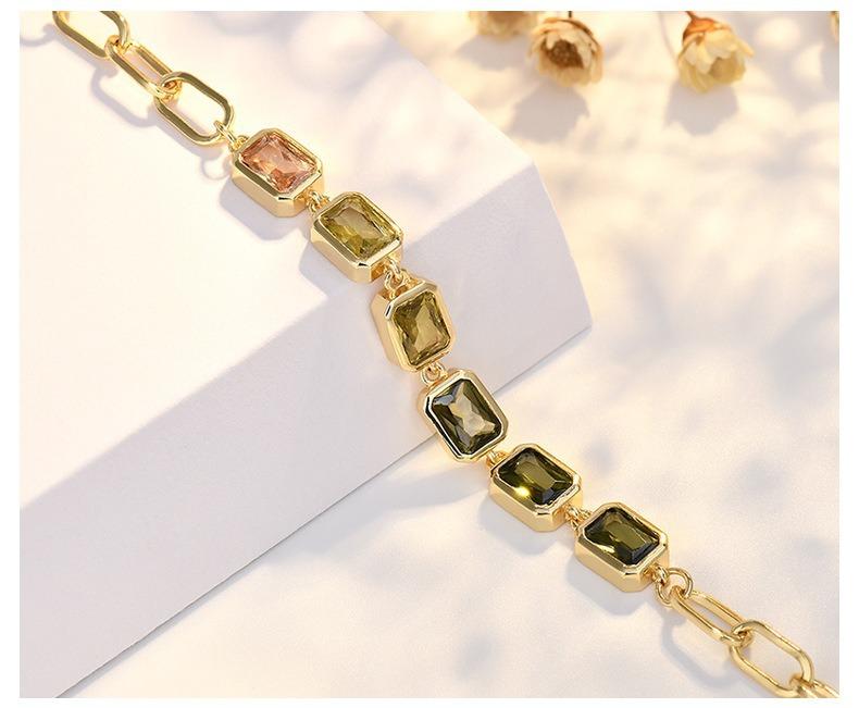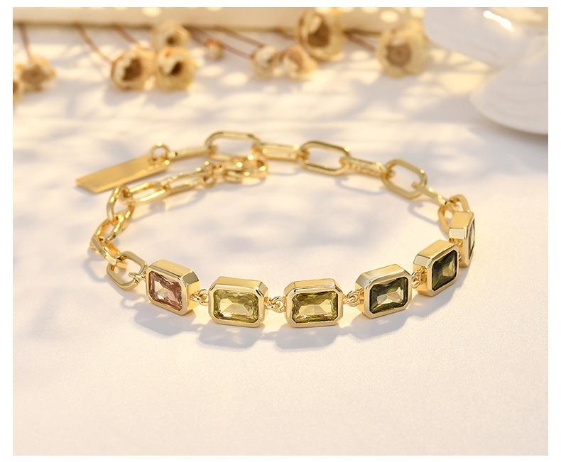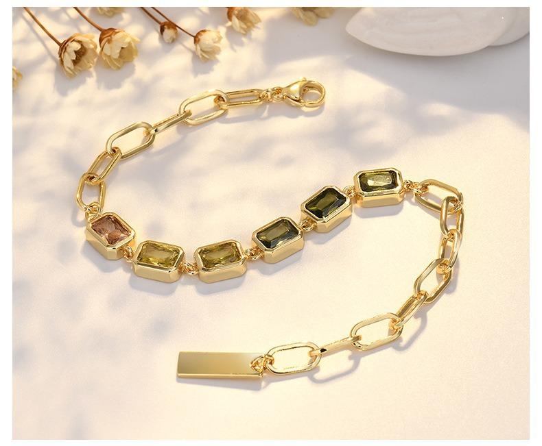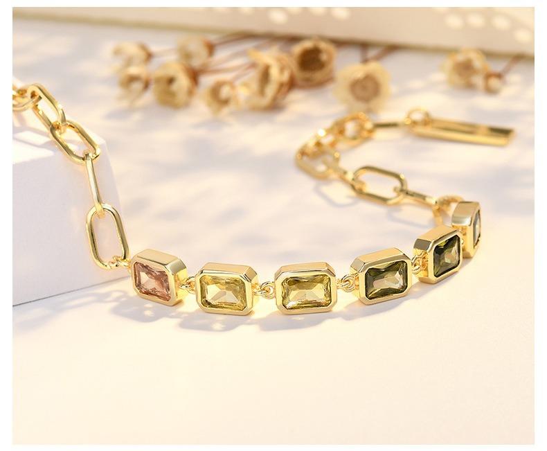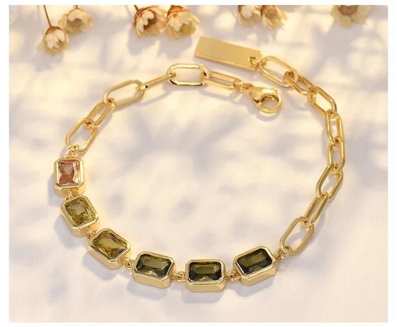 Nuevo Estilo Lujo Ligero Simple Juego Completo Diseño con Circonitas de Colores Sentido del Diseño Pulsera Chapada en Oro Estilo Elevado Elegante Combinable Pulsera de Moda