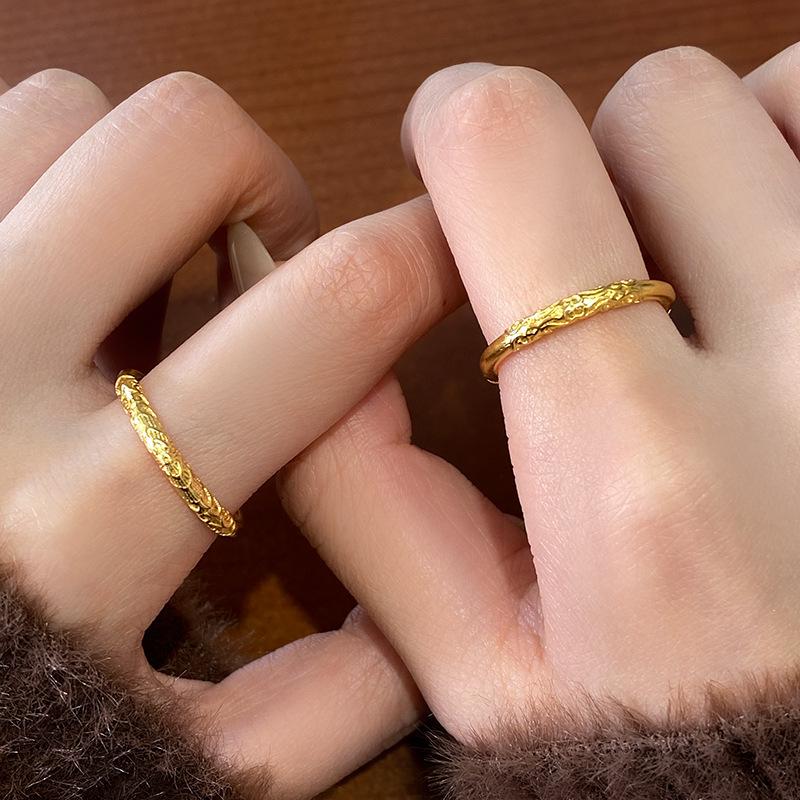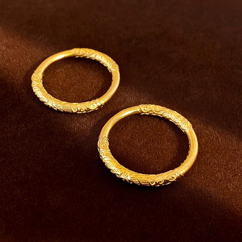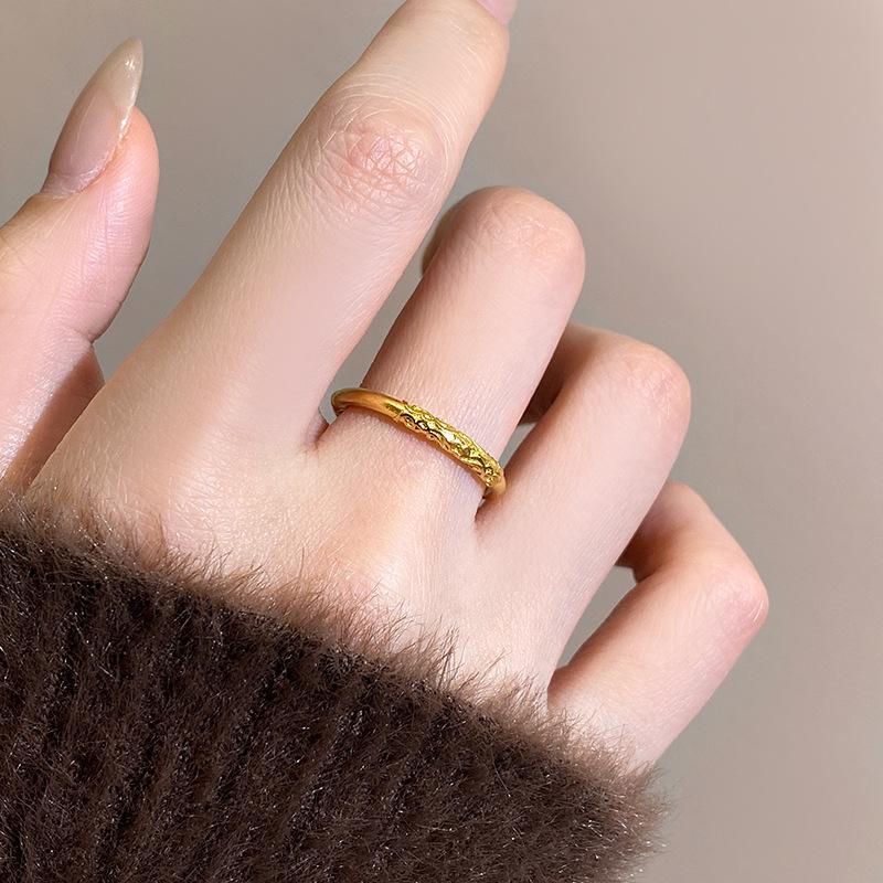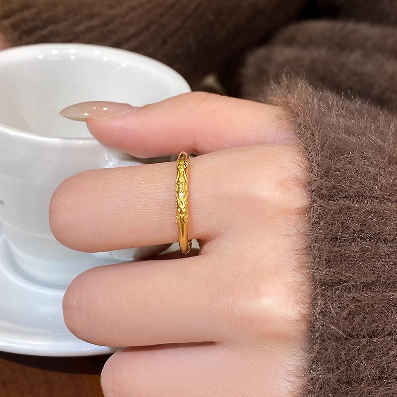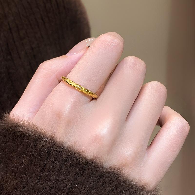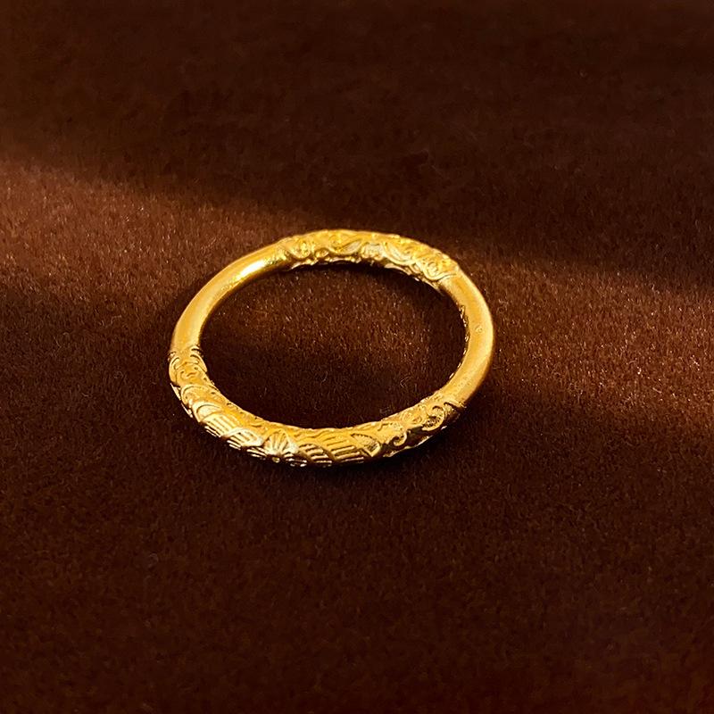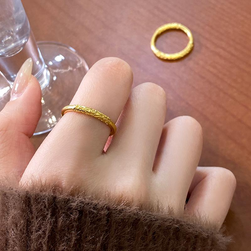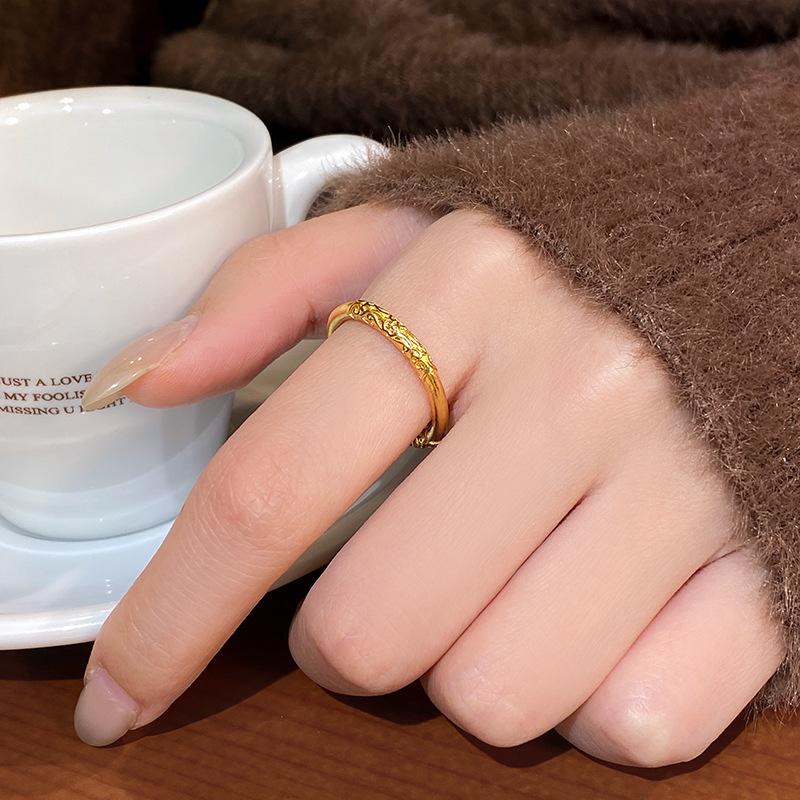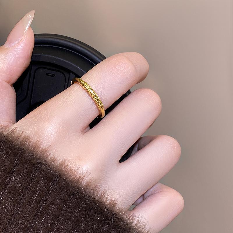 Anillo Nuevo Estilo Chino Antiguo Patrón de Hierba Rizada Oro Arena Diseño Nicho Vintage anillo liso Anillo de Comida Joyería de Lujo de Alta Gama