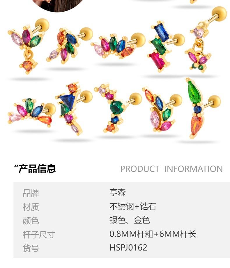 Uñas Henson de color circonita, de acero inoxidable, con rosca para hueso de oreja, joyería popular para perforaciones en el cartílago, de comercio exterior europeo y americano.