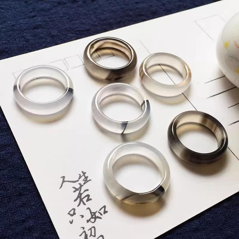 Ink wind ring 15-18 size random, natural flower ring 15-18 size random, White agate ring 15-18 size random, Gr...