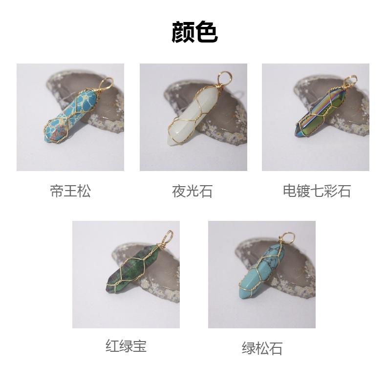 Colgante de collar de oro con forma de bala hexagonal de ágata y cristal de piedra natural, venta al por mayor