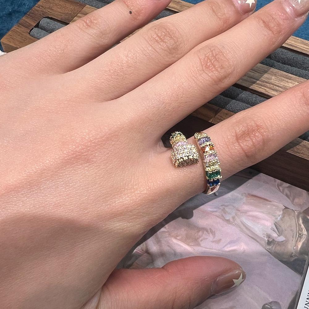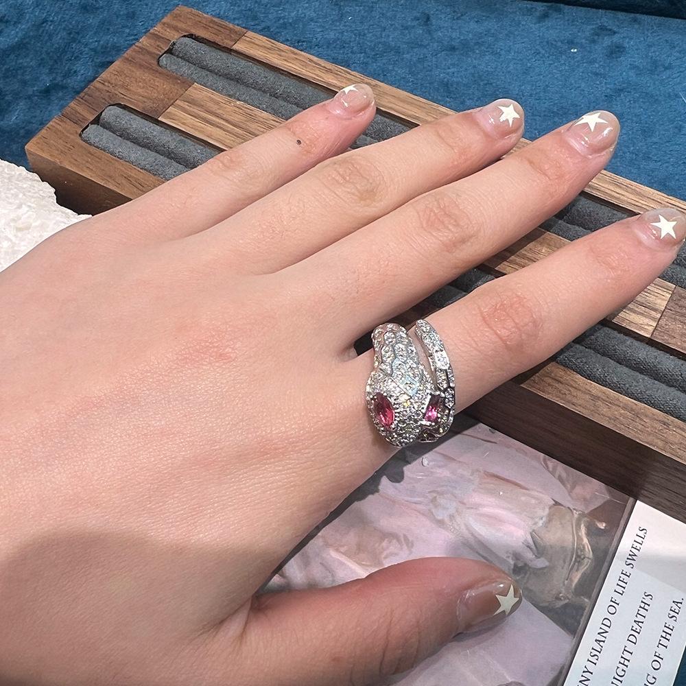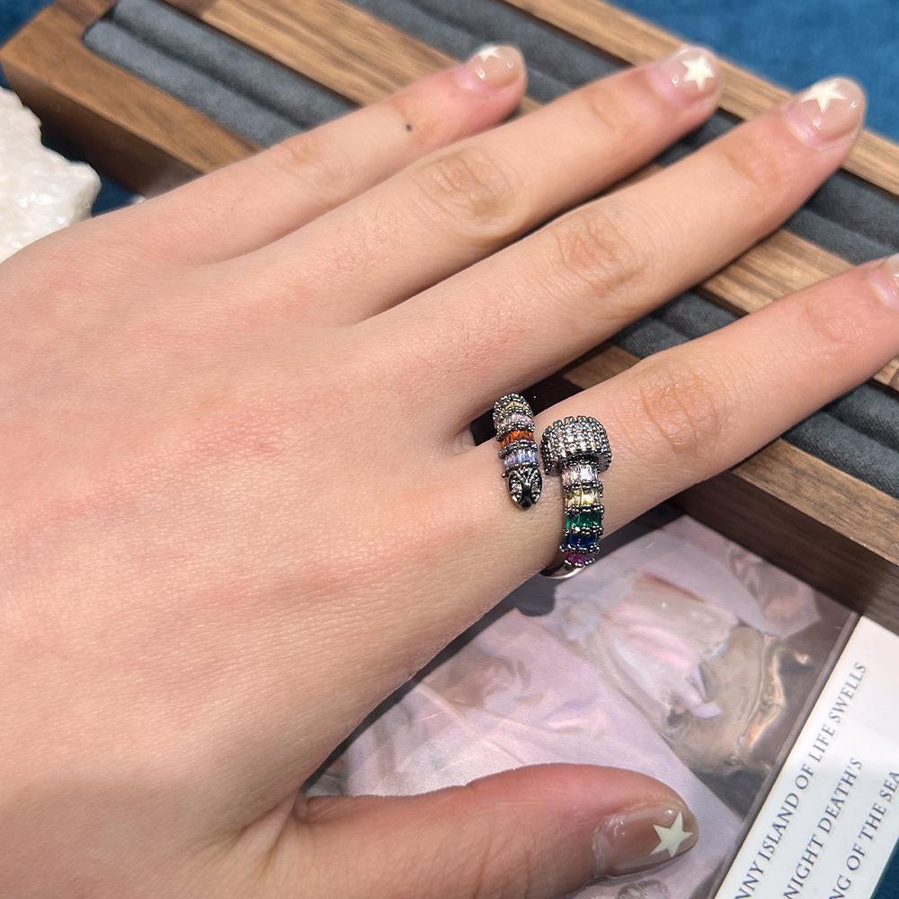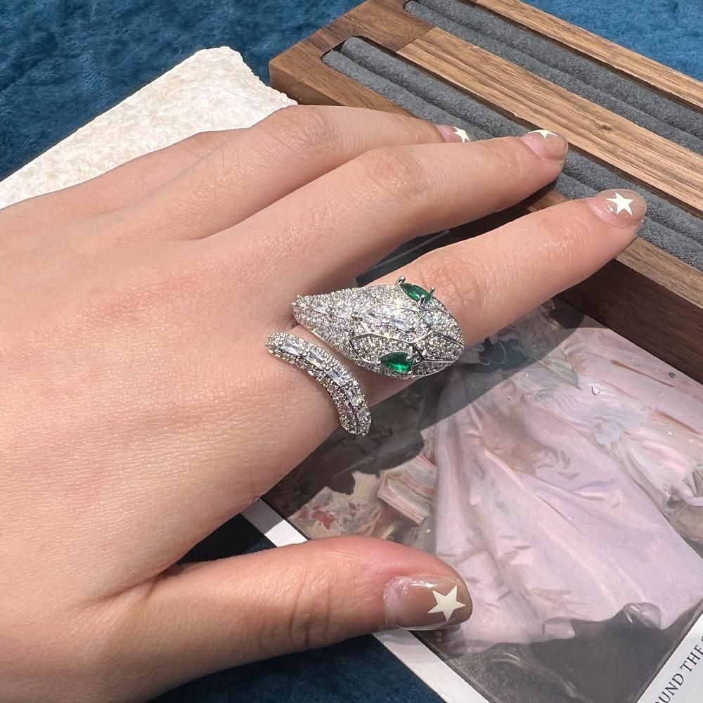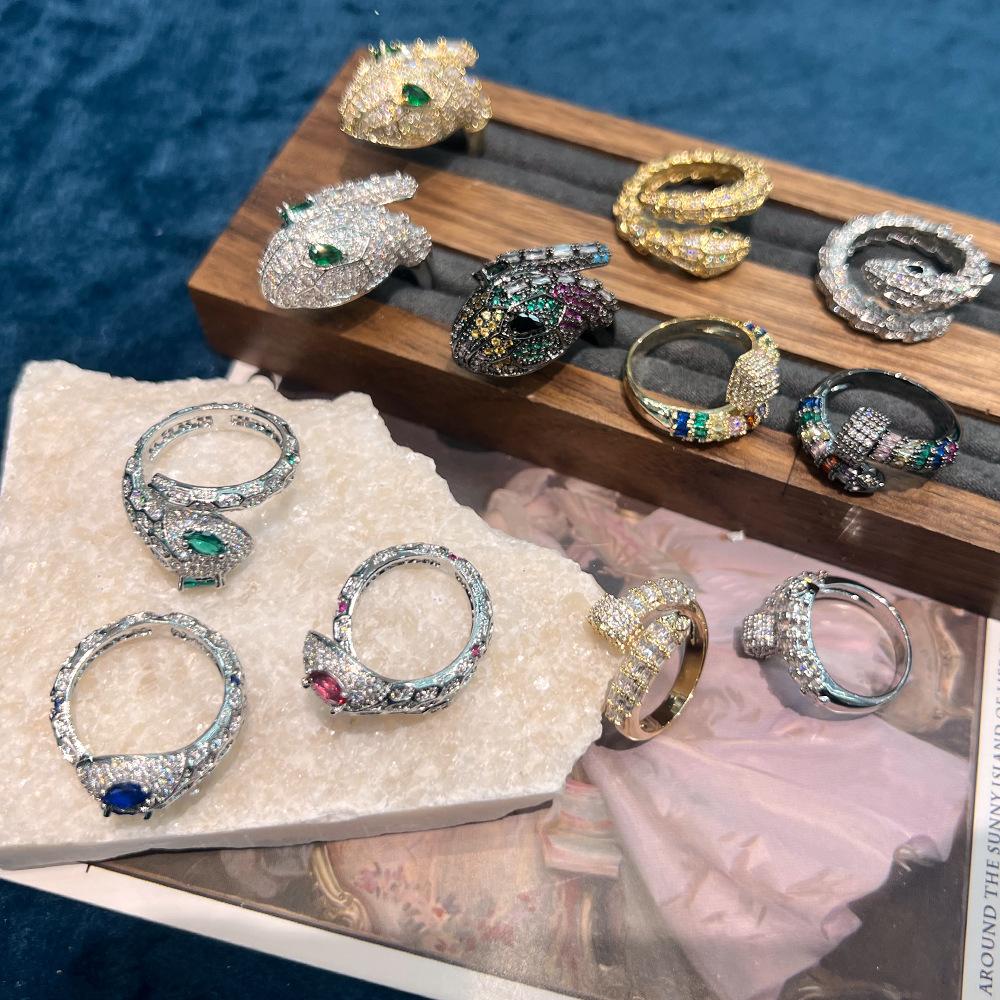 Anillo Abierto de Serpiente Seiko Zirconio de Montura Alta Trabajo Pesado Tesoro Cabeza de Serpiente Personalidad Transfronterizo Gama Alta Anillo Abierto Cabeza de Serpiente