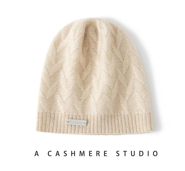 Gorro de punto de lana de cachemira para adultos, nuevo gorro de otoño e invierno, clásico, a la moda, para mujer, cálido, con protección para los oídos, creativo y versátil.