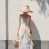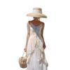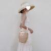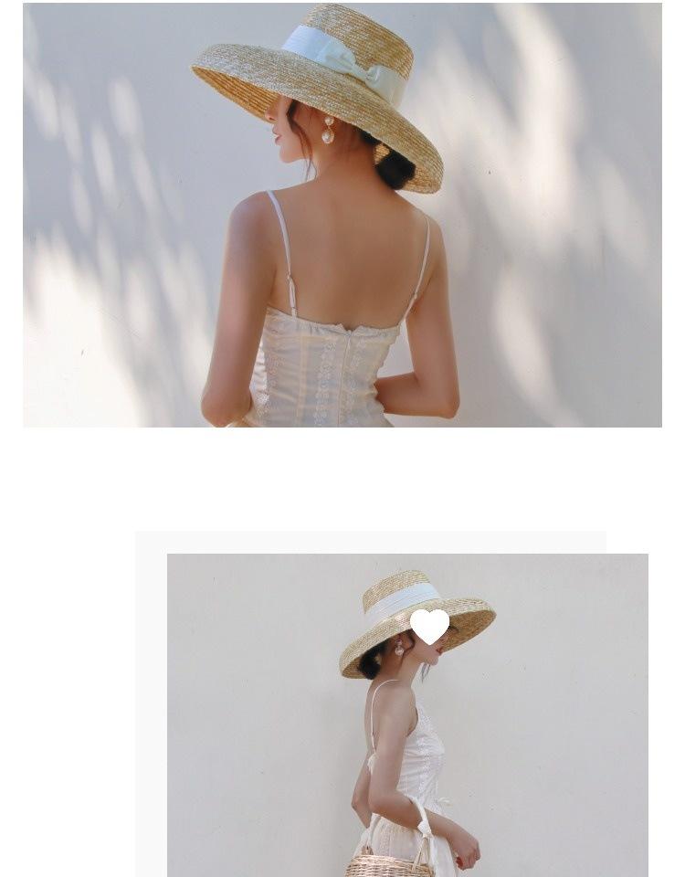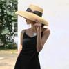 Estilo Europeo y Americano Sombrero de Paja de Verano para Mujer Estilo Francés Retro Hepburn Elegante Paja Ala Ancha Campana Sombrero de Paja Sombrilla Vacaciones Sombrero de Playa