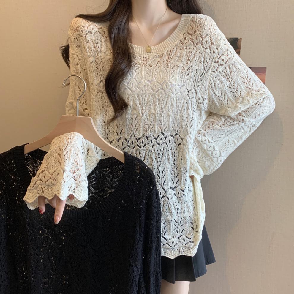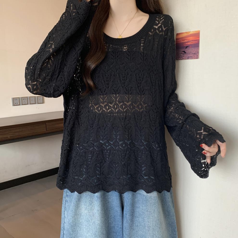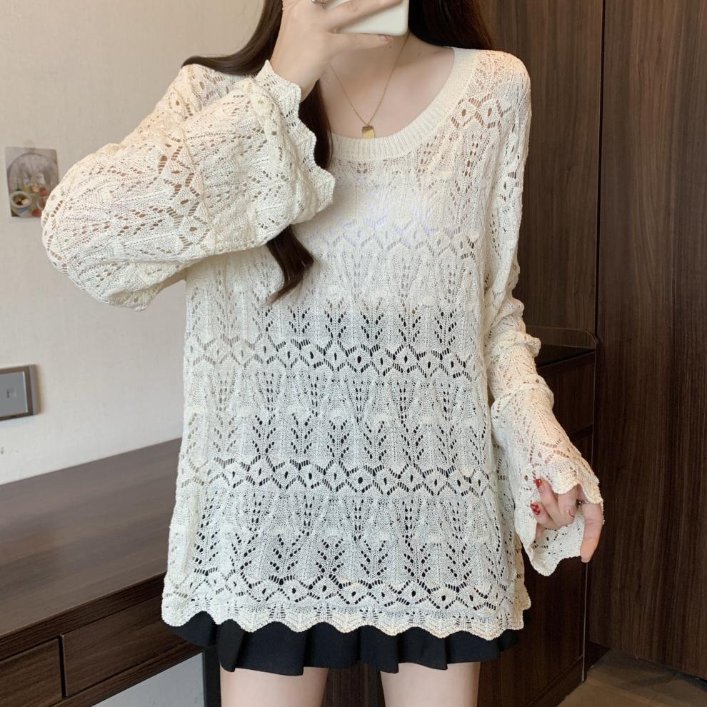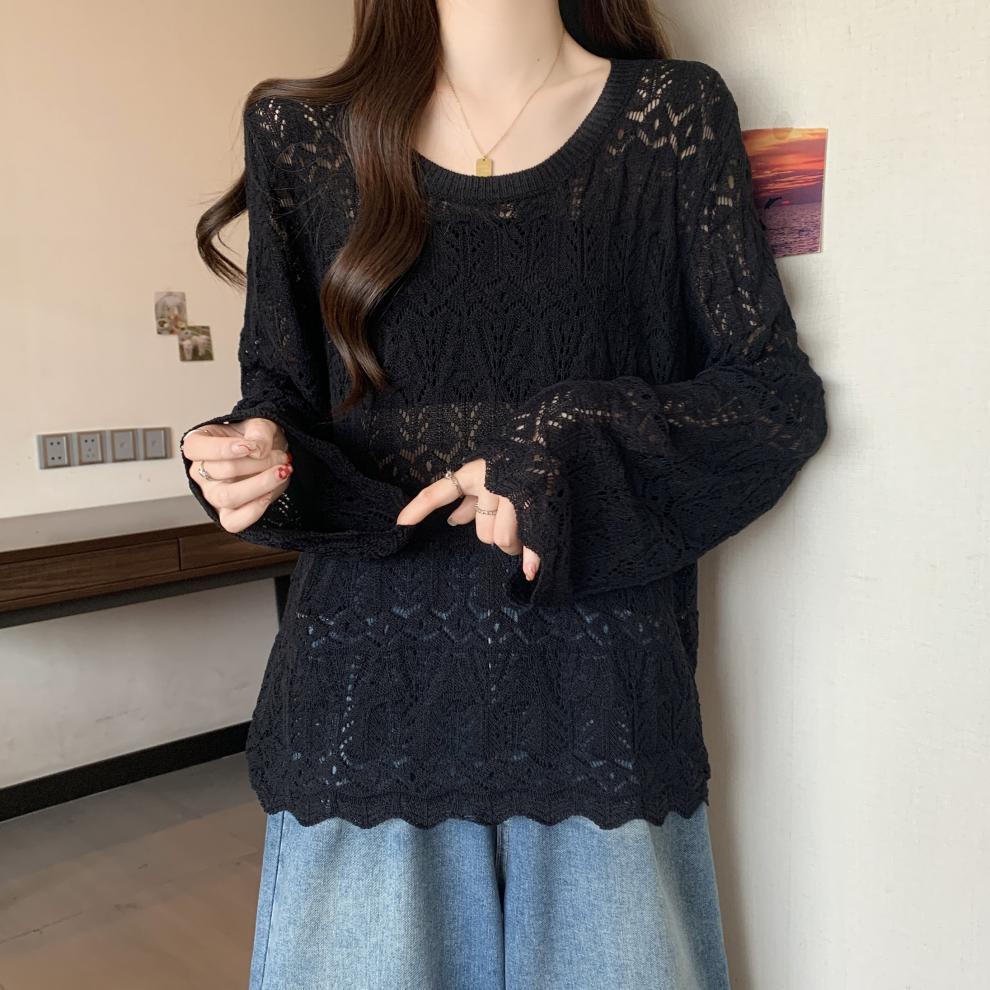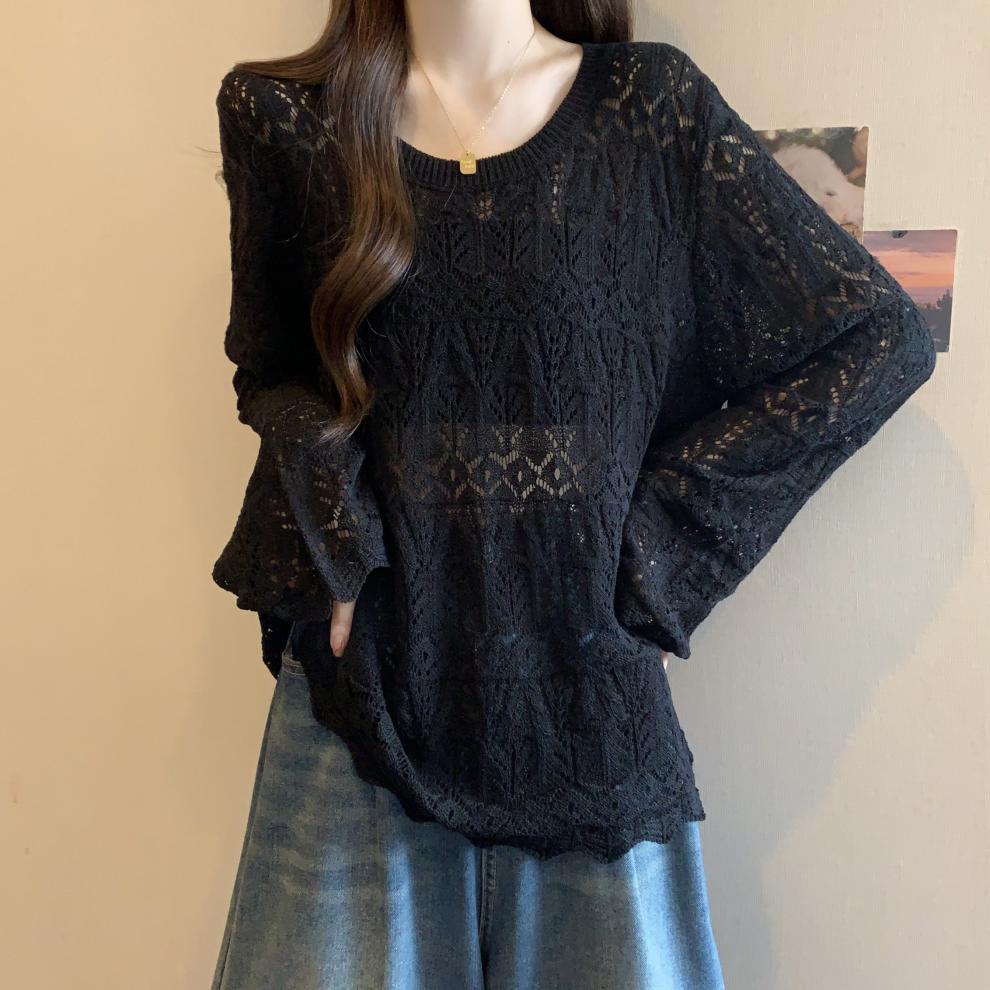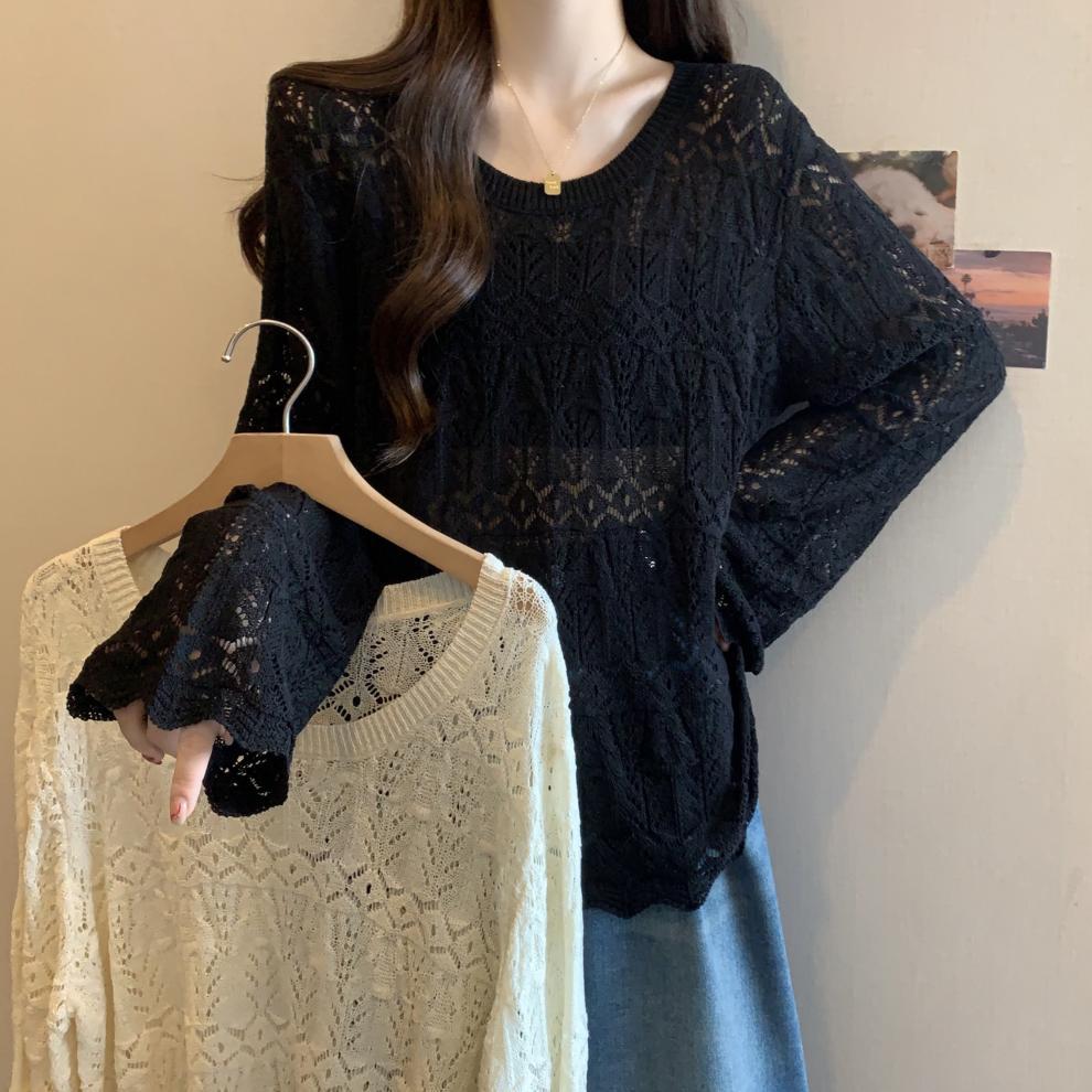 Suéter de manga larga con cuello redondo y aberturas para chica gordita, talla grande, holgado, adelgazante, camisa pequeña elástica para mujer, otoño nuevo