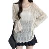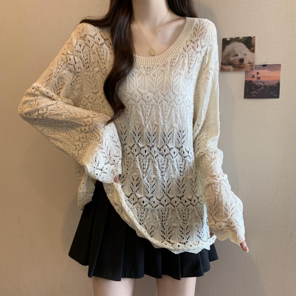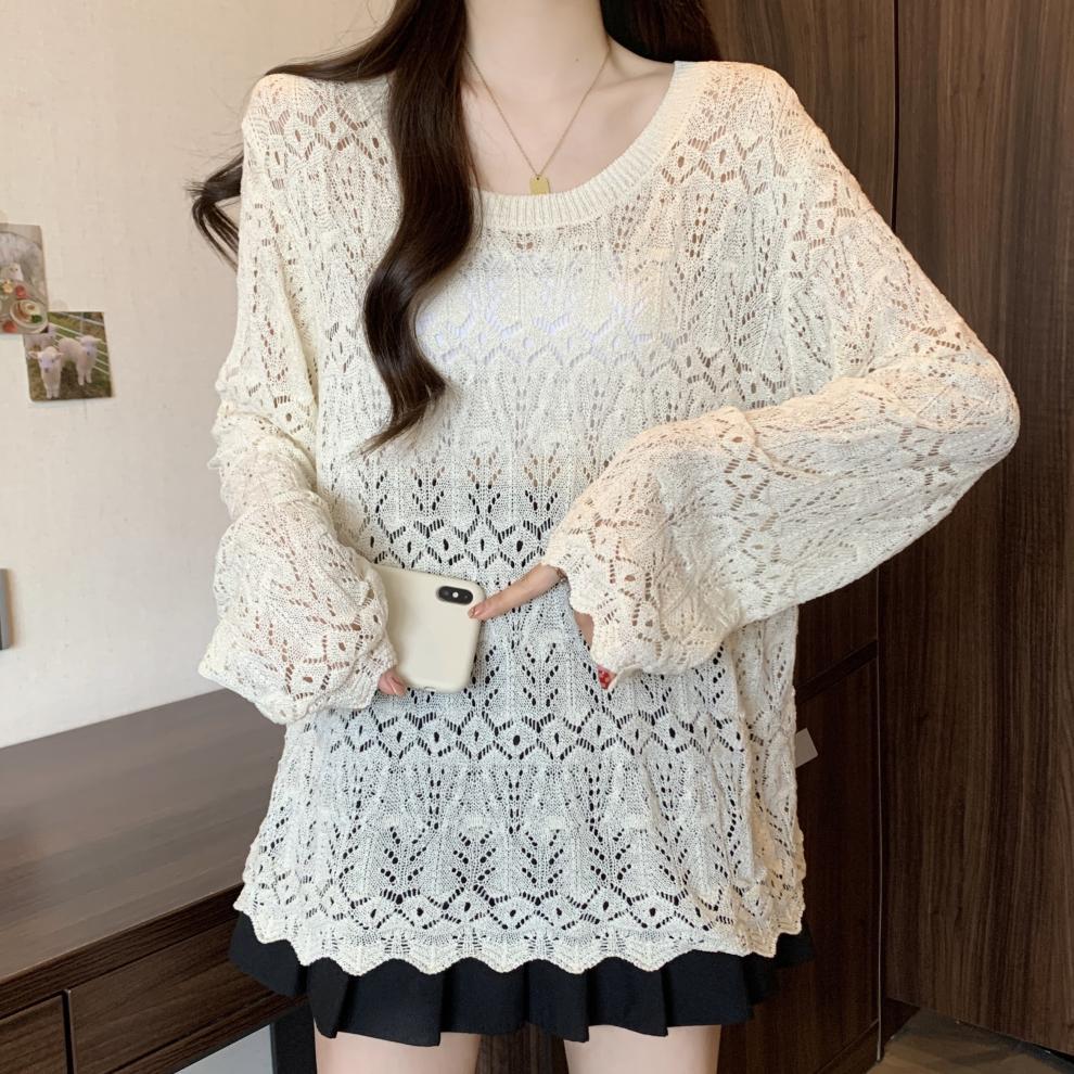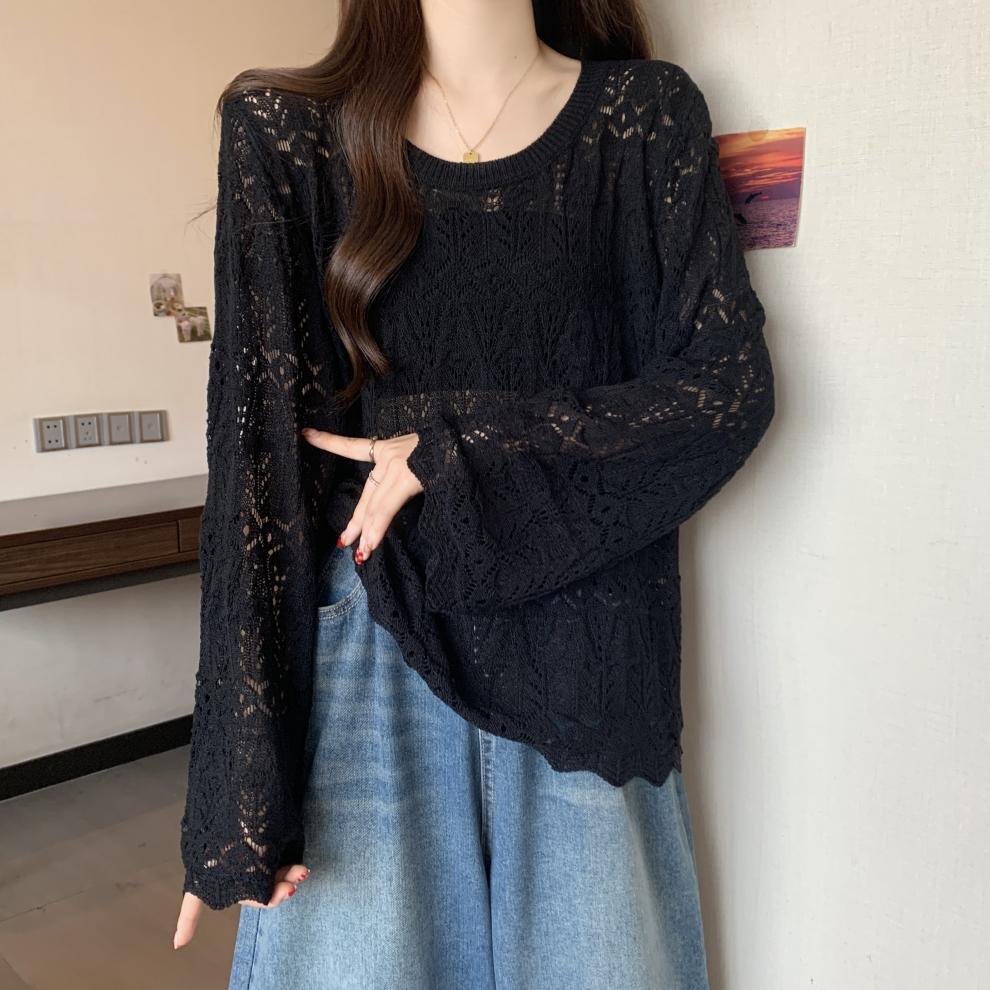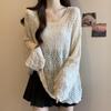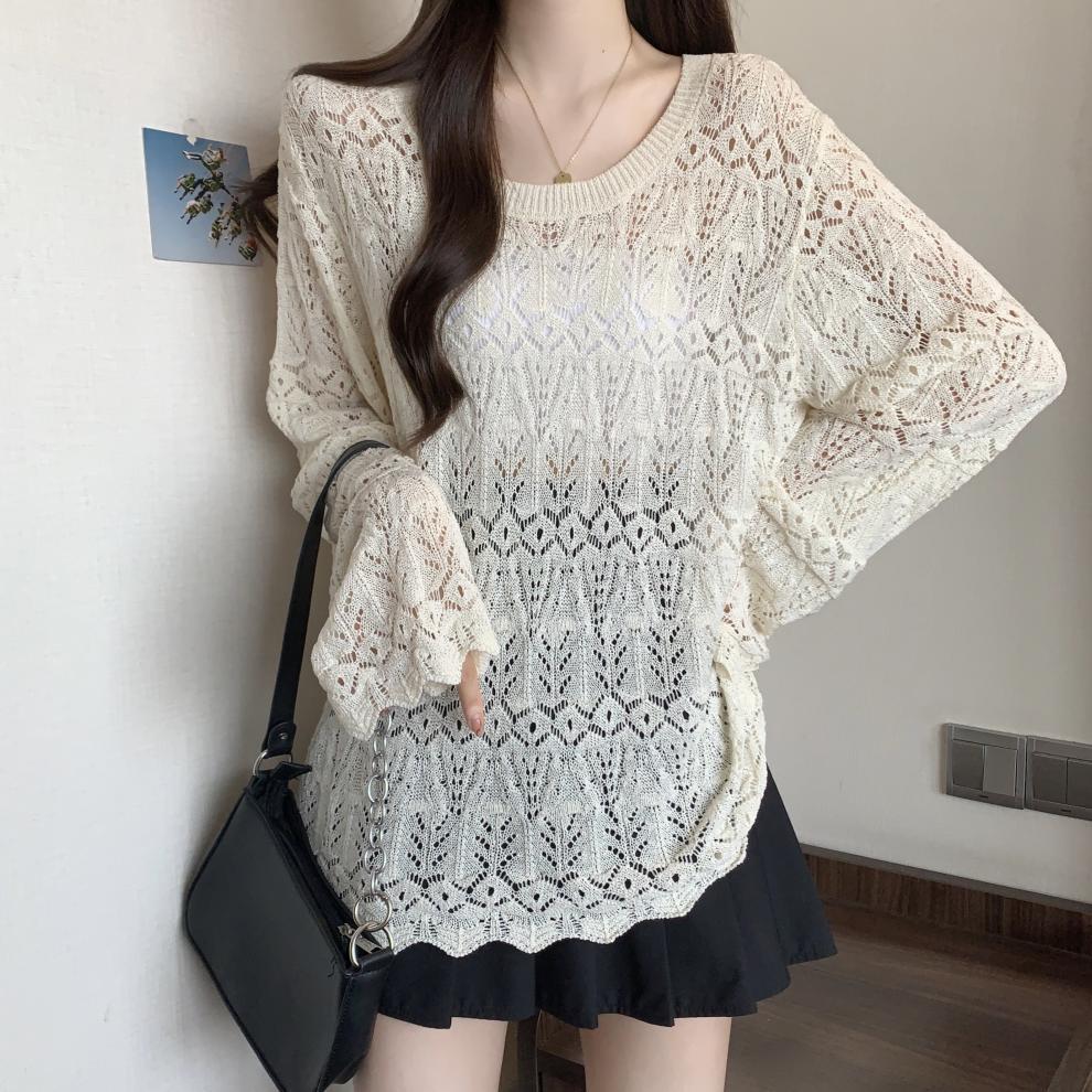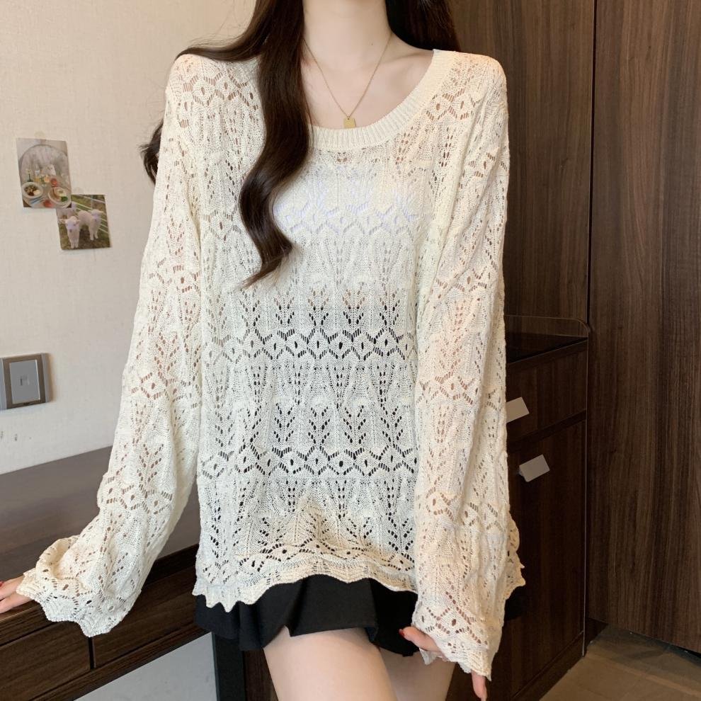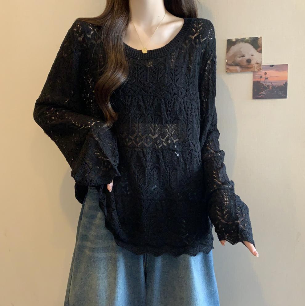 Suéter de manga larga con cuello redondo y aberturas para chica gordita, talla grande, holgado, adelgazante, camisa pequeña elástica para mujer, otoño nuevo