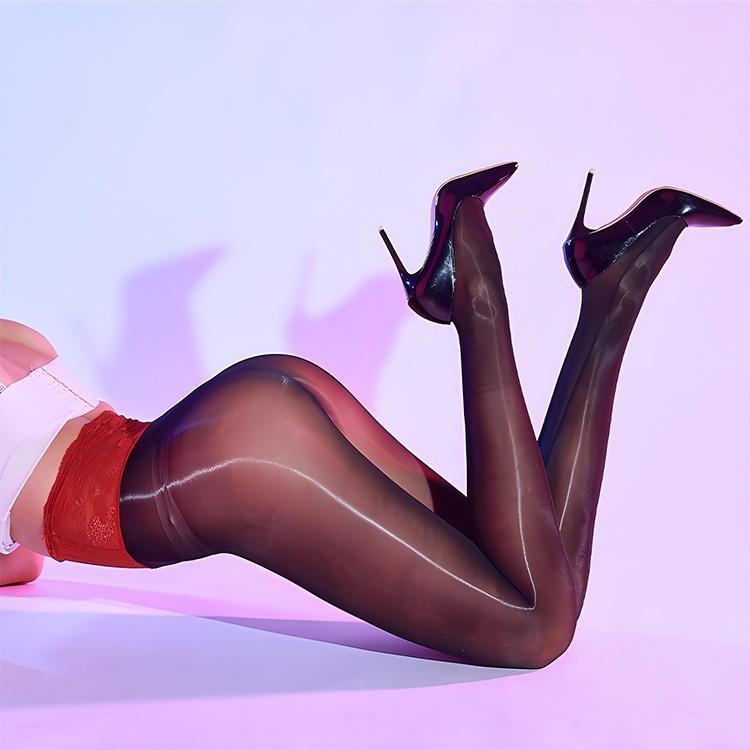 [Sicilia] Medias sin costuras con entrepierna profunda, pantimedias de seda negra grasosa, tentación, encaje, cintura de seda, suave, aceite, calcetines de caballo brillantes