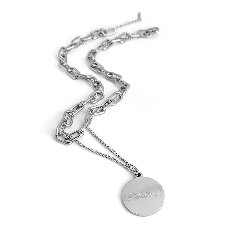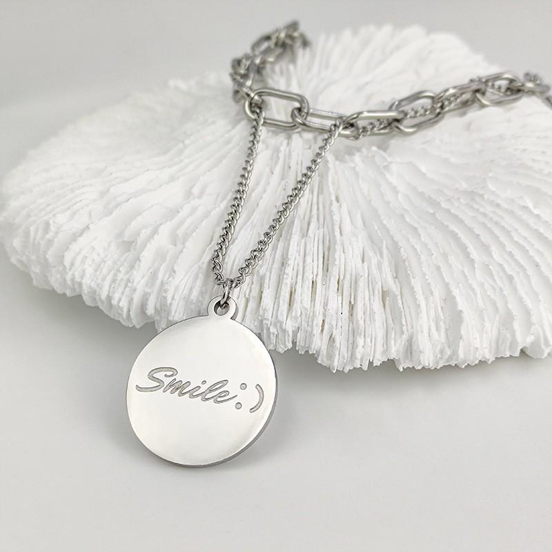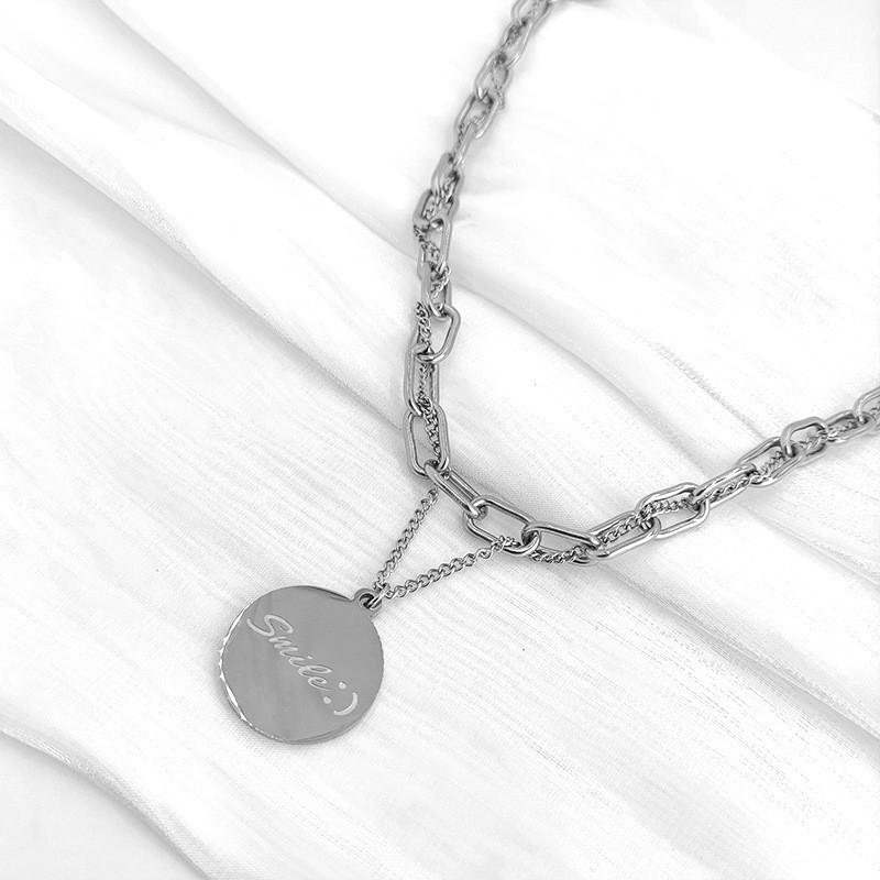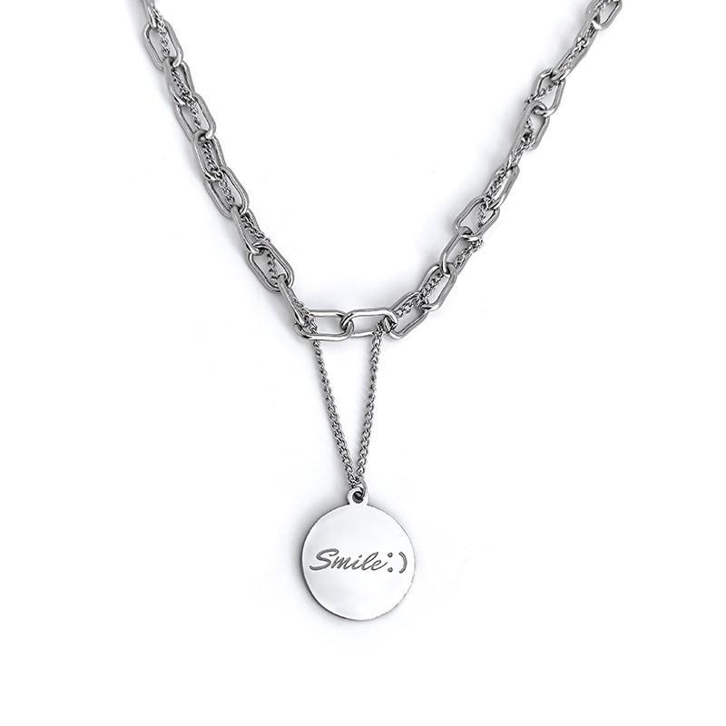 Collar de acero de titanio con doble cara sonriente y letras simples de estilo coreano, cadena de clavícula roja de red para mujer, cadena de suéter de moda de hip hop para hombres, venta al por mayor